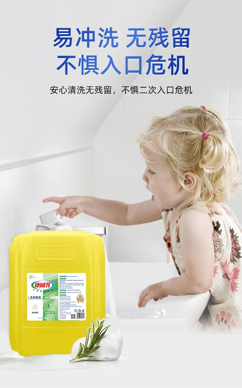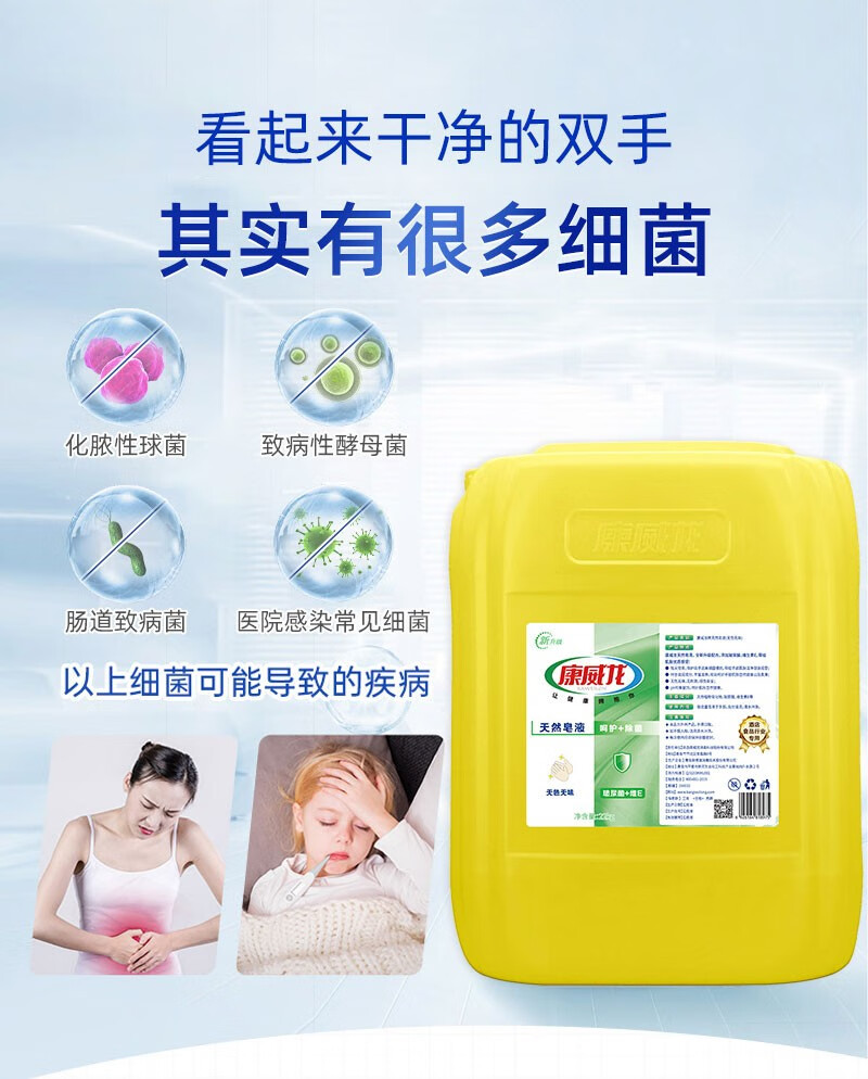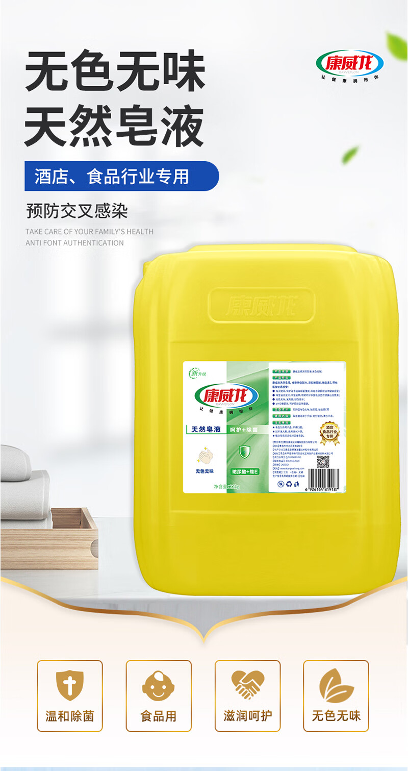 康威龙22kg无色无香健康天然皂液洗手液大桶装杀菌清洁必备 【专业抑菌25年】健康洗手皂液皂液500ml
