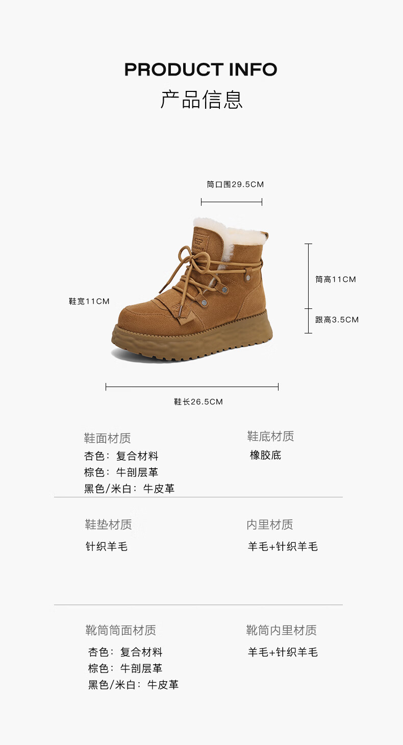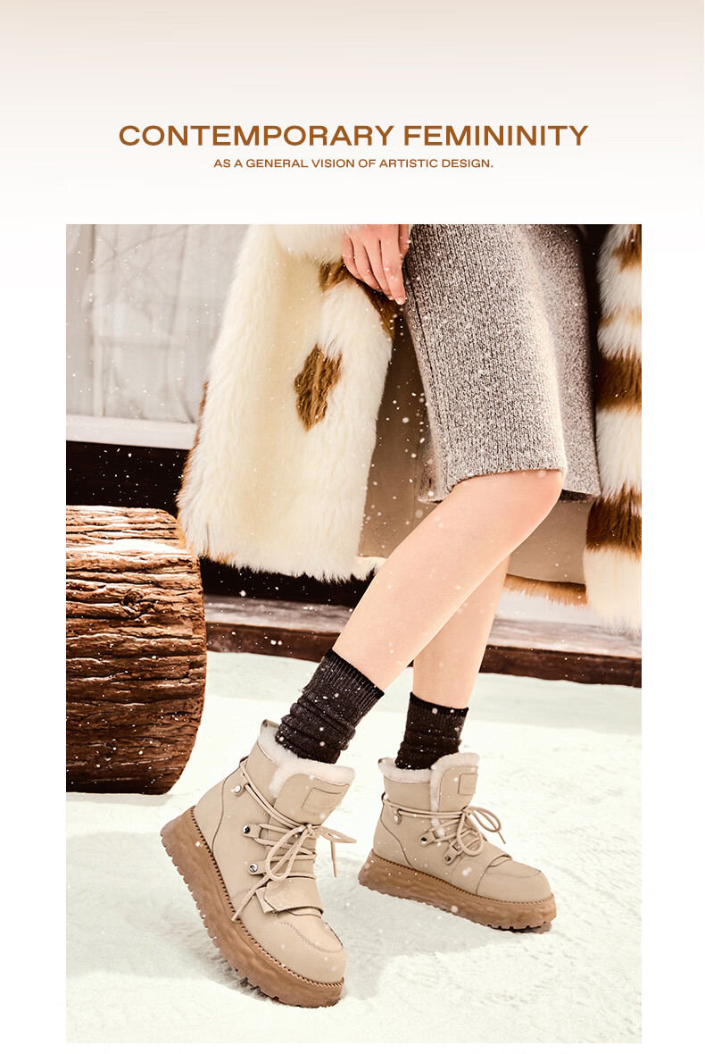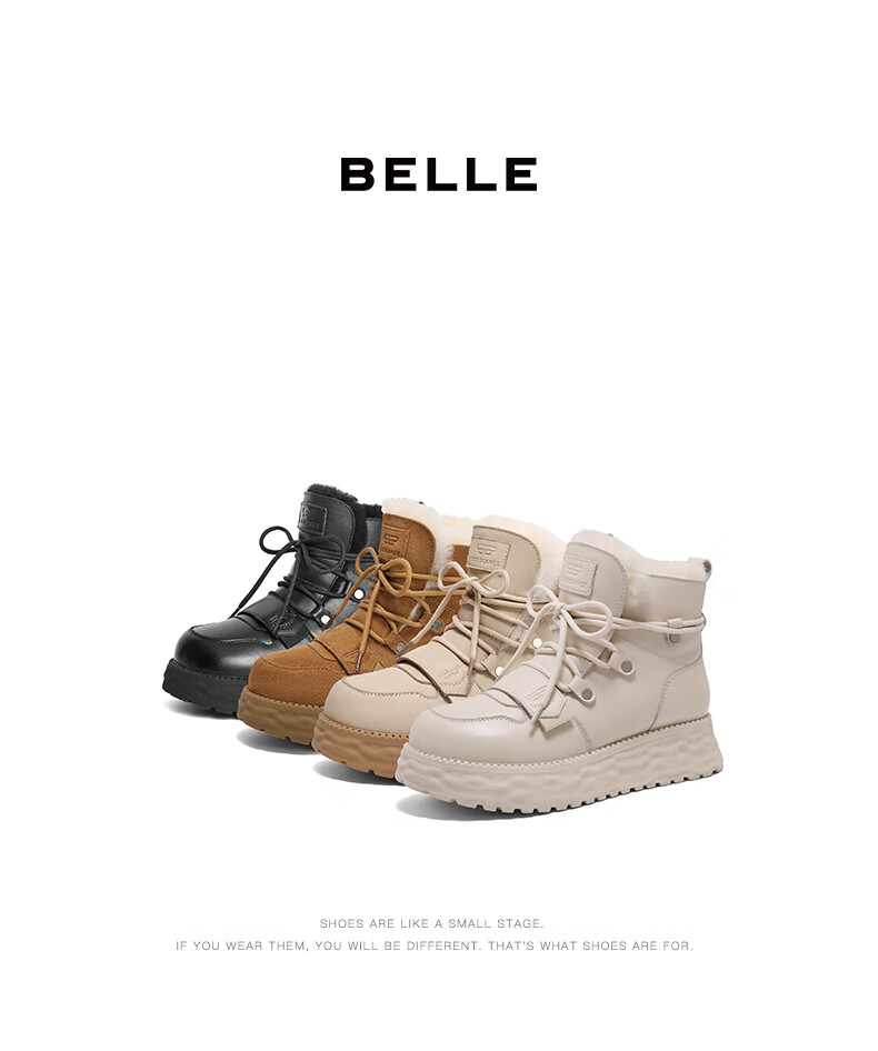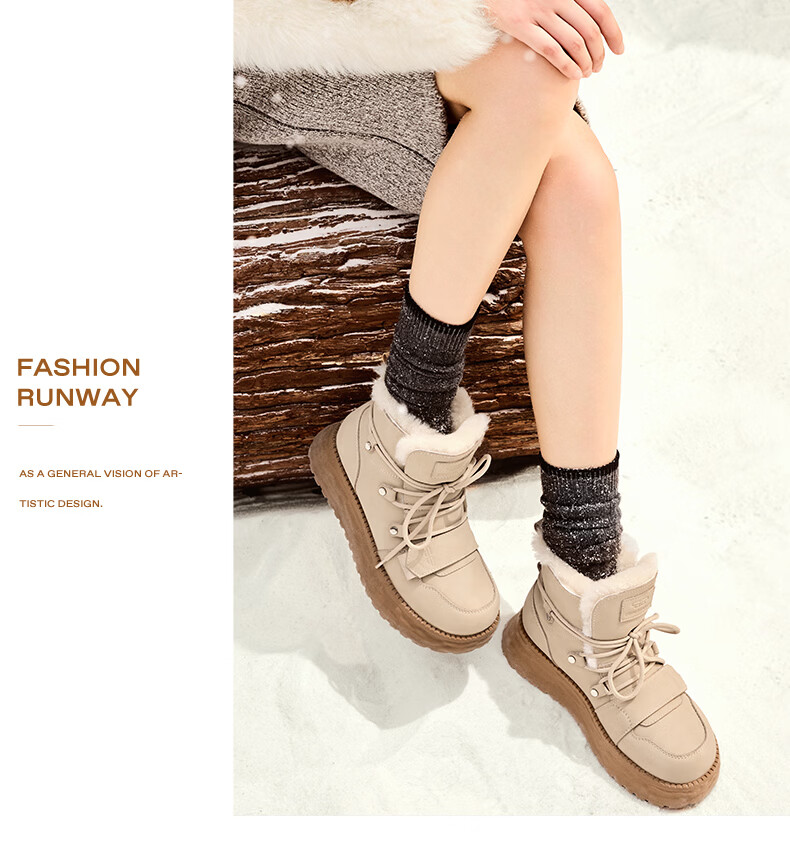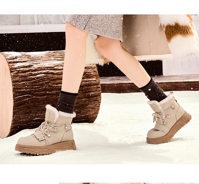 百丽时尚休闲地靴女24冬商场同款保暖短靴D1W1DDD4 米杏色 37
