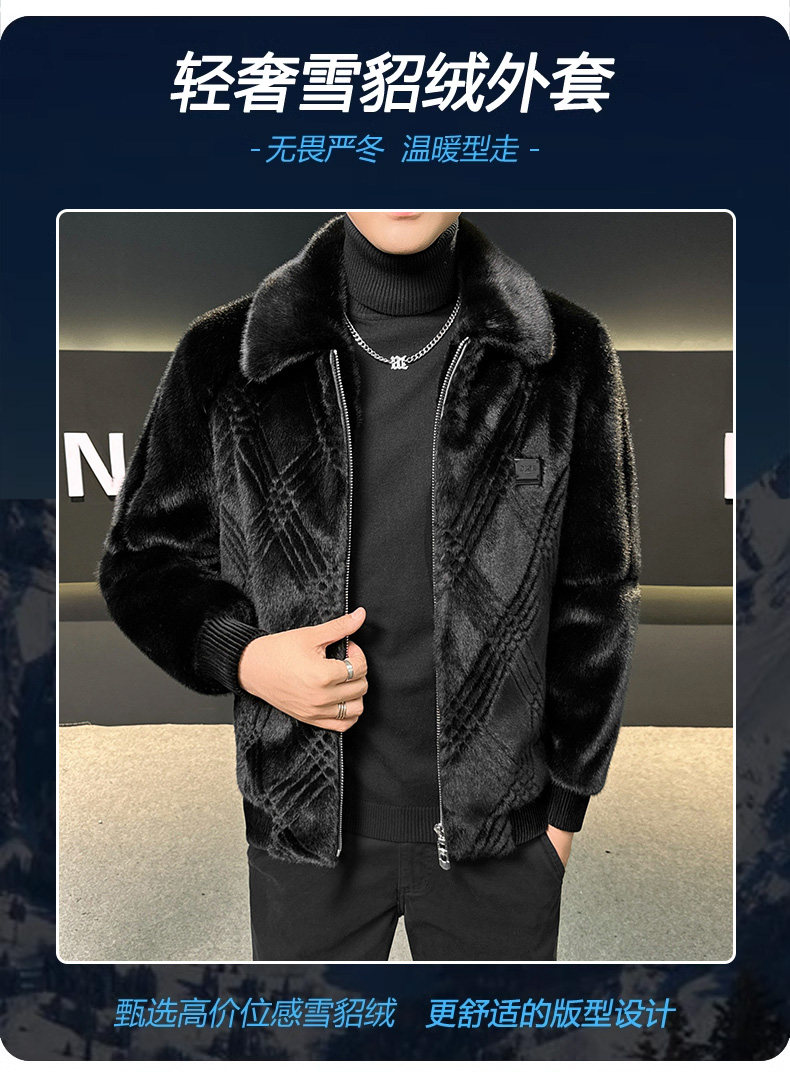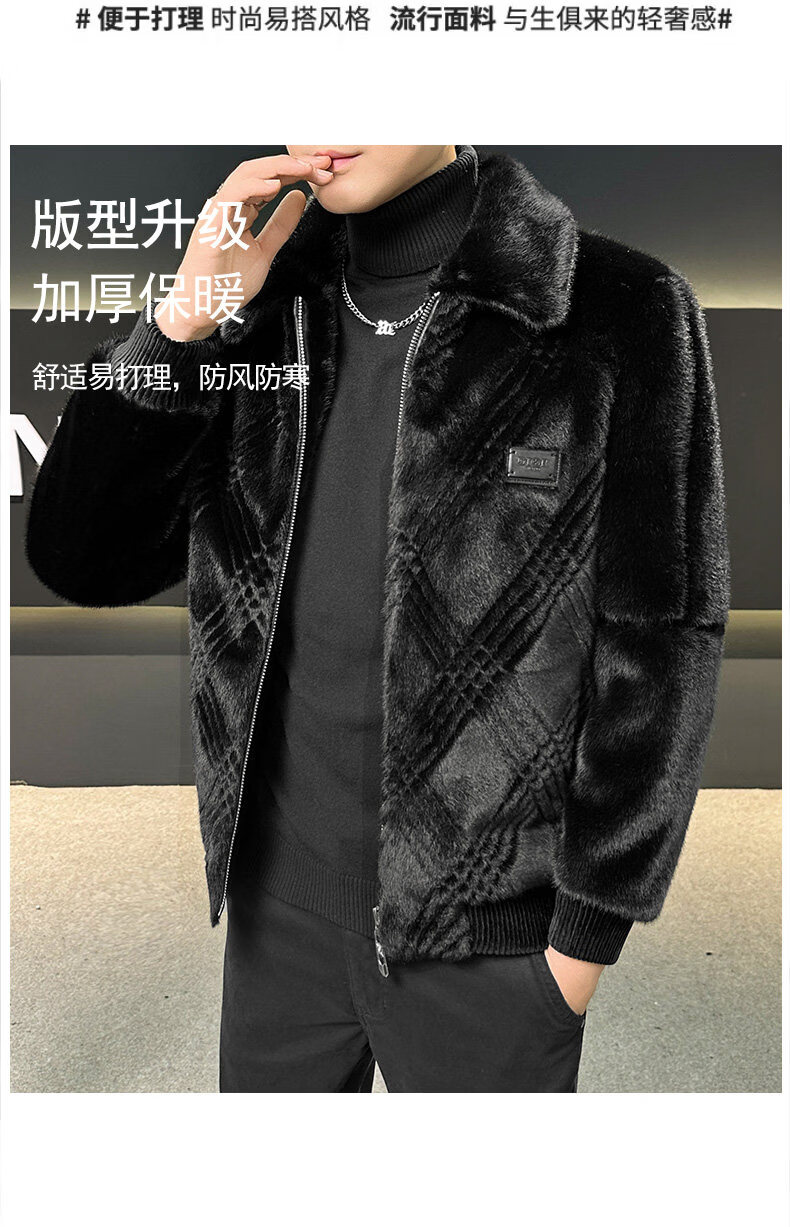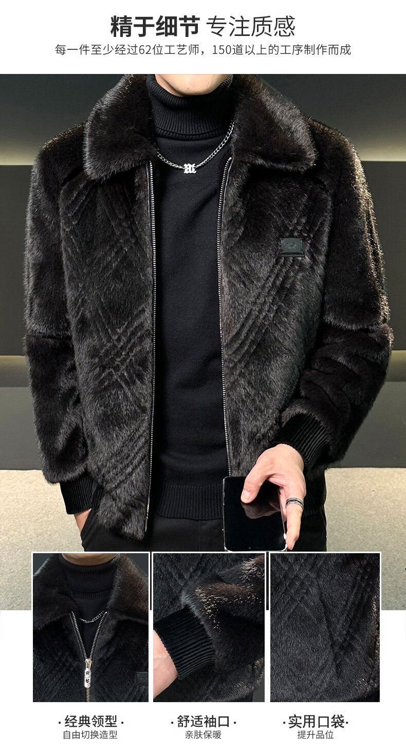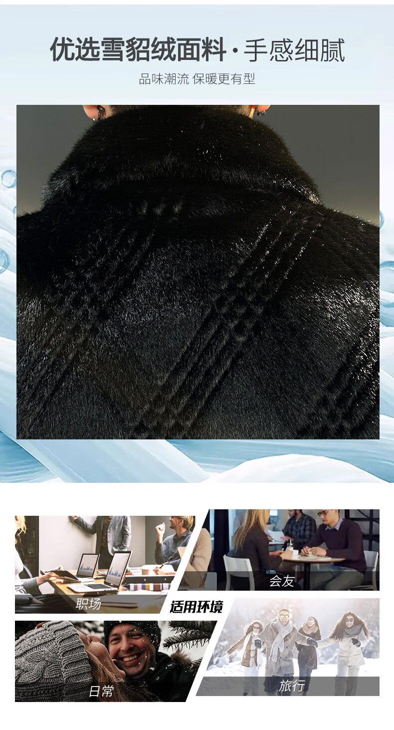 花花公子男士水貂毛仿皮草外套加厚保暖翻领大衣 黑色【金貂绒】 加厚 M 100-115斤