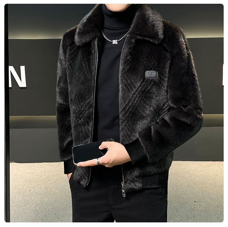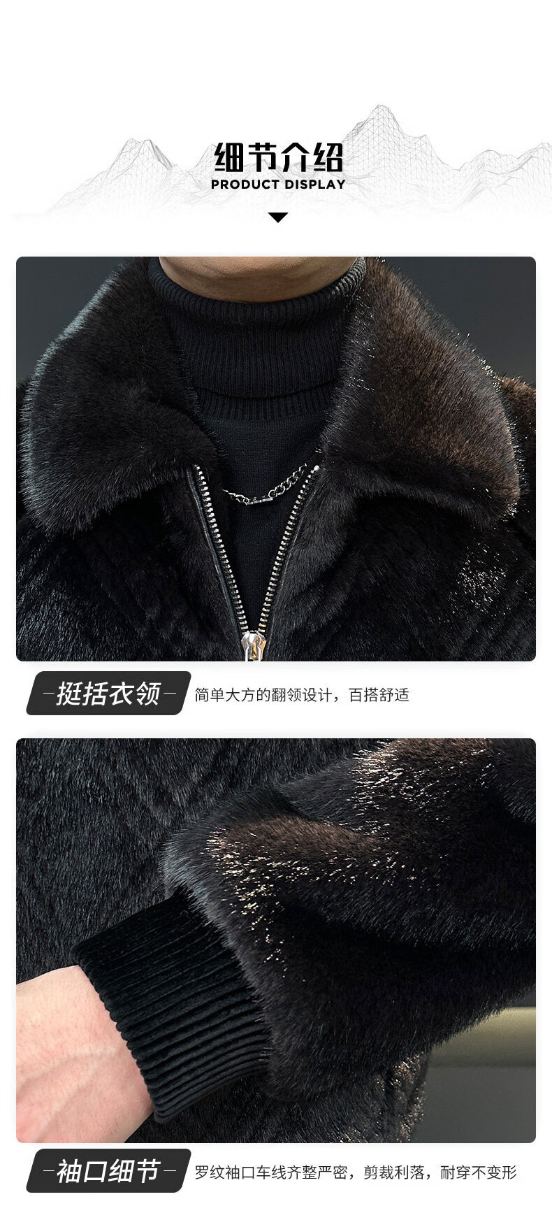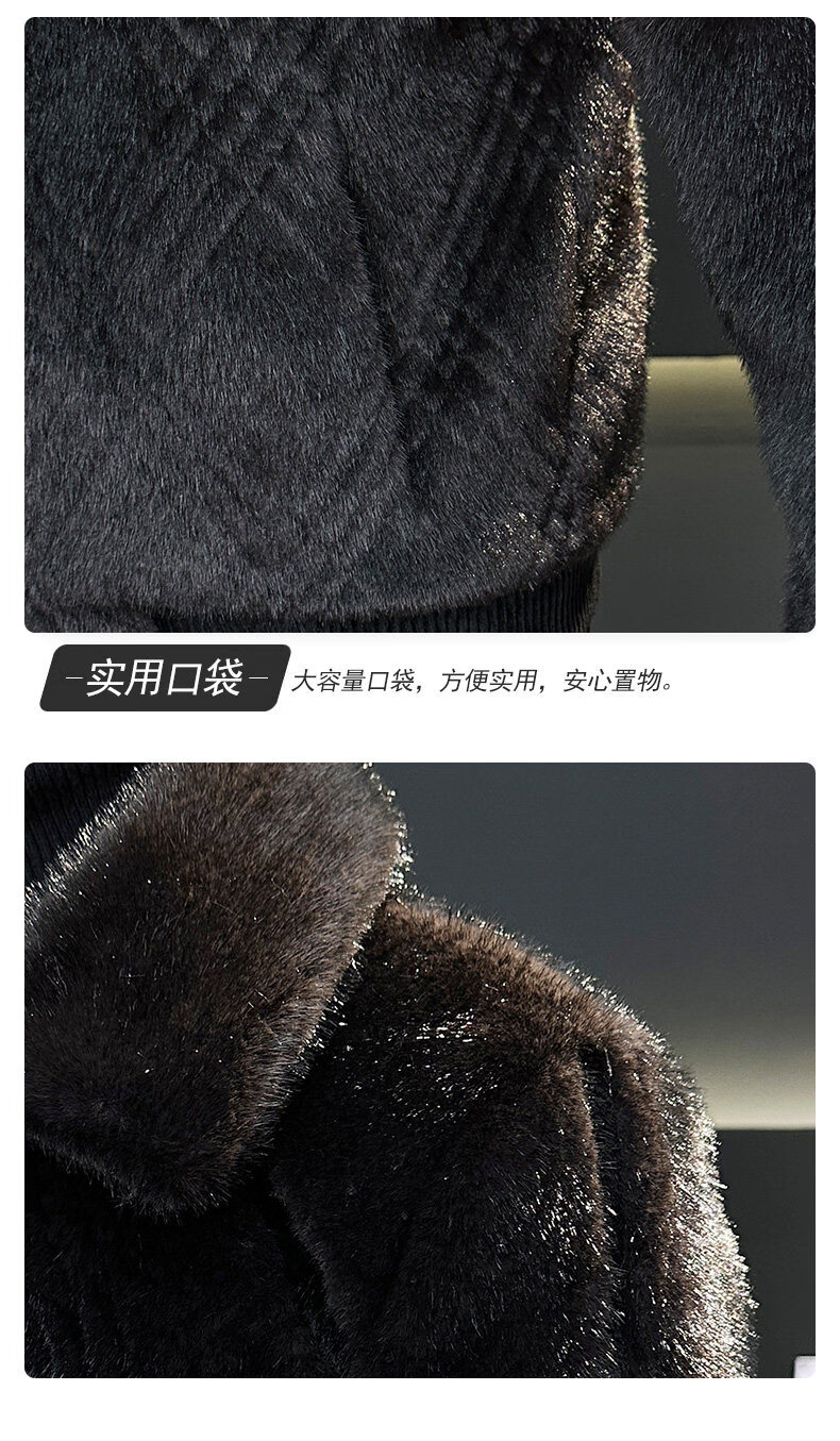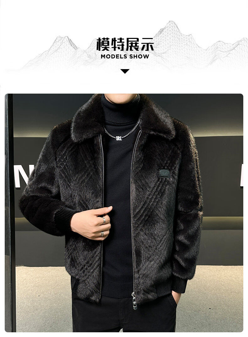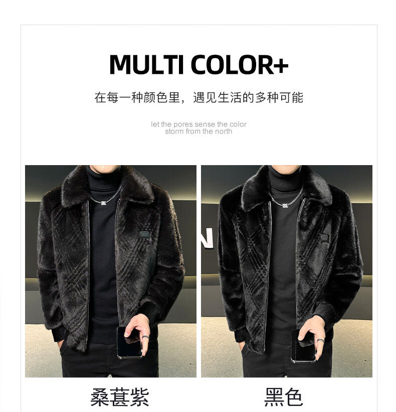 花花公子男士水貂毛仿皮草外套加厚保暖翻领大衣 黑色【金貂绒】 加厚 M 100-115斤