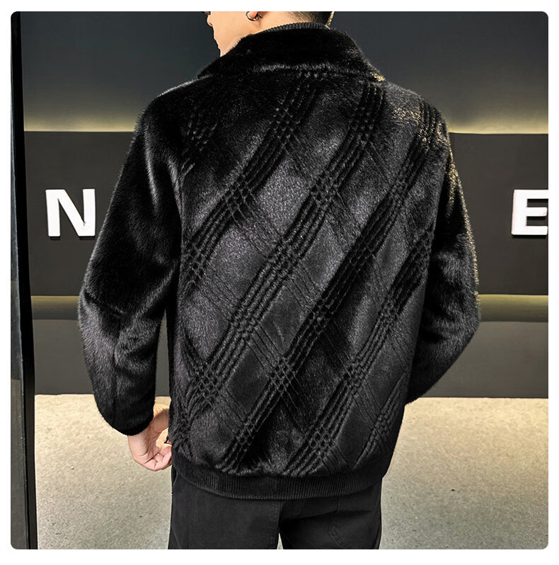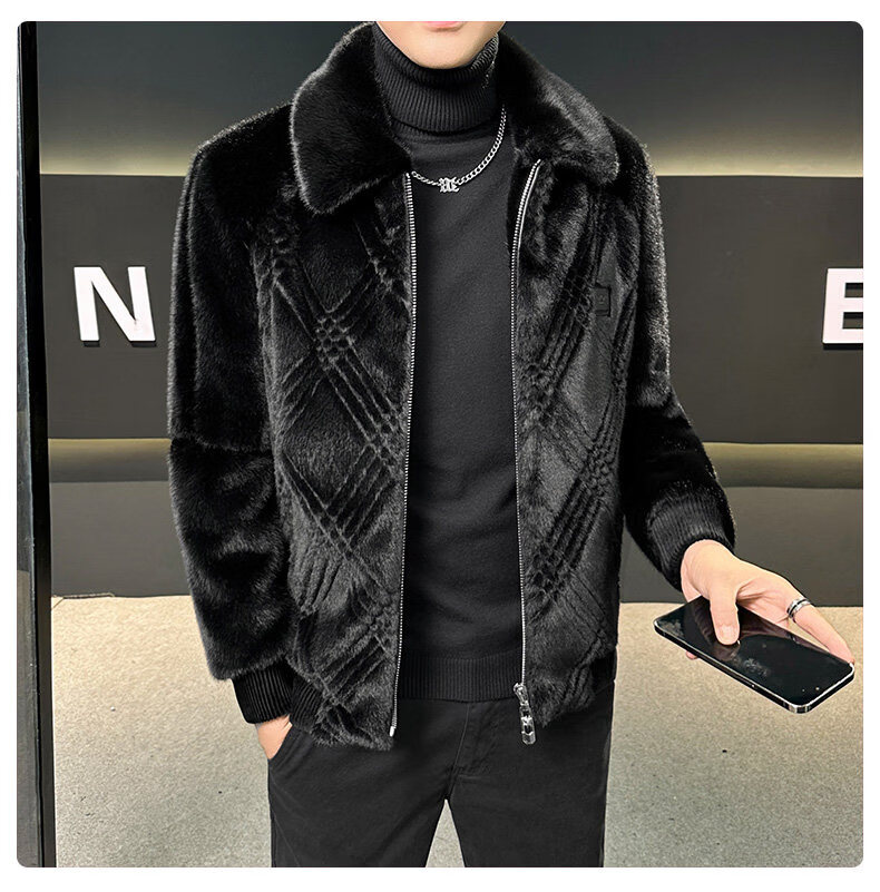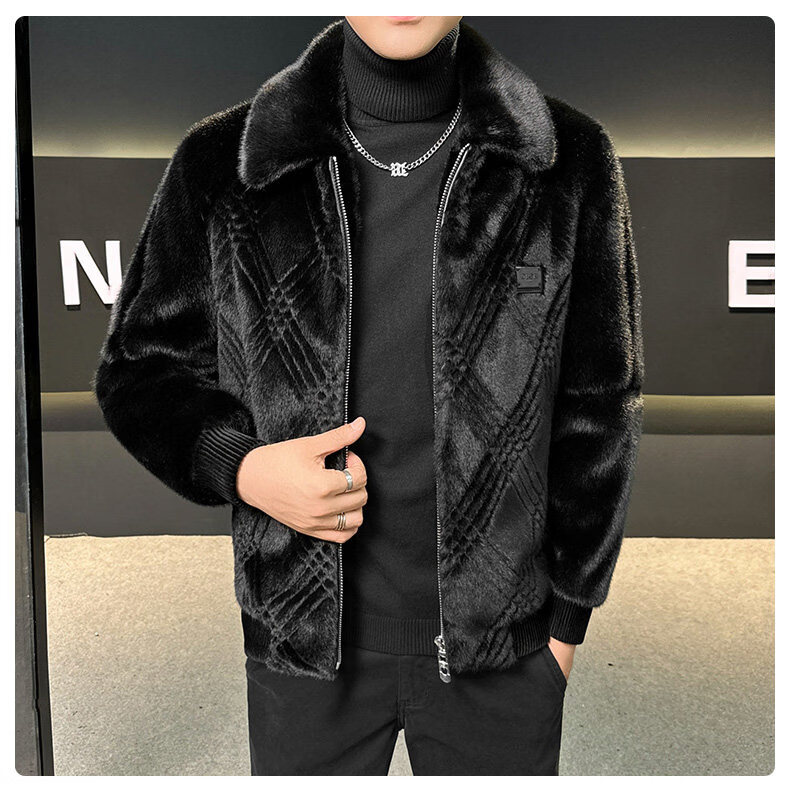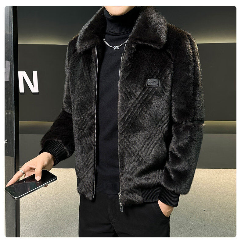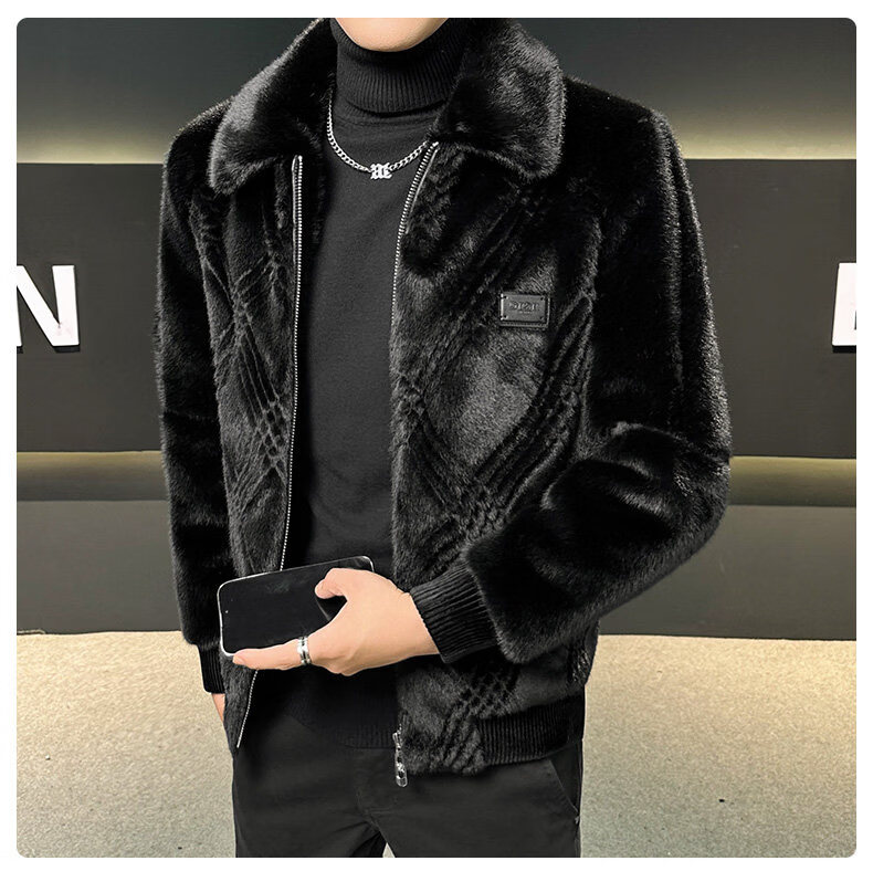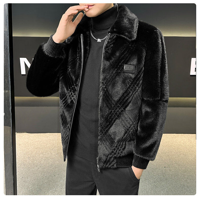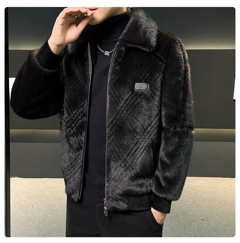 花花公子男士水貂毛仿皮草外套加厚保暖翻领大衣 黑色【金貂绒】 加厚 M 100-115斤