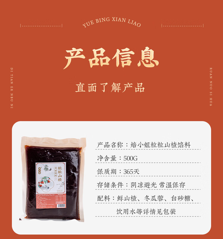 焙小姐月饼馅料粒粒山楂红枣青团牛肉红豆沙馅烘焙材料商用家用中秋专用 新货【粒粒山楂馅】2斤