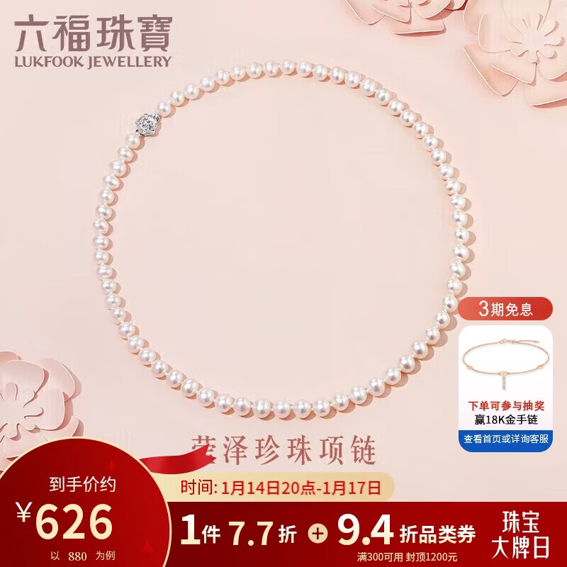 六福珠宝珍珠项链Ag925花形扣莹泽淡水珍珠颈链生日礼物女 总重约25.92克