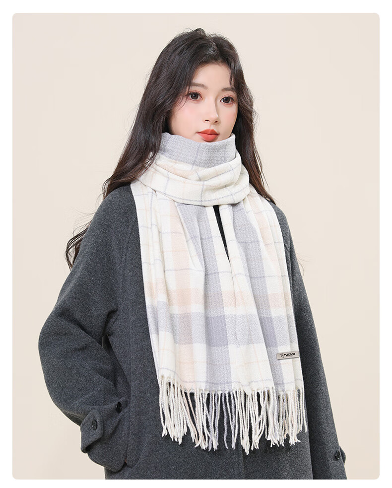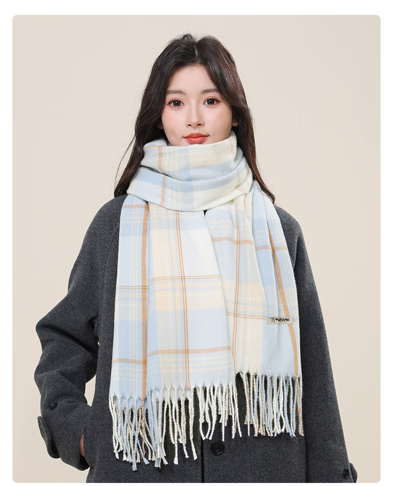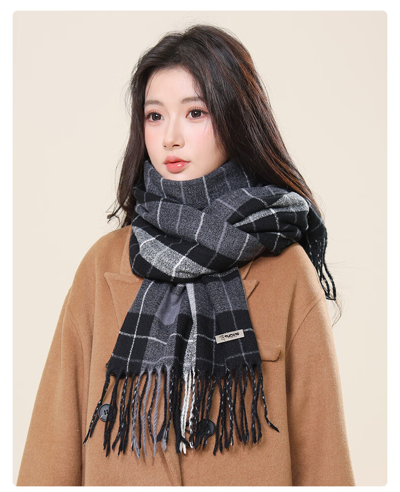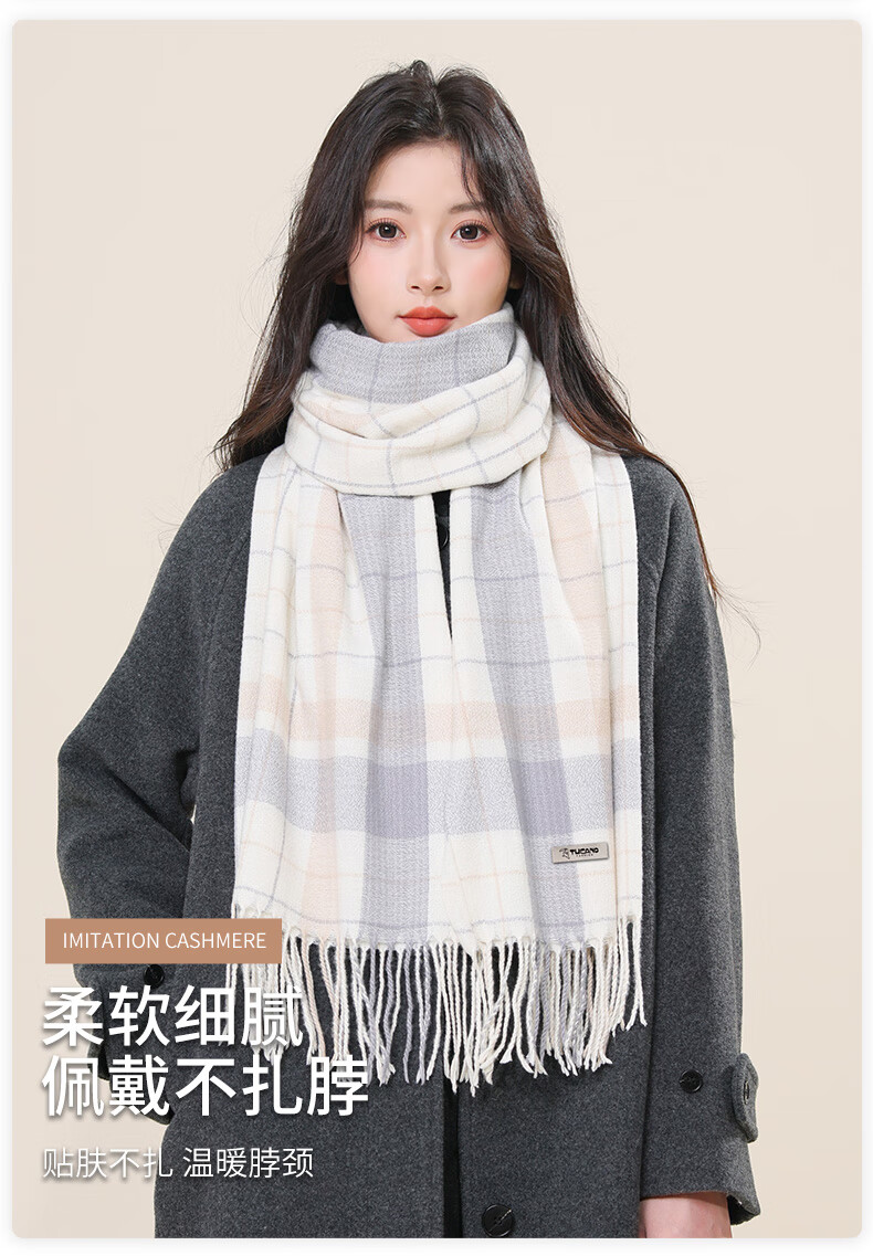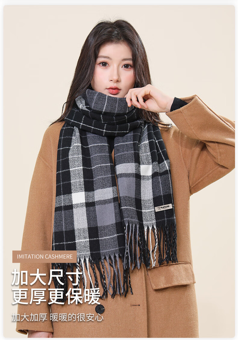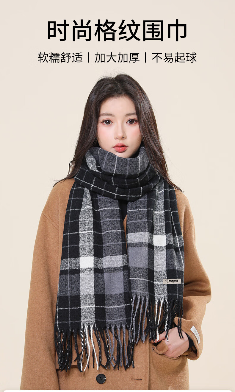 啄木鸟围巾女士冬季加大保暖披肩仿羊绒百搭韩版格子围脖生日礼物送女生