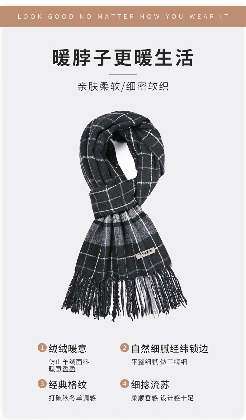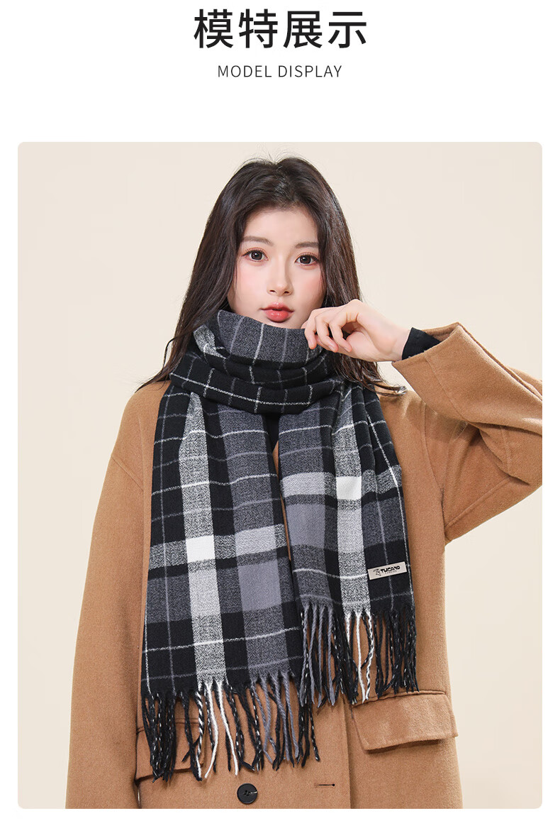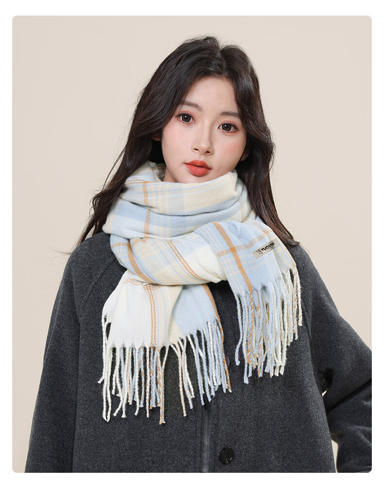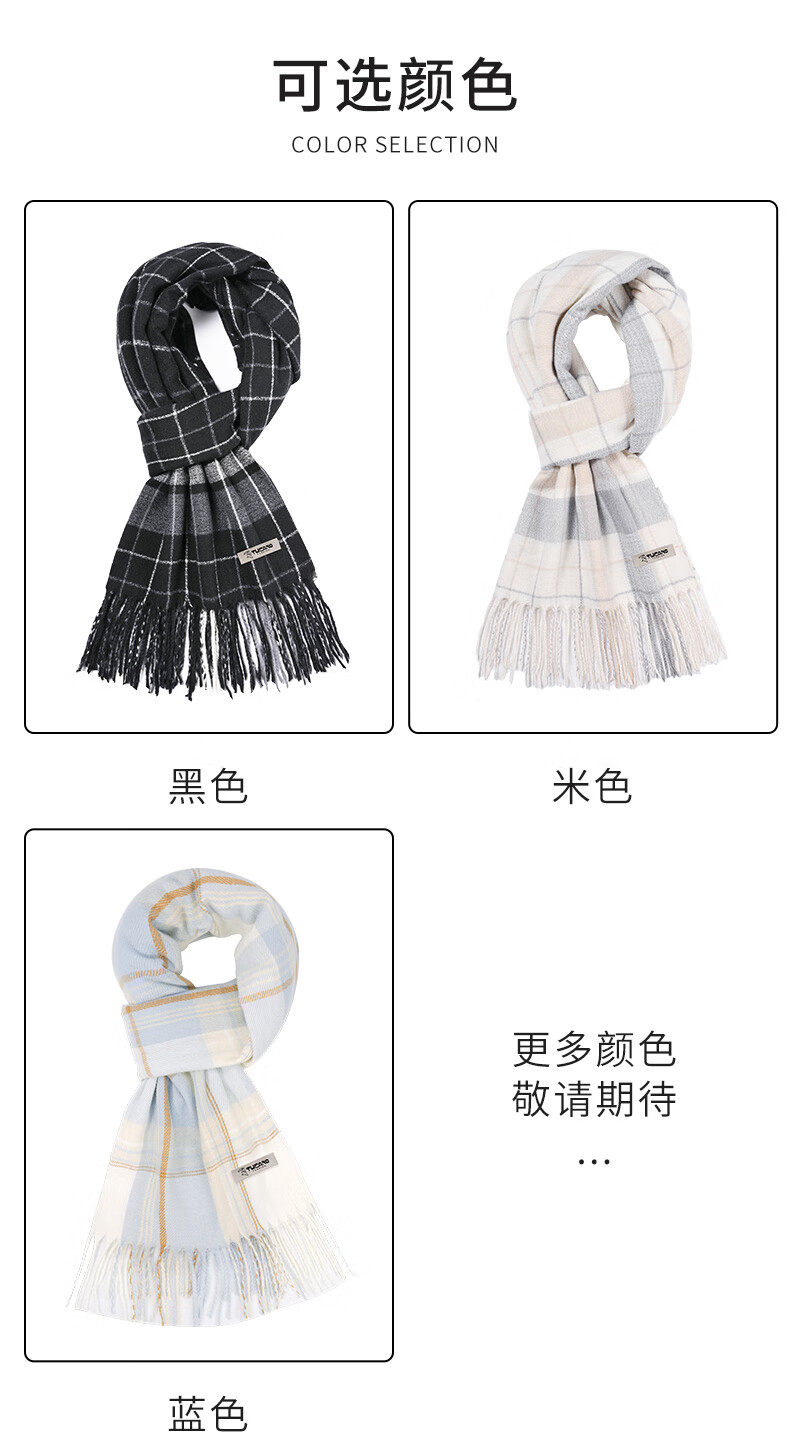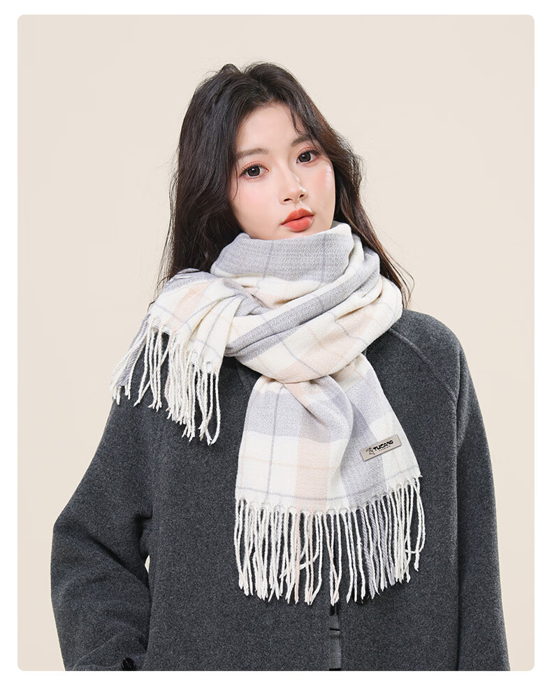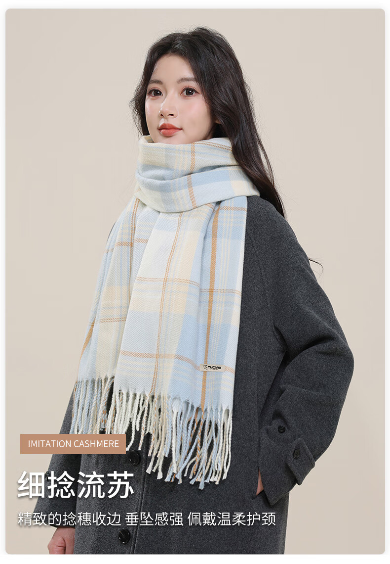 啄木鸟围巾女士冬季加大保暖披肩仿羊绒百搭韩版格子围脖生日礼物送女生