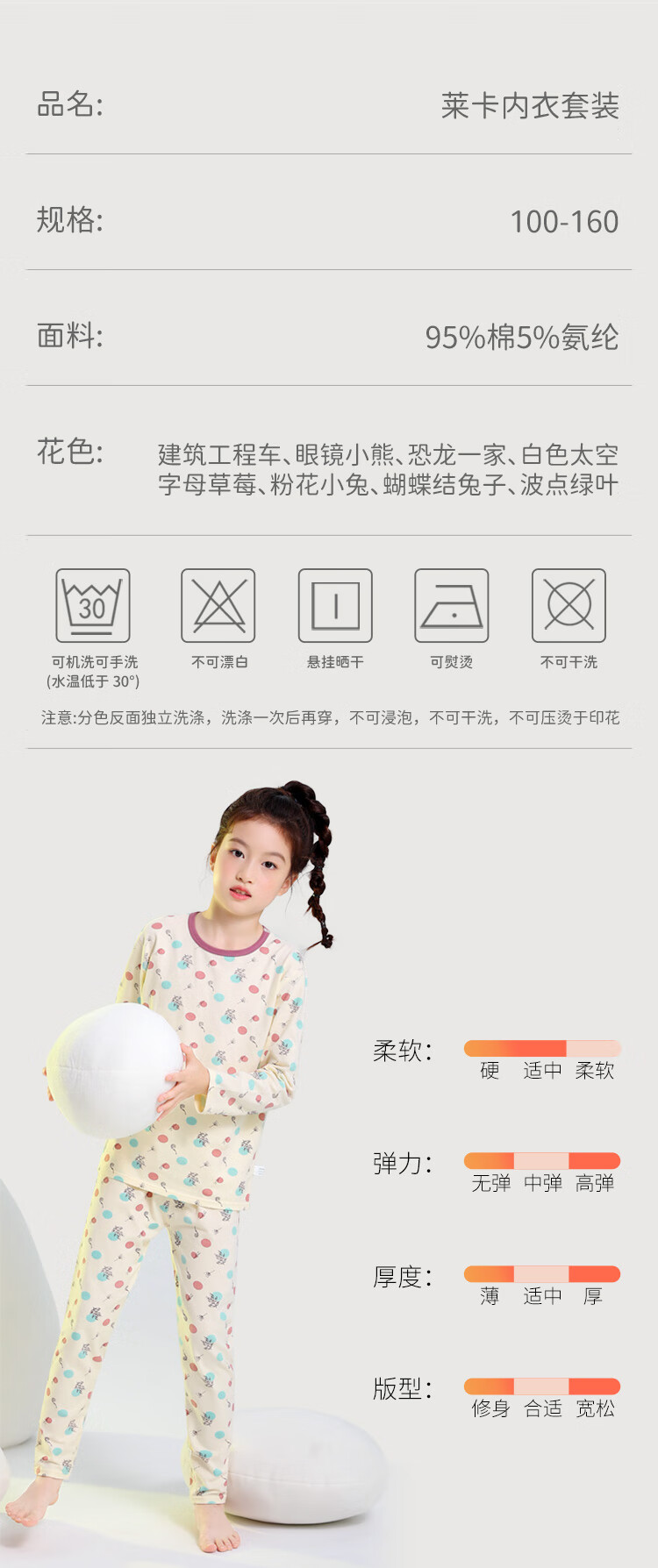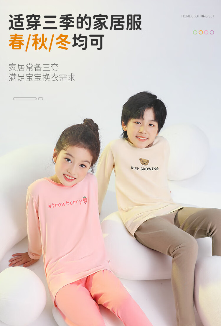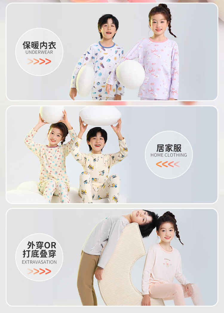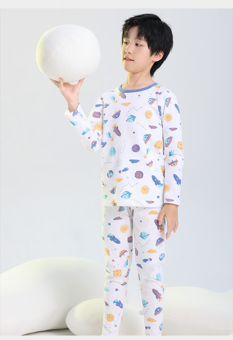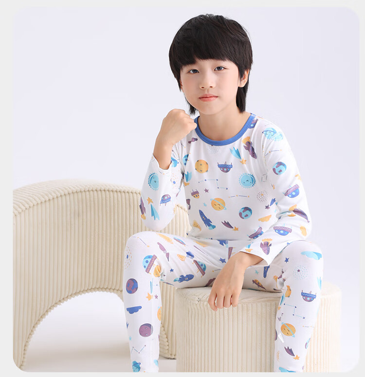 红豆儿童秋衣秋裤男女童秋冬保暖内衣套装学生内穿打底儿童家居服睡衣 白色太空 150 【建议135-145cm65-75斤】