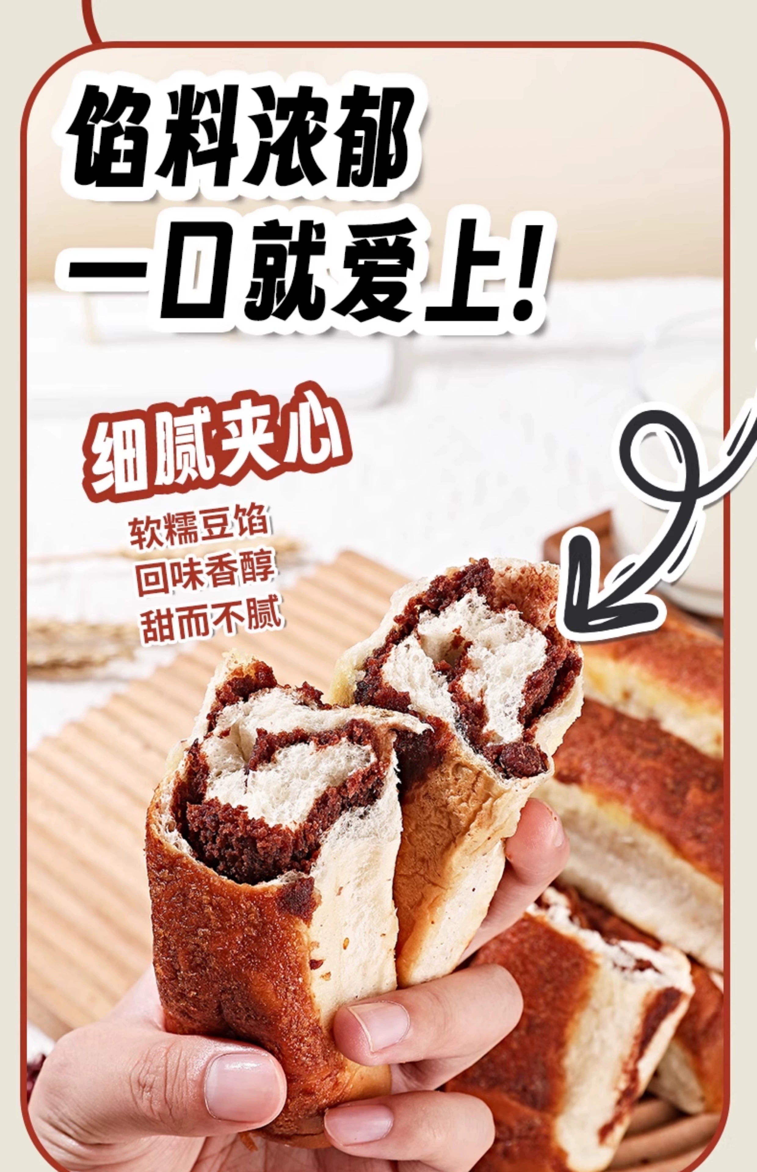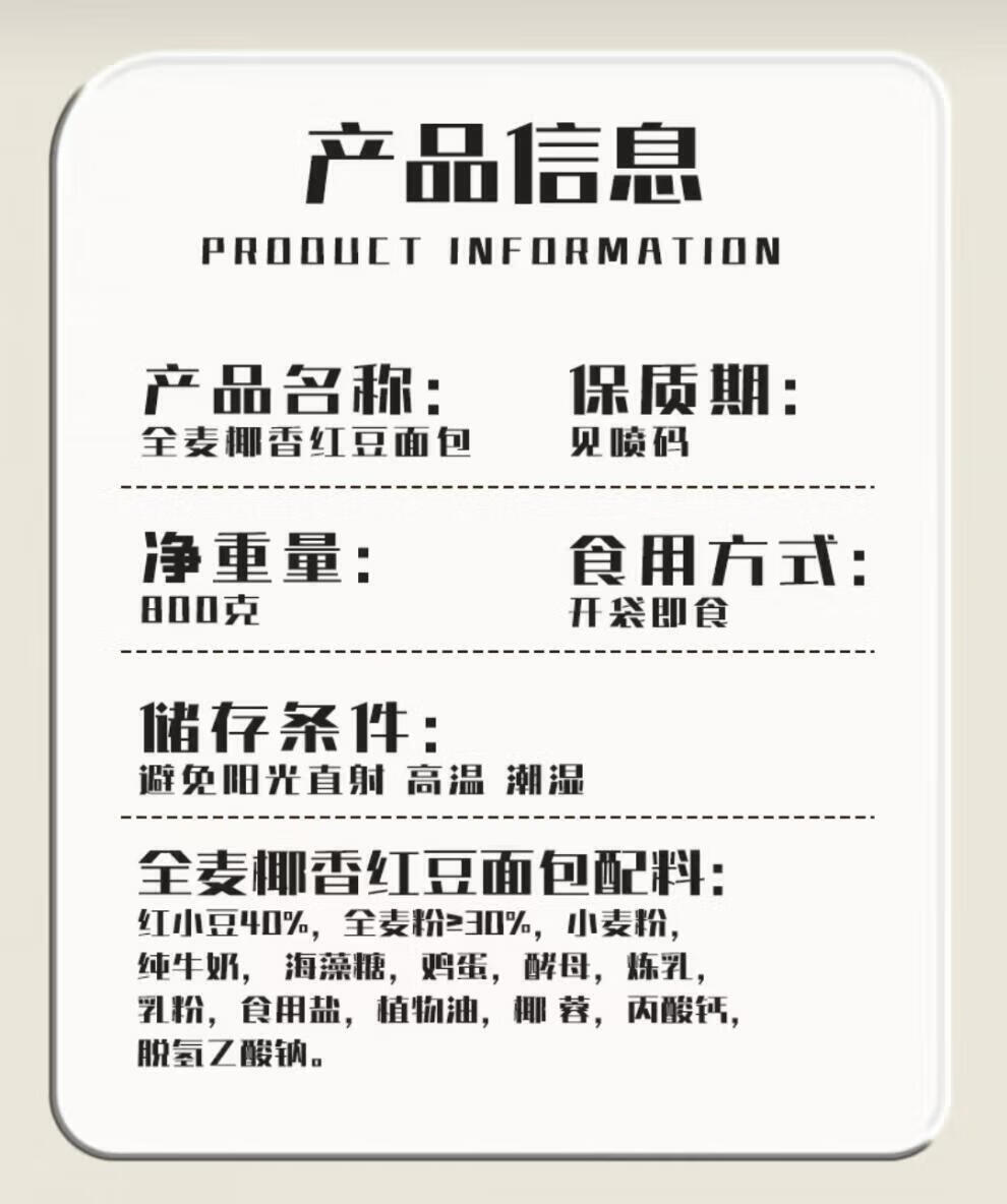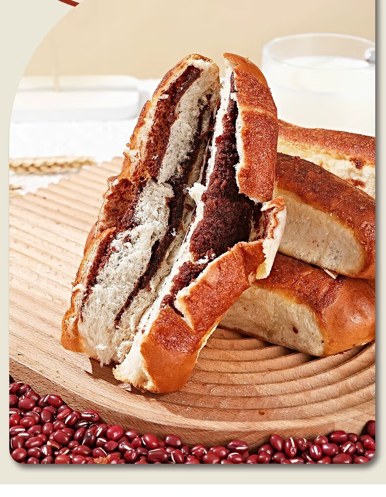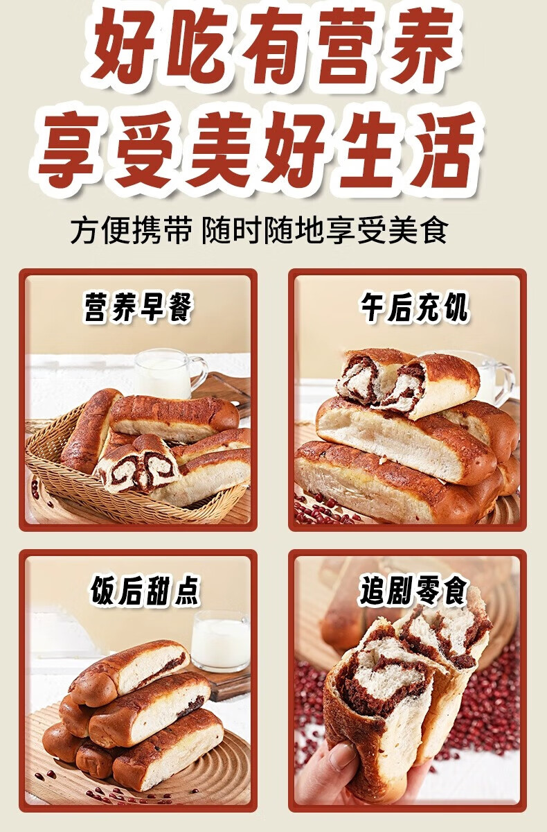 层遇红豆面包全麦椰香红豆面包800g早餐面包软糯豆沙馅夹心细腻下午茶 层遇红豆面包800g