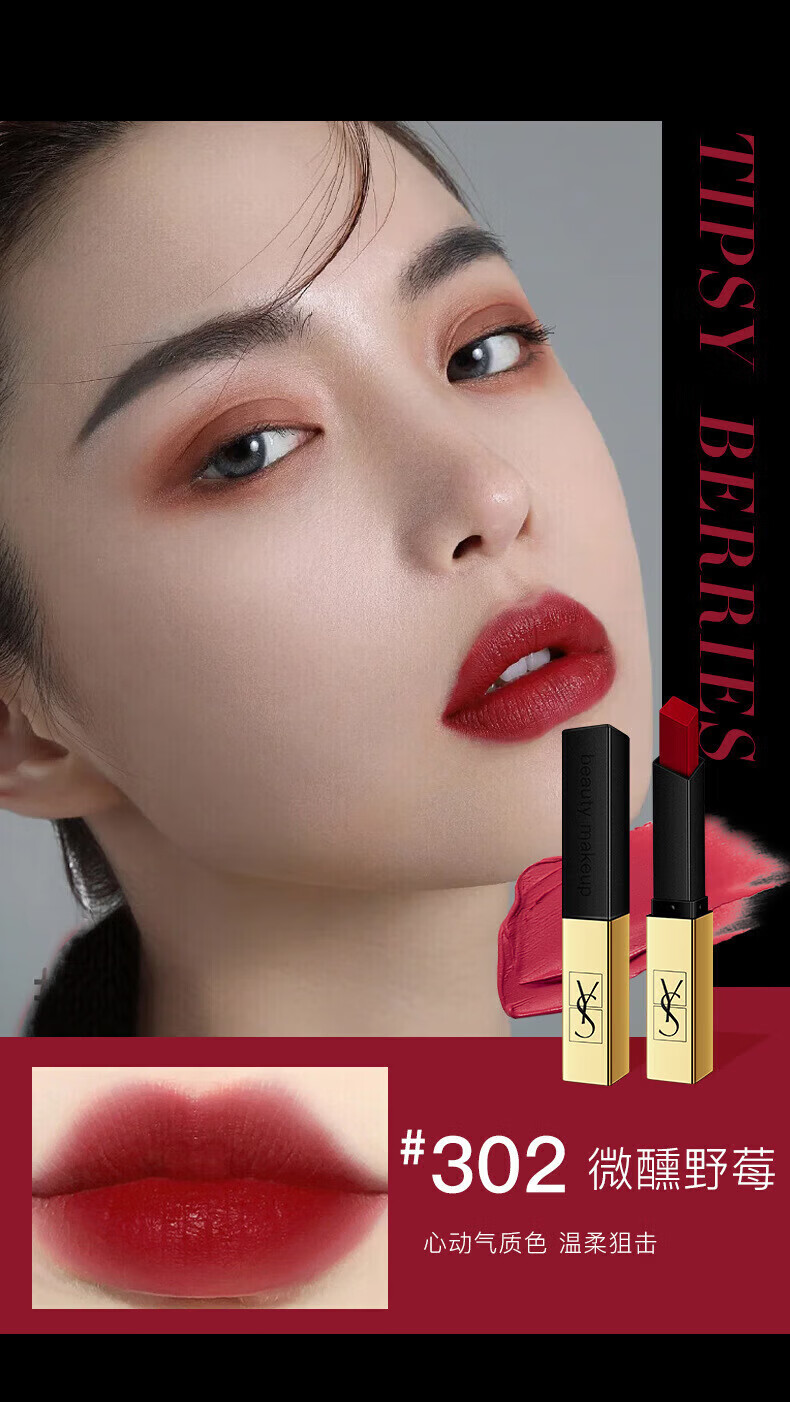 大牌正品圣罗口红中小样不掉色不沾杯持久防水不脱色大牌 302#微醺野莓