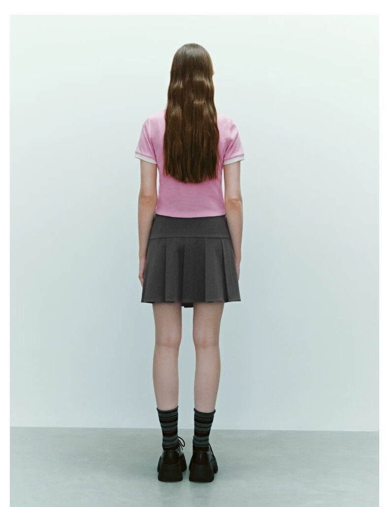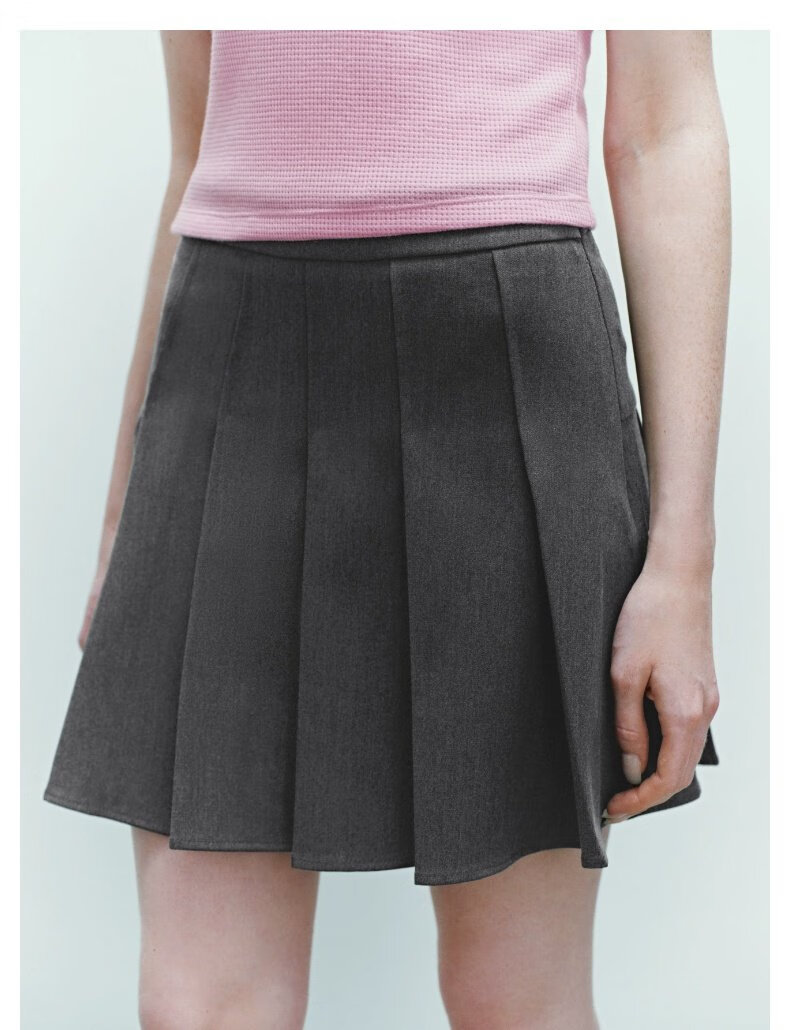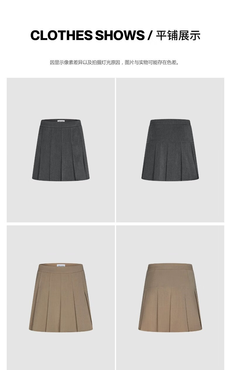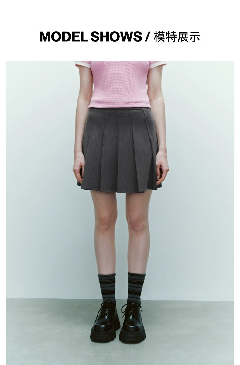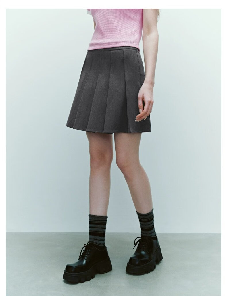 UR2025秋季新款女装休闲减龄学院风百褶A字半裙UYY550014 深灰 (无内衬) M