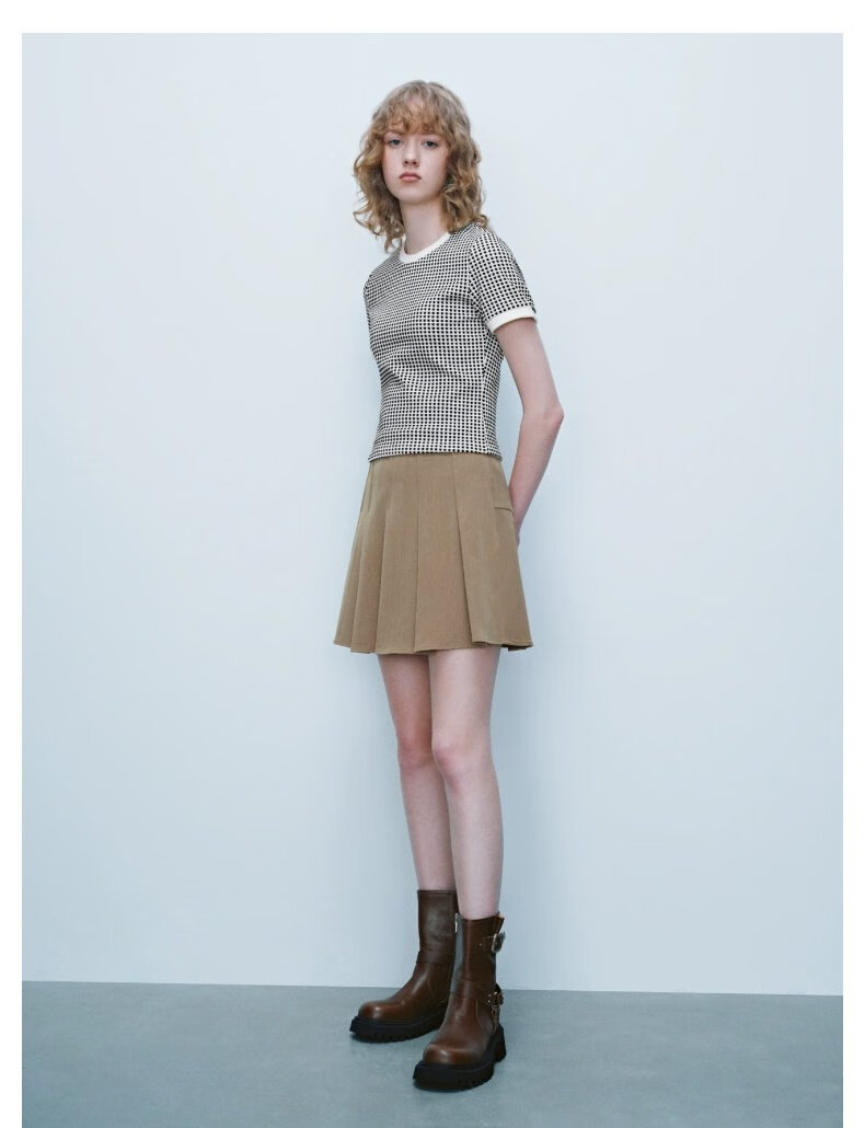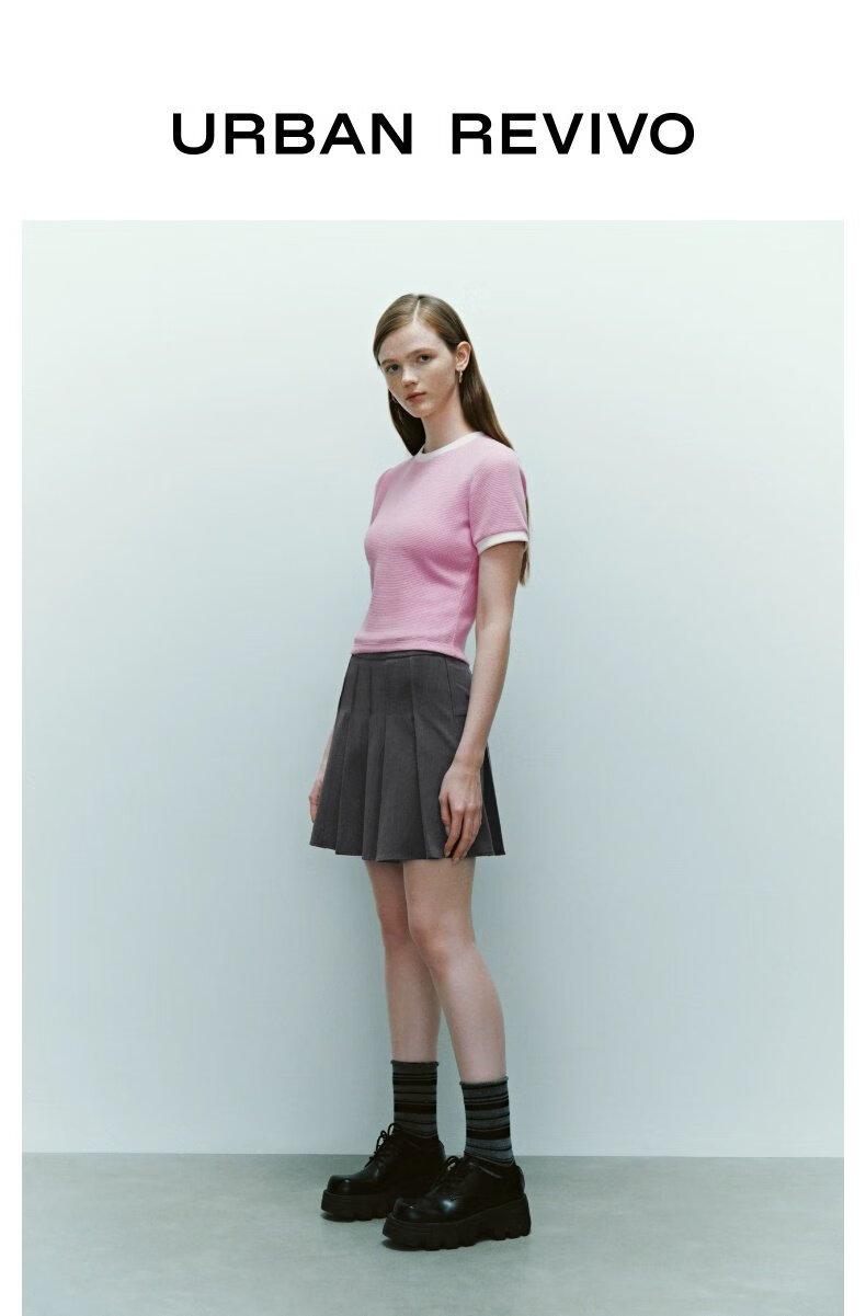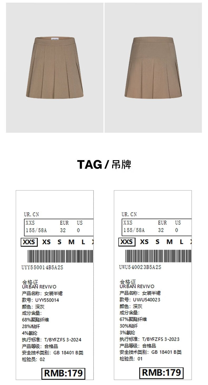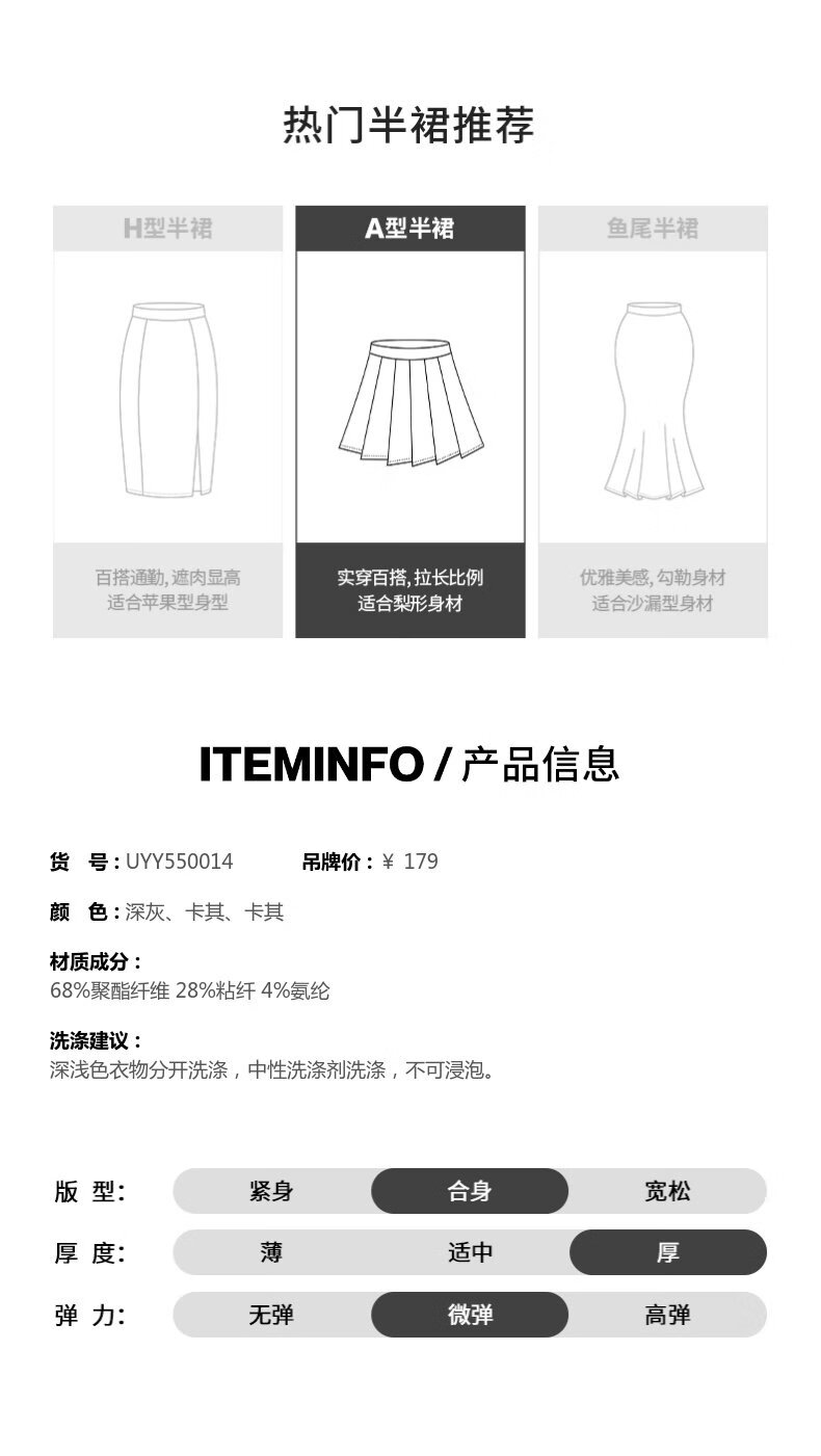 UR2025秋季新款女装休闲减龄学院风百褶A字半裙UYY550014 深灰 (无内衬) M