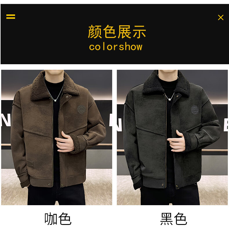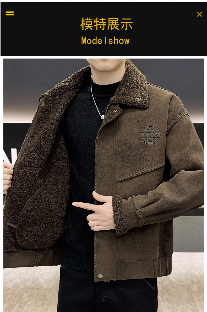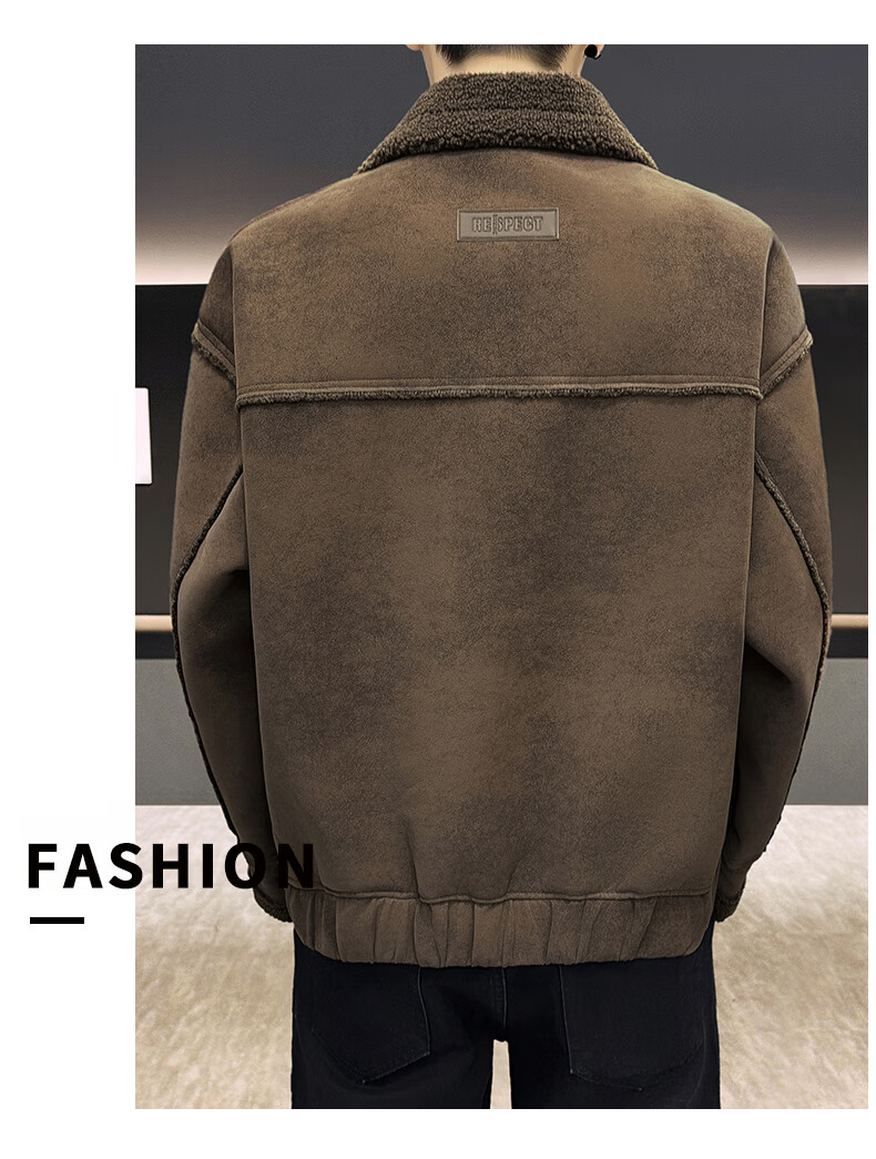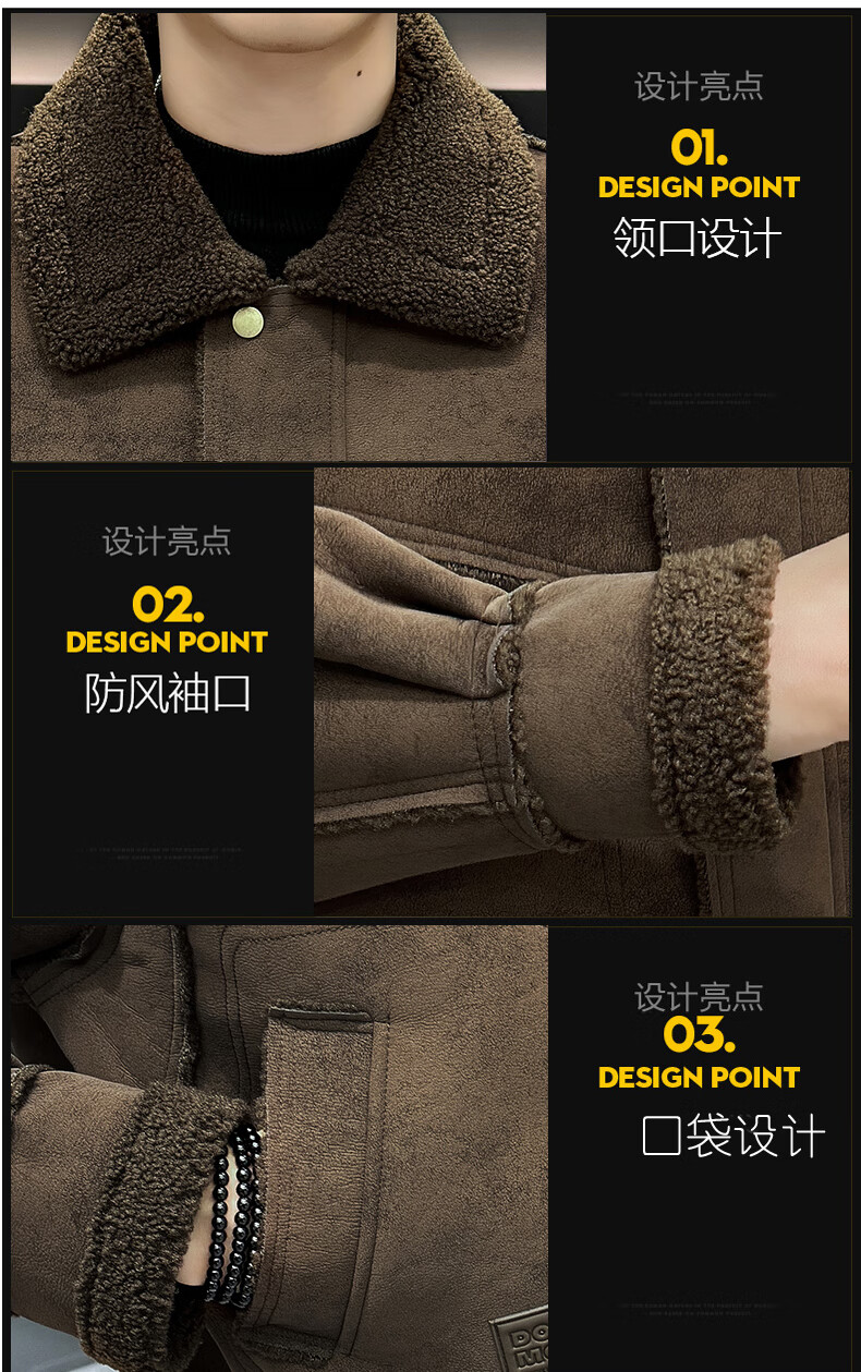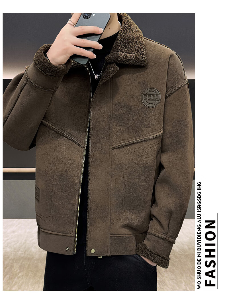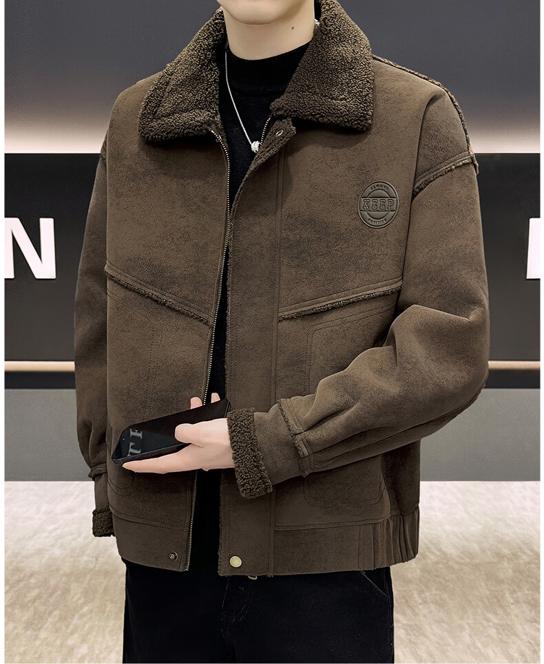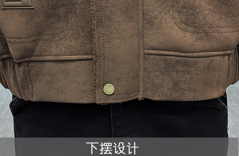 皮尔卡丹(pierre cardin)冬季新款麂皮绒仿皮毛一体外套男士加绒加厚保暖休闲复古皮衣 咖啡色【保暖】 加厚 2XL 135-155斤