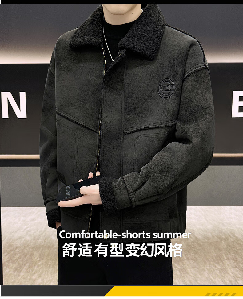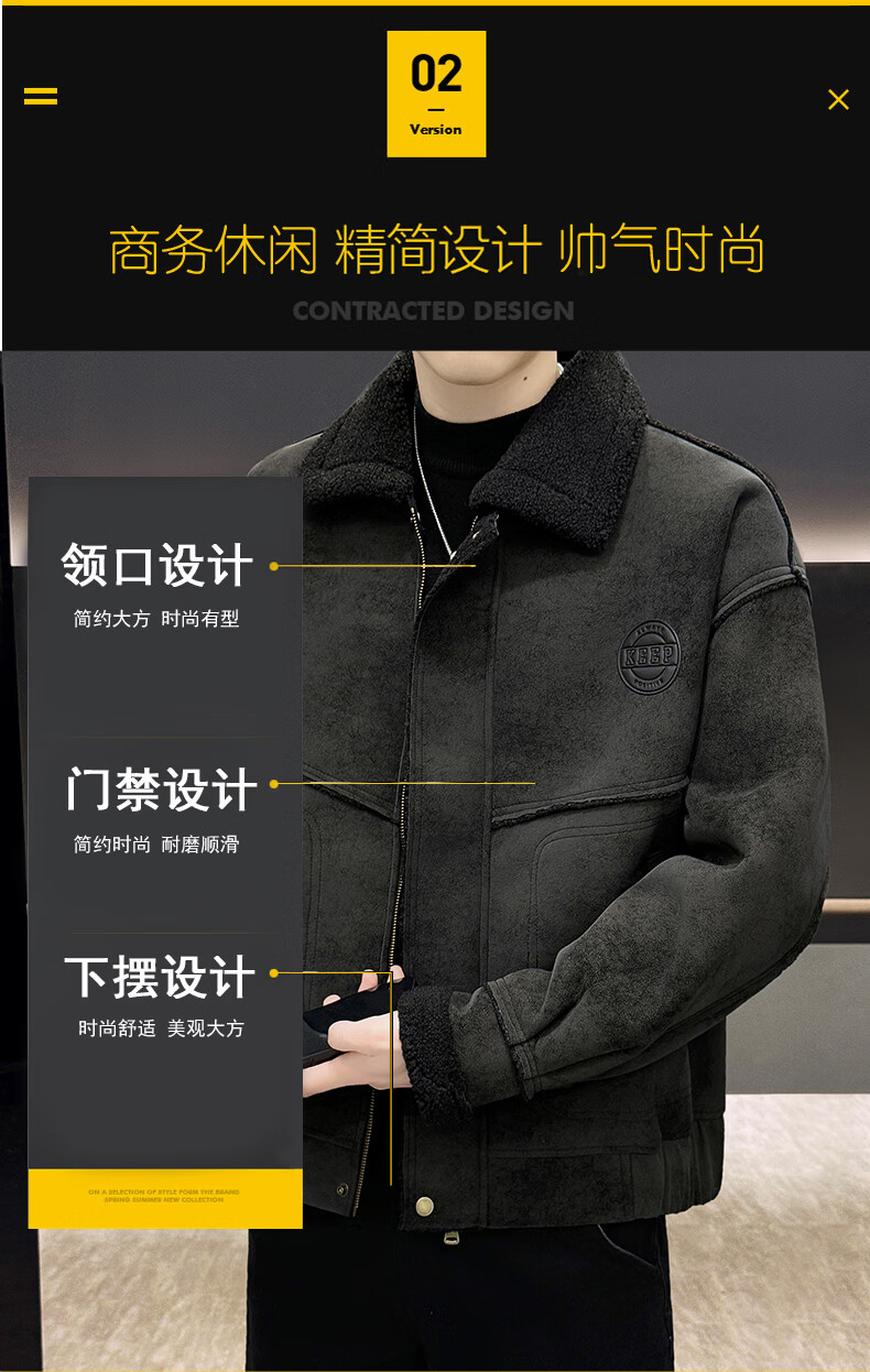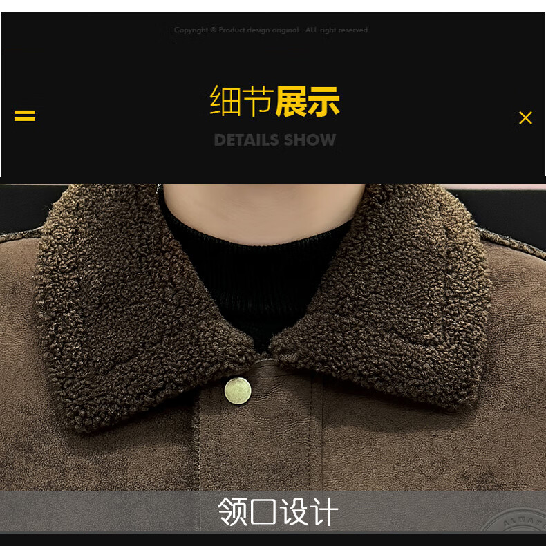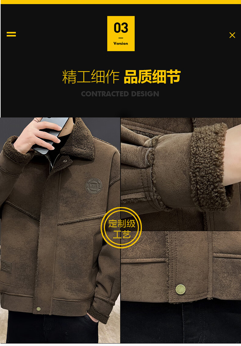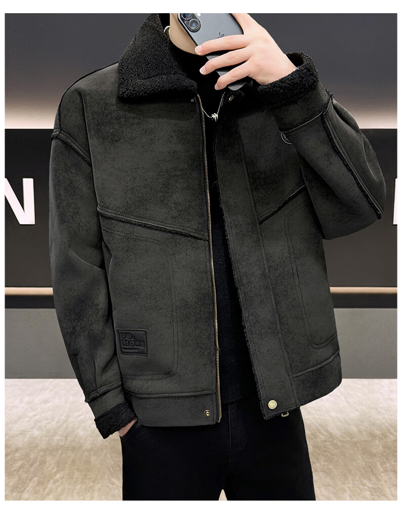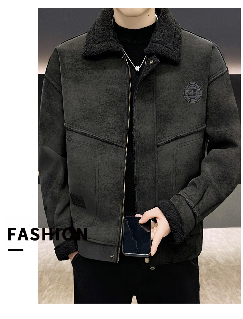 皮尔卡丹(pierre cardin)冬季新款麂皮绒仿皮毛一体外套男士加绒加厚保暖休闲复古皮衣 咖啡色【保暖】 加厚 2XL 135-155斤