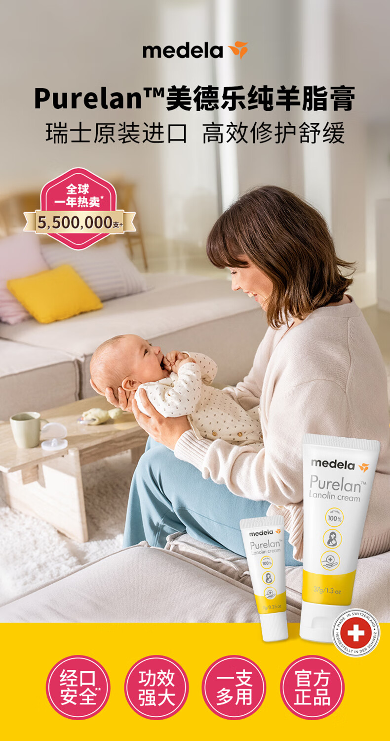 美德乐(Medela)羊脂膏乳头膏保护霜修护膏高纯度防皲裂膏滋润准孕妇瑞士进口37g