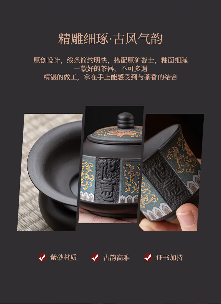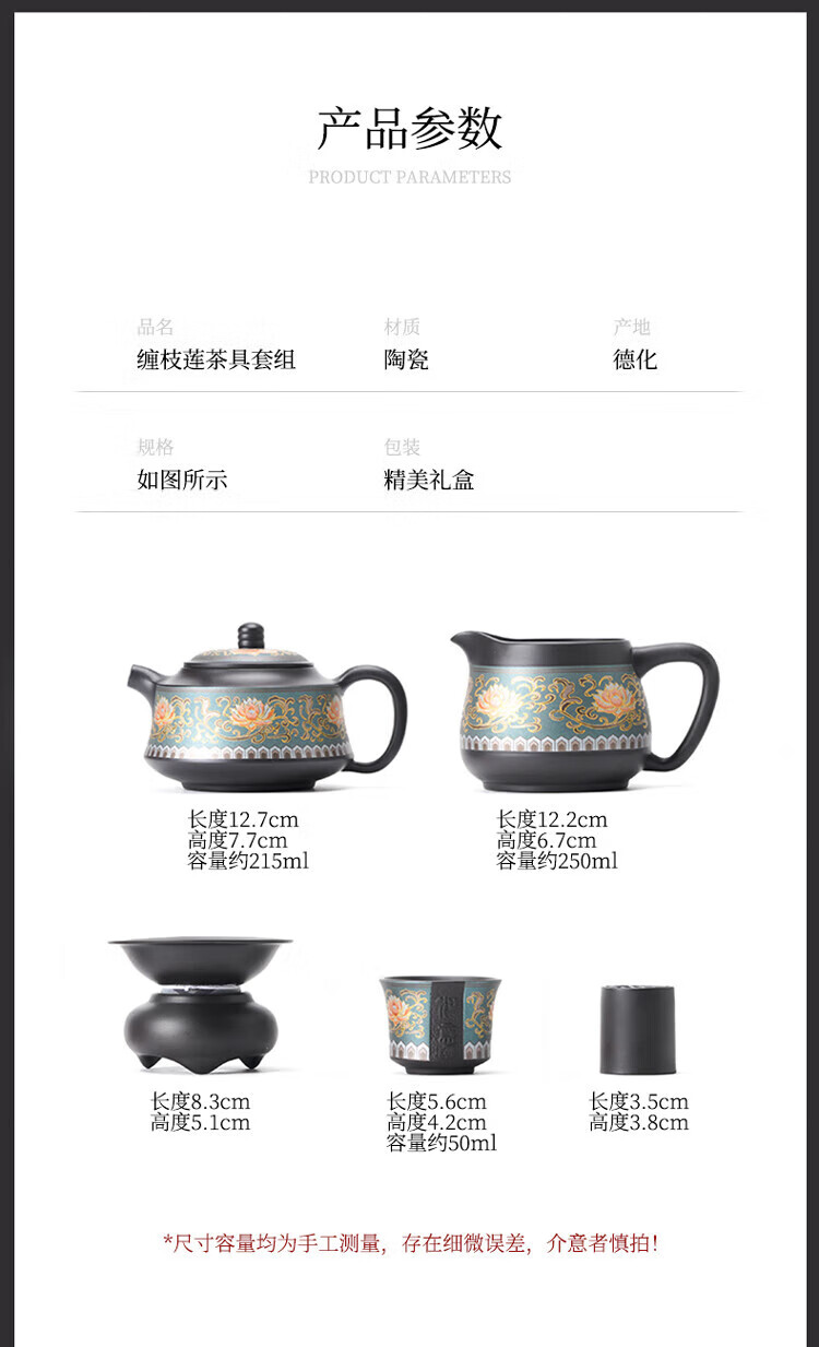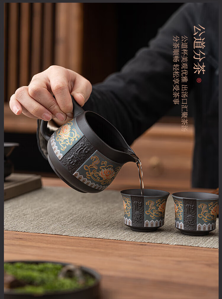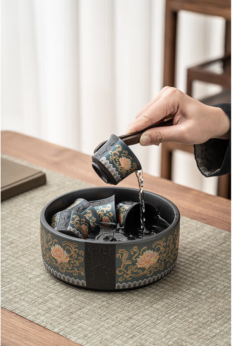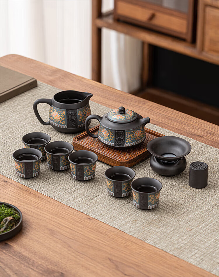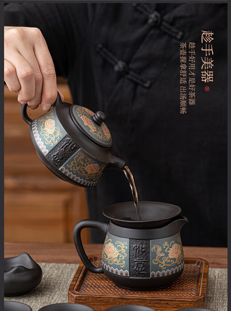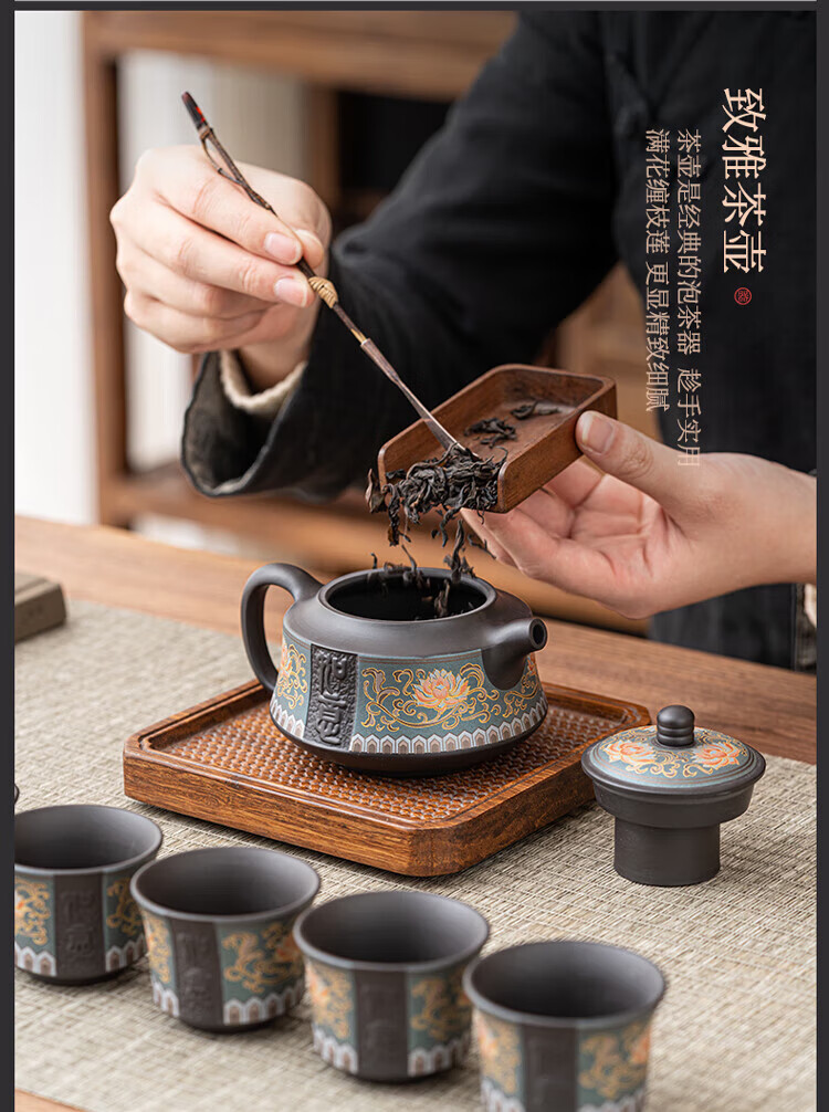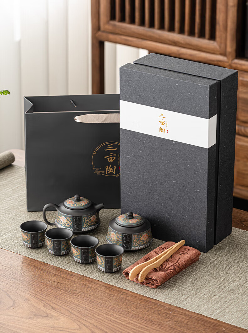 教师节礼物紫砂茶壶套装整套伴手礼商务礼品生日礼物男士 蓝如意缠枝高端礼盒装6头
