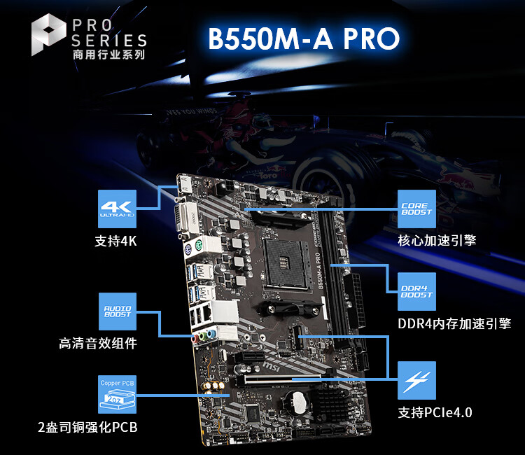 微星(MSI)B550M-A PRO电脑主板 支持CPU 5600/5600GT/5600G/5700X(AMD B550/Socket AM4)