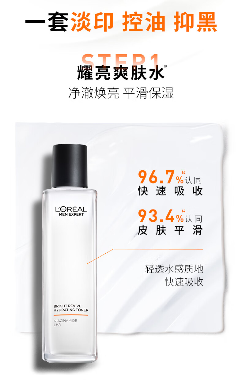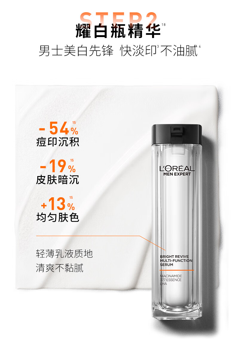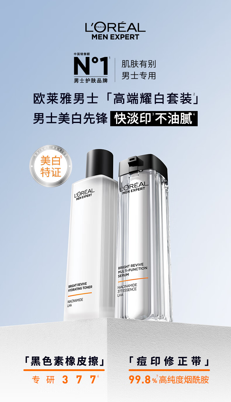 欧莱雅男士耀白精华水两件套装美白控油补水保湿护肤品新年礼盒送男生