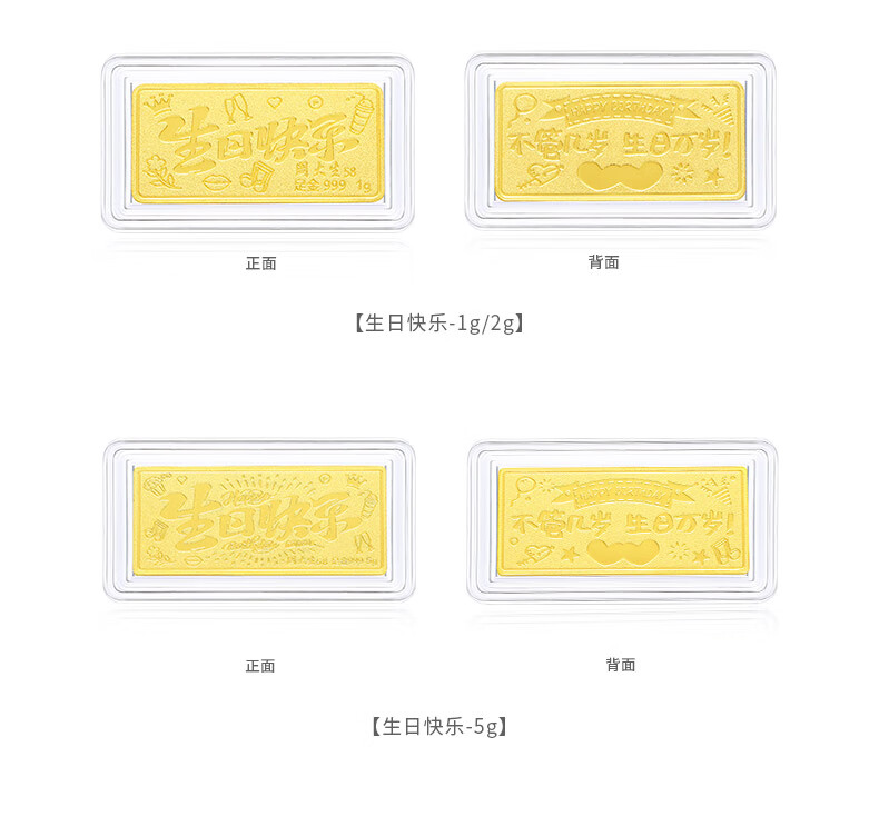 周大生黄金投资金金条足金金币金片生日快乐新婚快乐送礼5g 生日快乐-绒布袋包装 5g