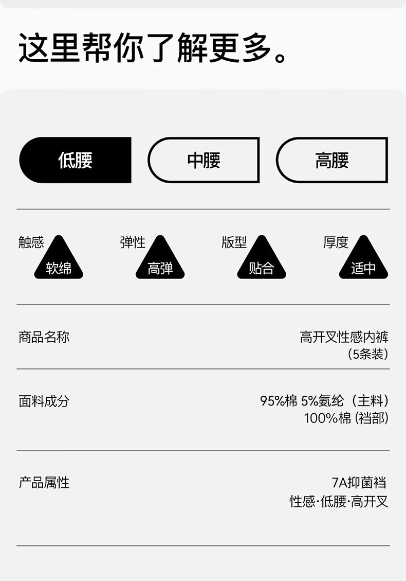 内小伴5条装内裤女纯棉高开叉性感内裤100%纯棉7A抗菌裆纯欲丁字裤L