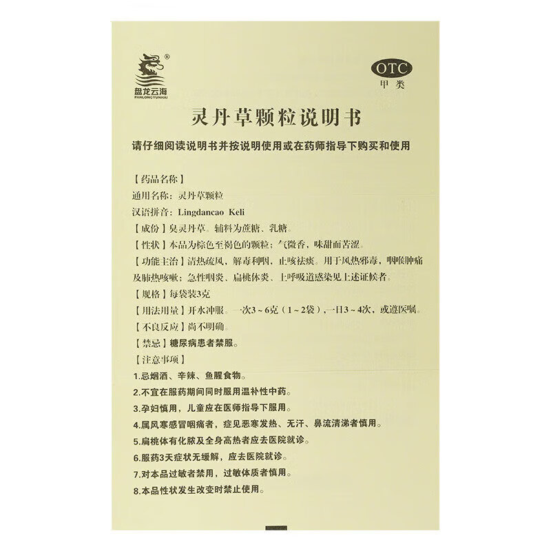 盘龙云海 灵丹草颗粒 3g*12袋 感冒止咳 清热解毒 利咽止咳 3盒装