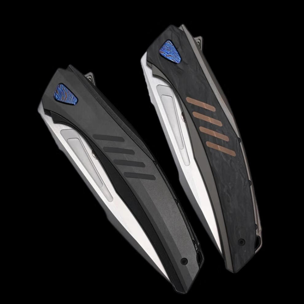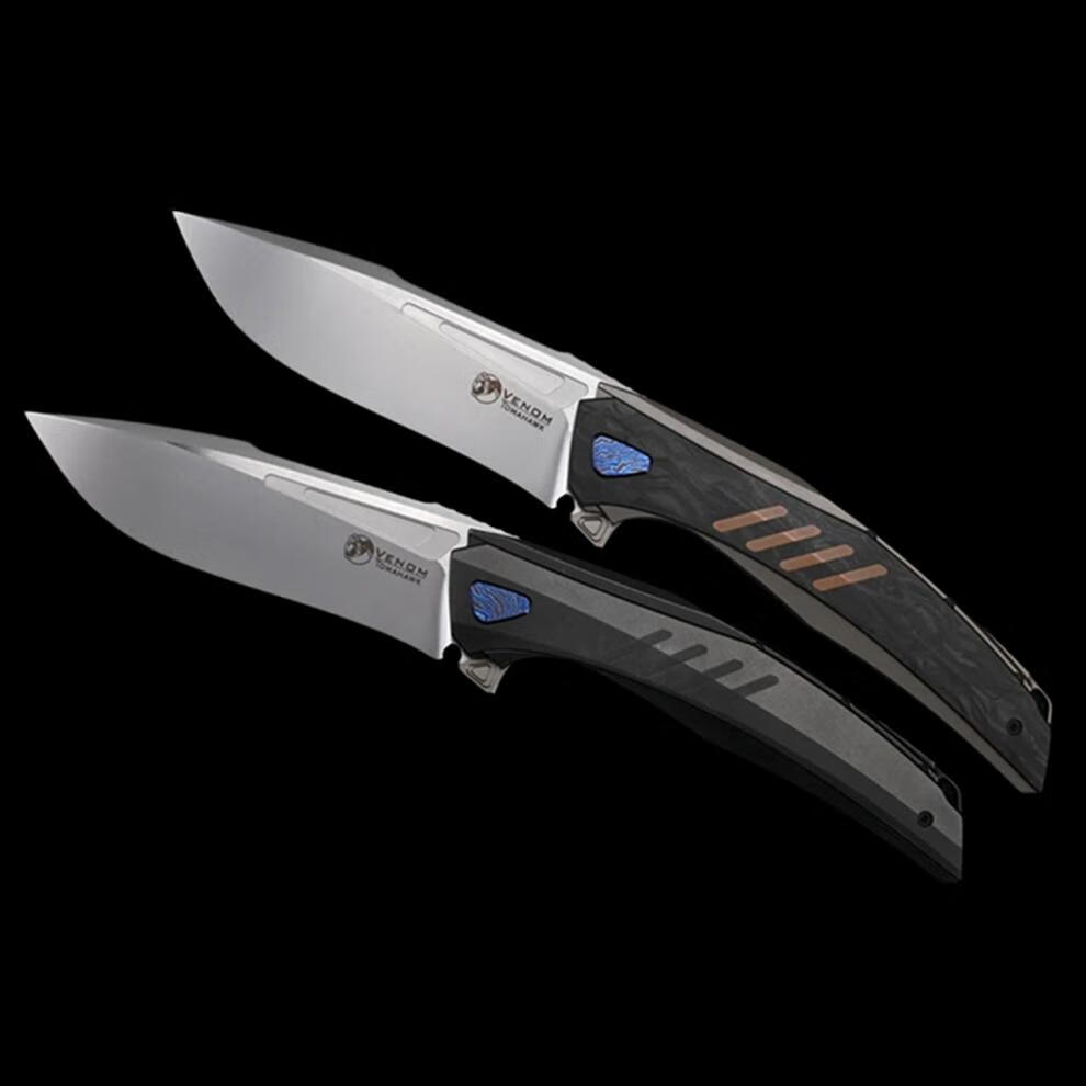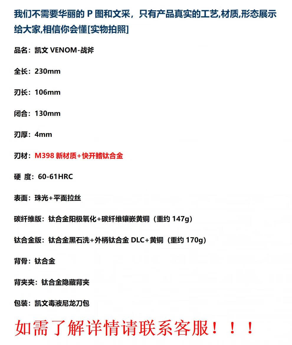 溥畔战斧凯文VENOM折叠刀钛合金M398钢折叠刀户外把玩防身口袋EDC 灰色 60°以上 x 9.8cm x 120mm