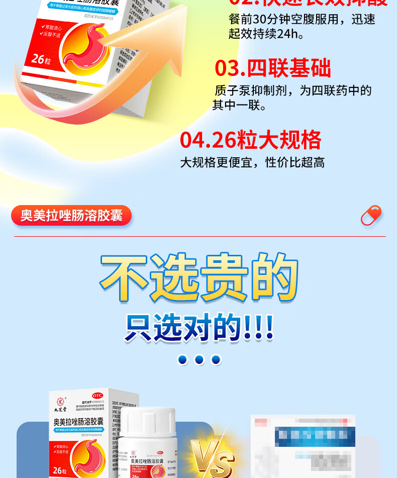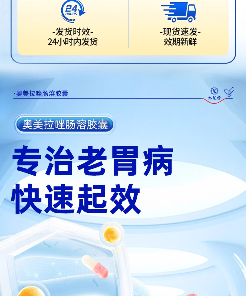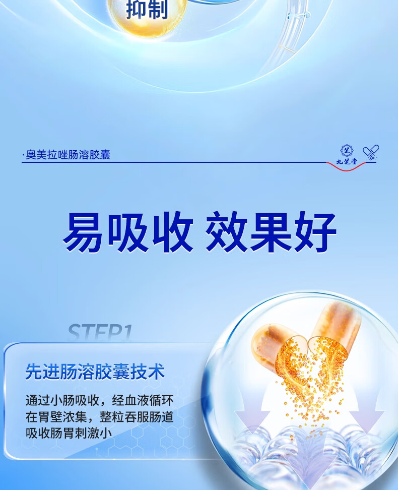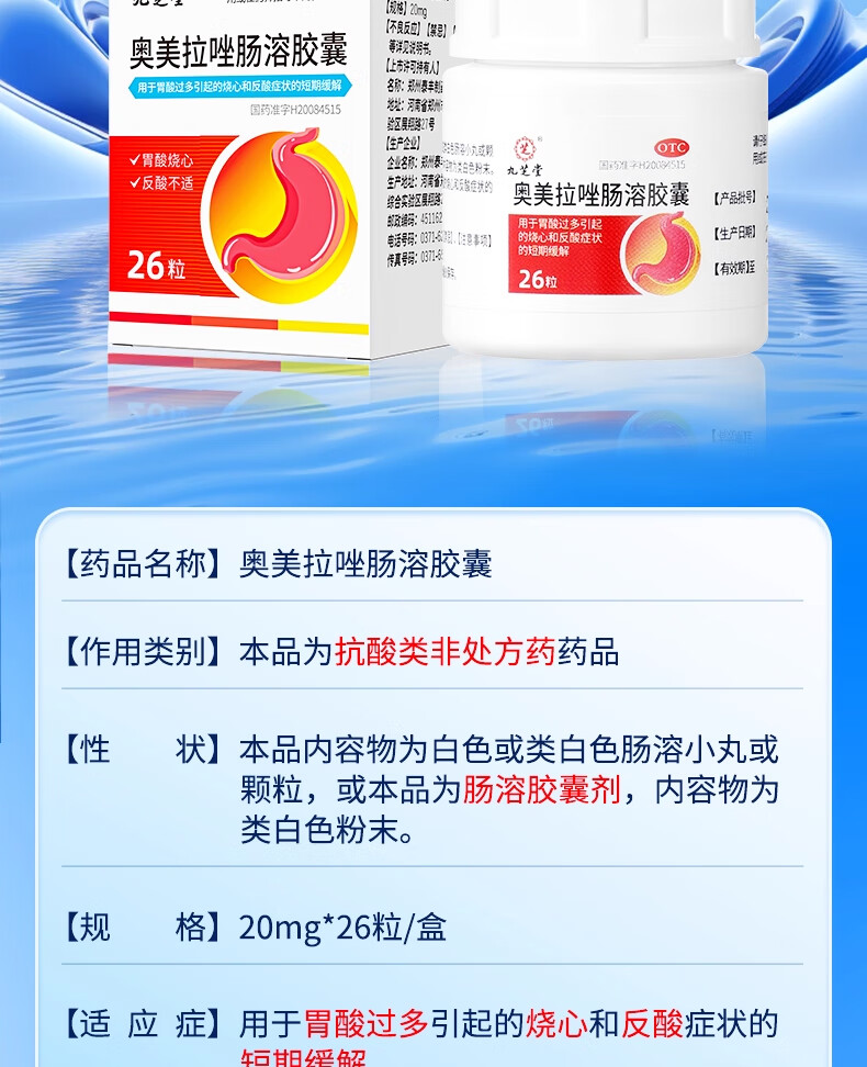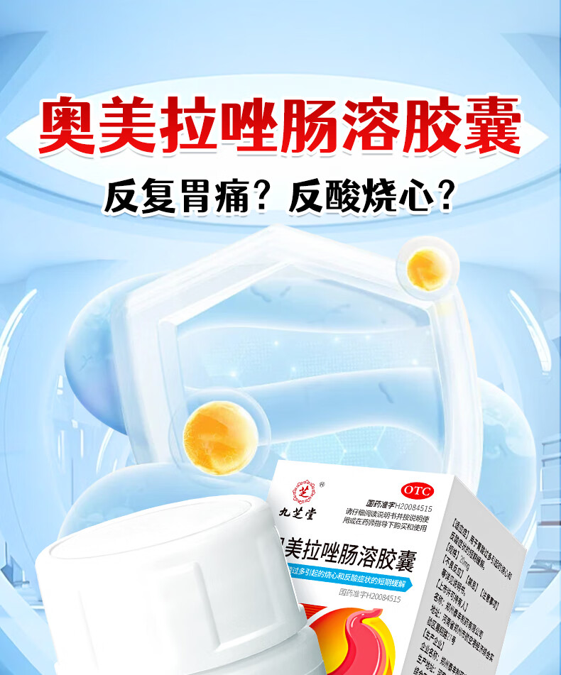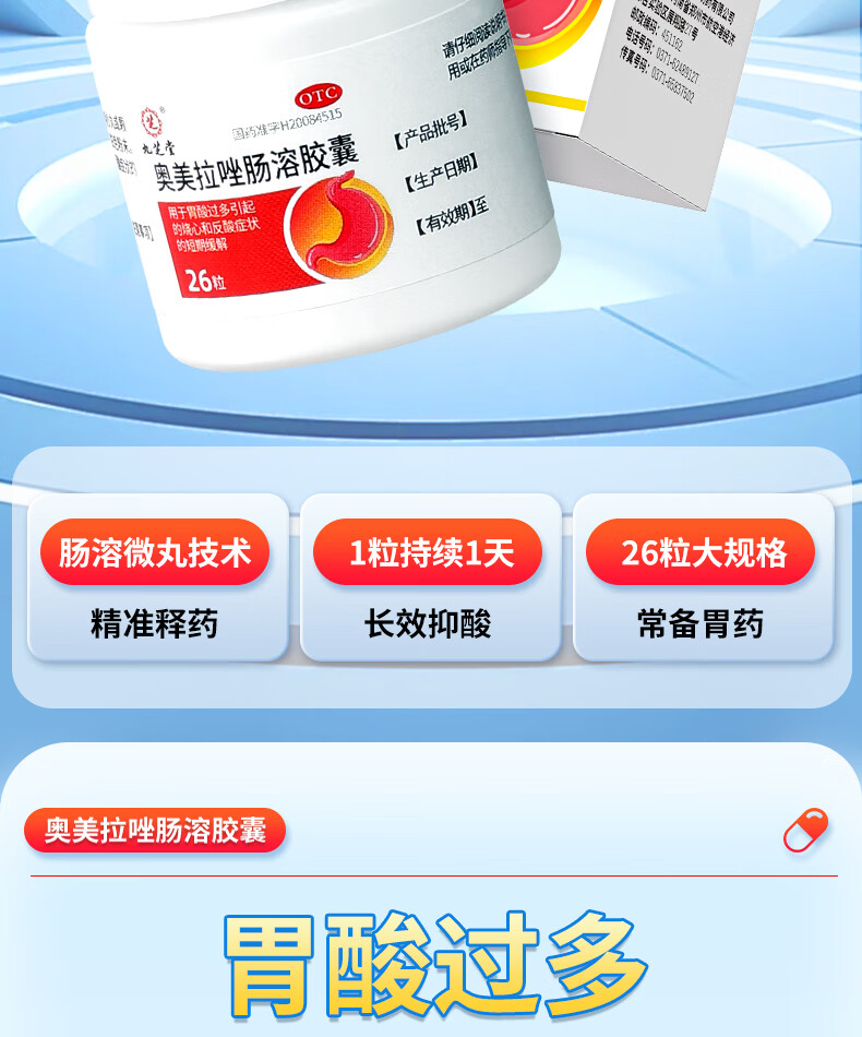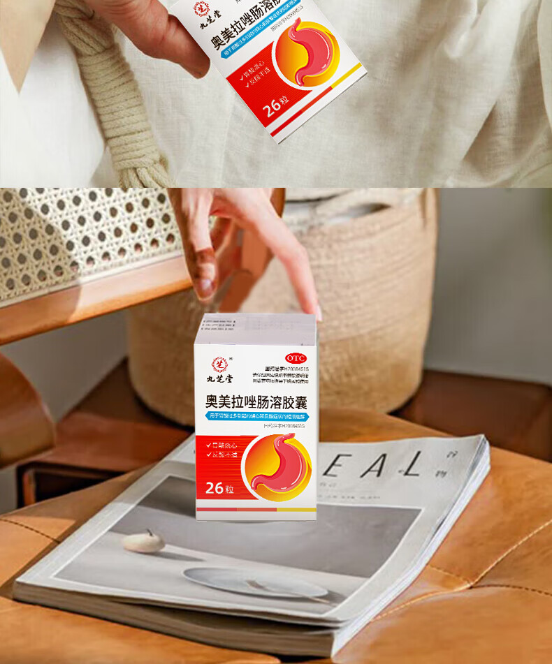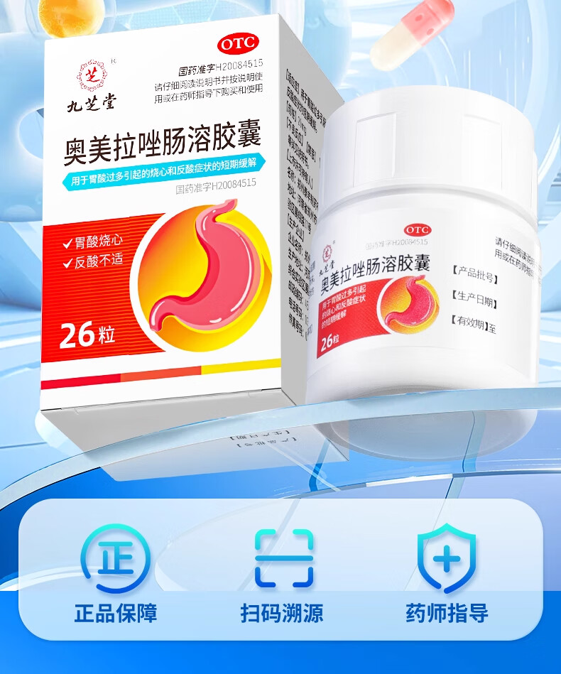 [九芝堂]奥美拉唑肠溶胶囊 20mg*26粒 3盒装 26粒胃胀气反酸烧心胃酸多肠胃炎消化用药胃痛疼药幽门螺旋杆菌四联药14天 实惠装-护胃常备