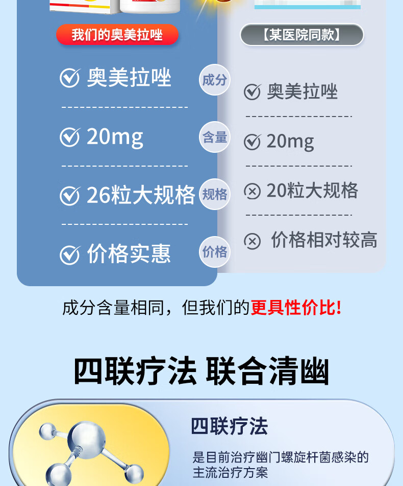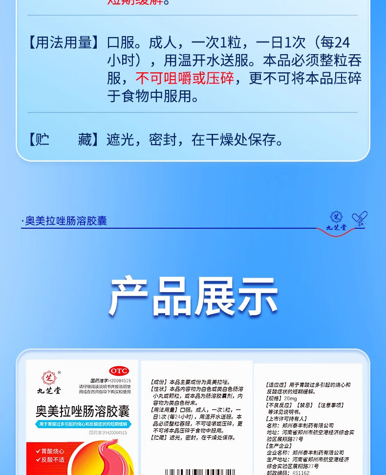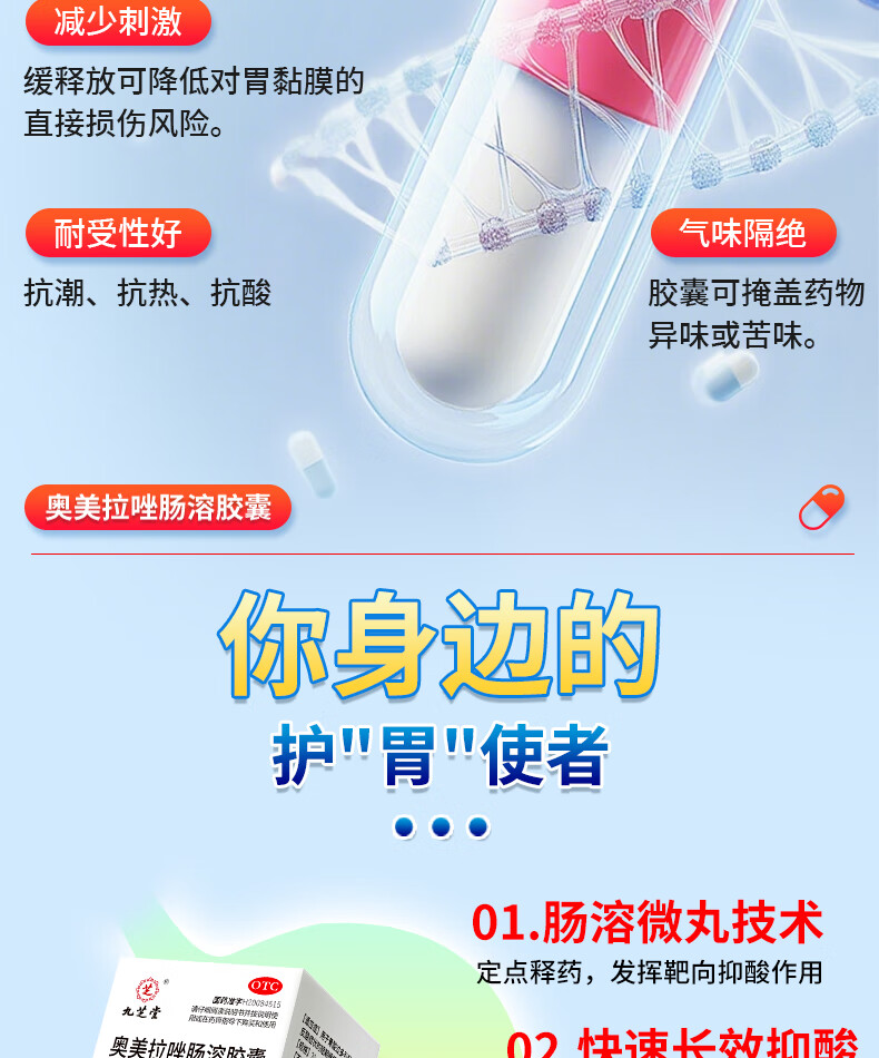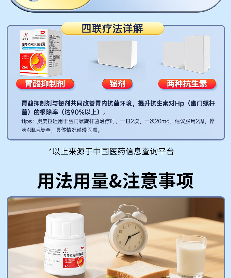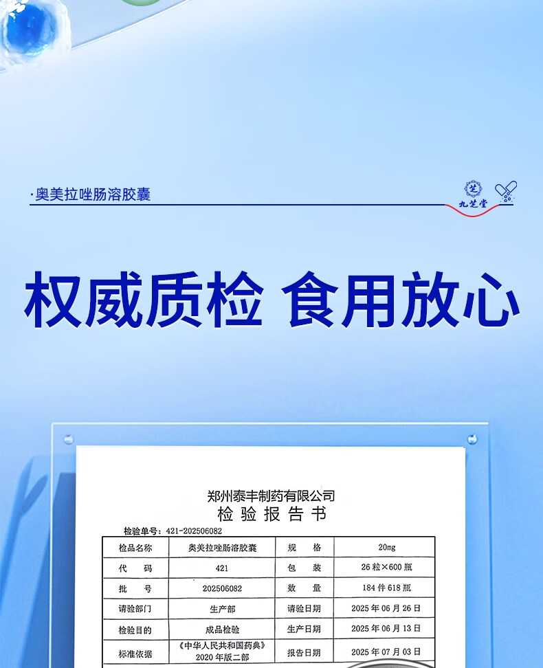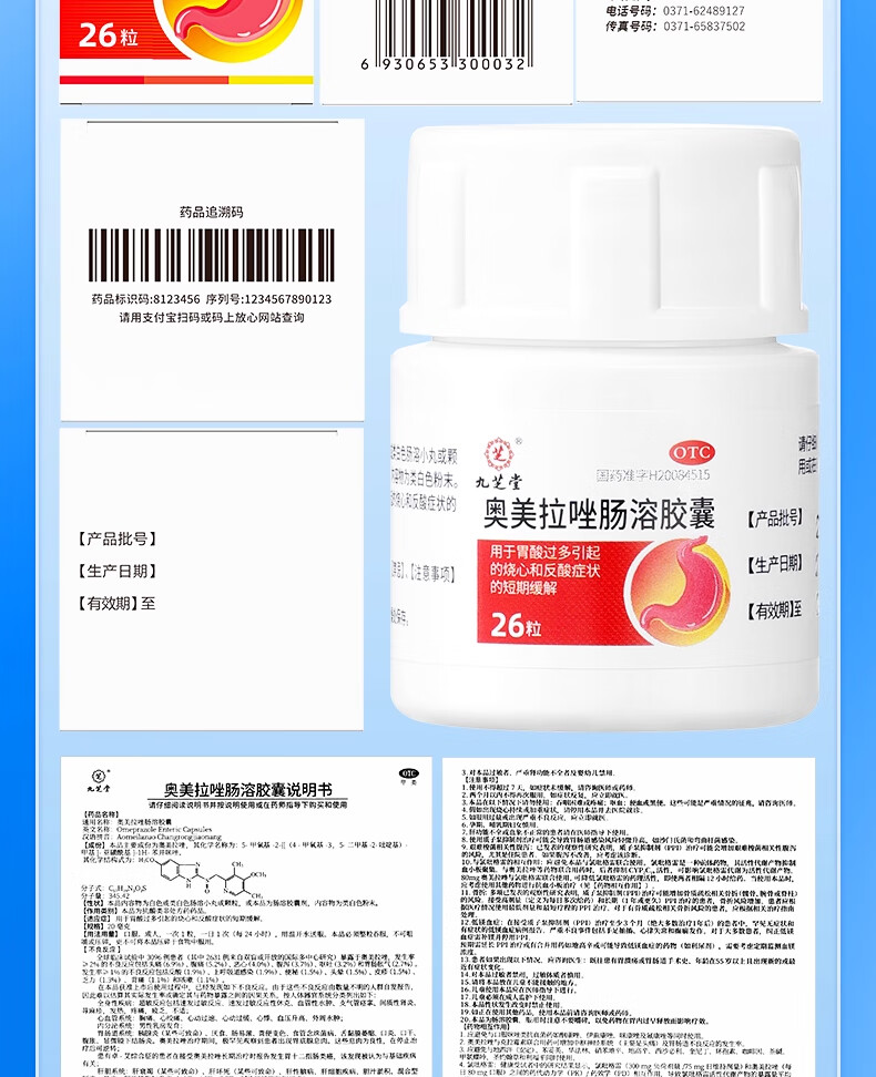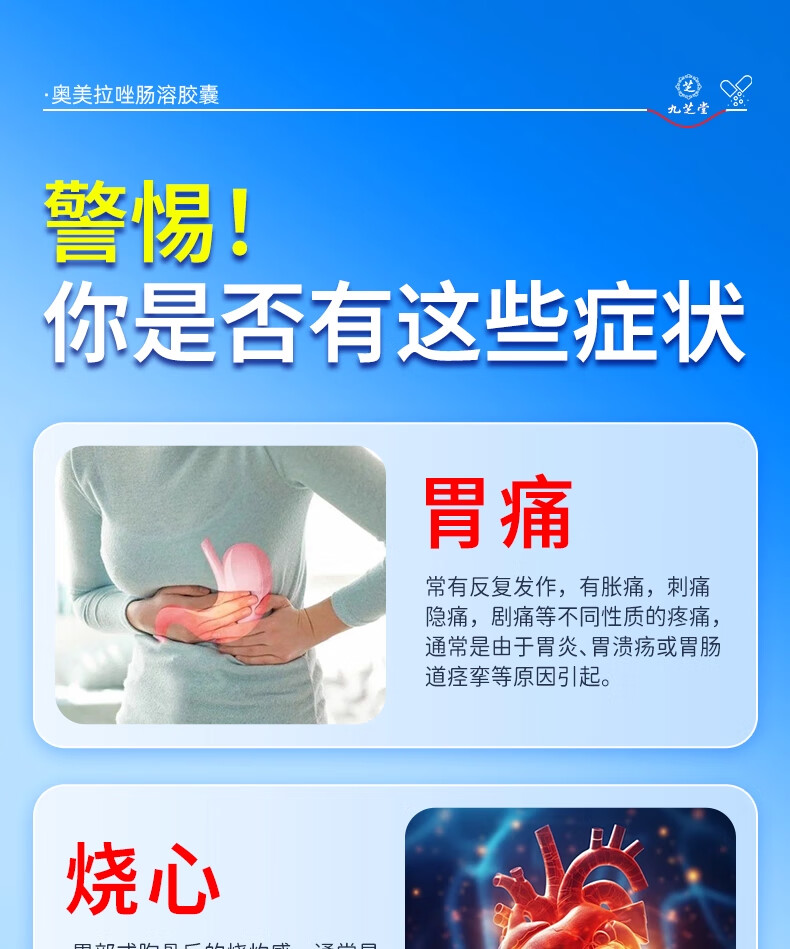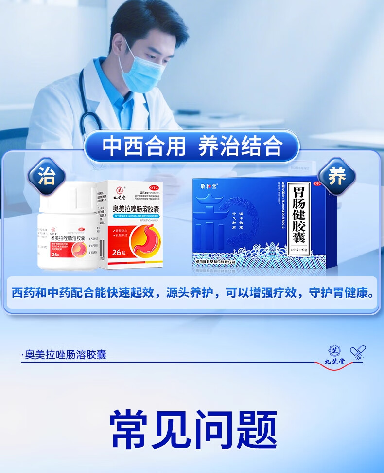[九芝堂]奥美拉唑肠溶胶囊 20mg*26粒 3盒装 26粒胃胀气反酸烧心胃酸多肠胃炎消化用药胃痛疼药幽门螺旋杆菌四联药14天 实惠装-护胃常备