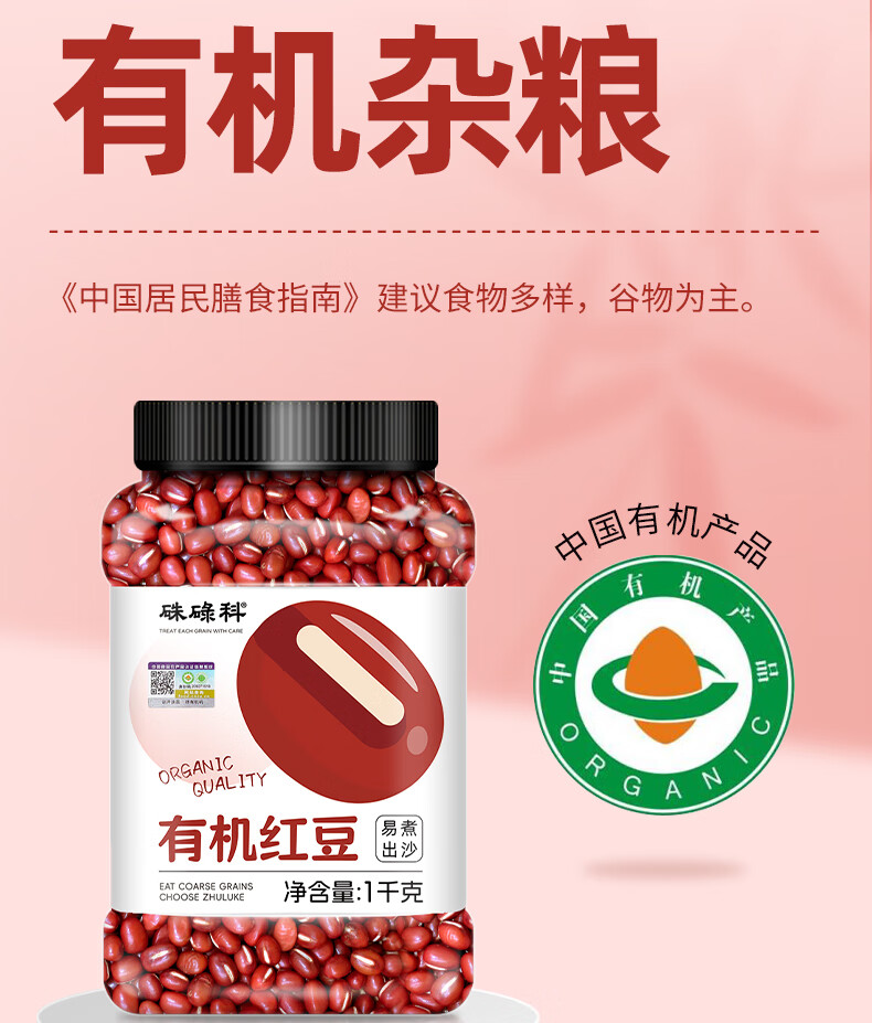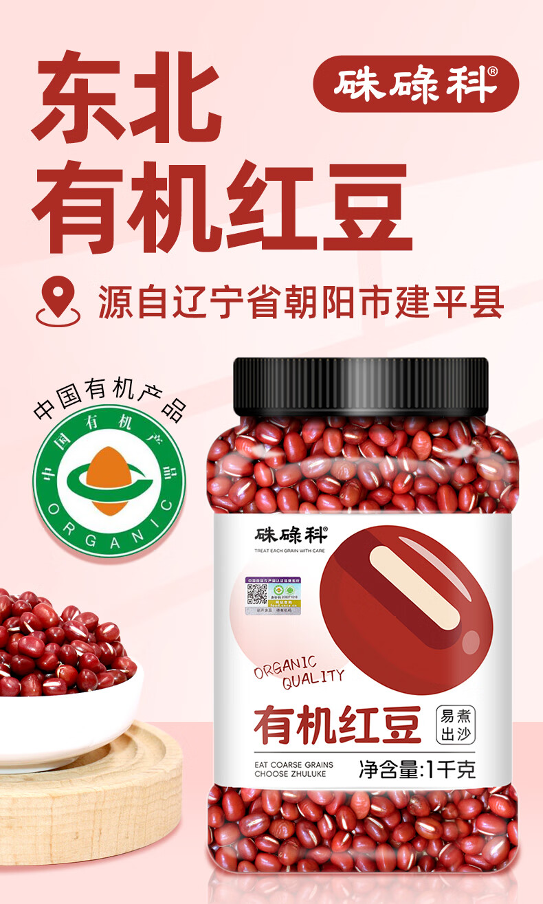 硃碌科东北有机红豆2斤罐装红小豆易出沙红豆粥豆沙豆馅原料可搭配薏米 有机红豆1千克(2斤)
