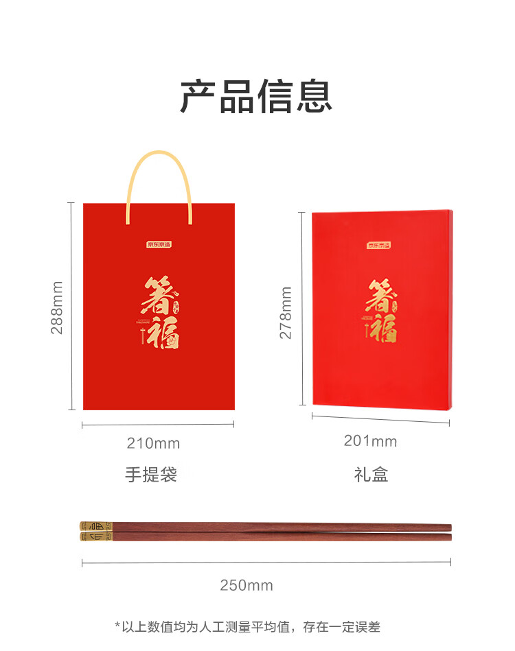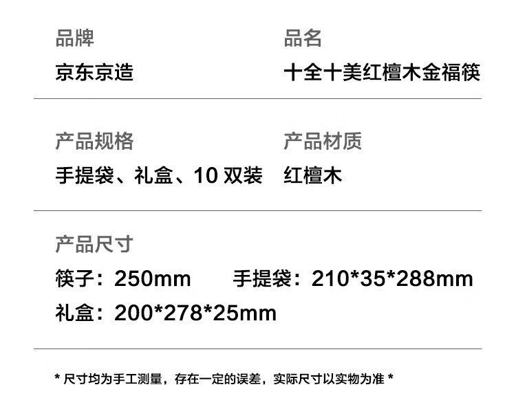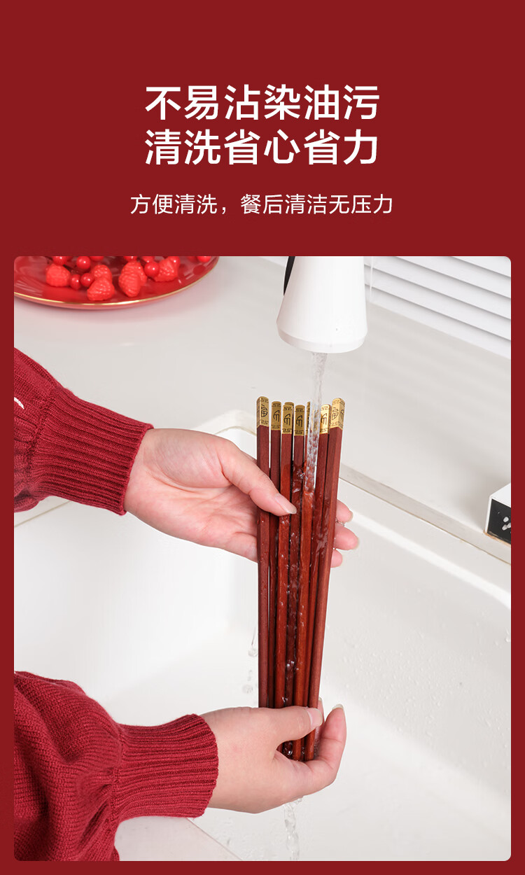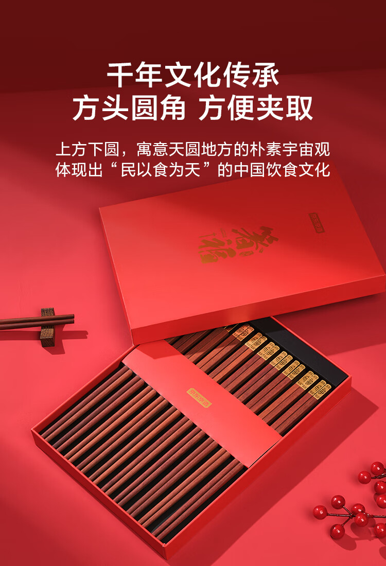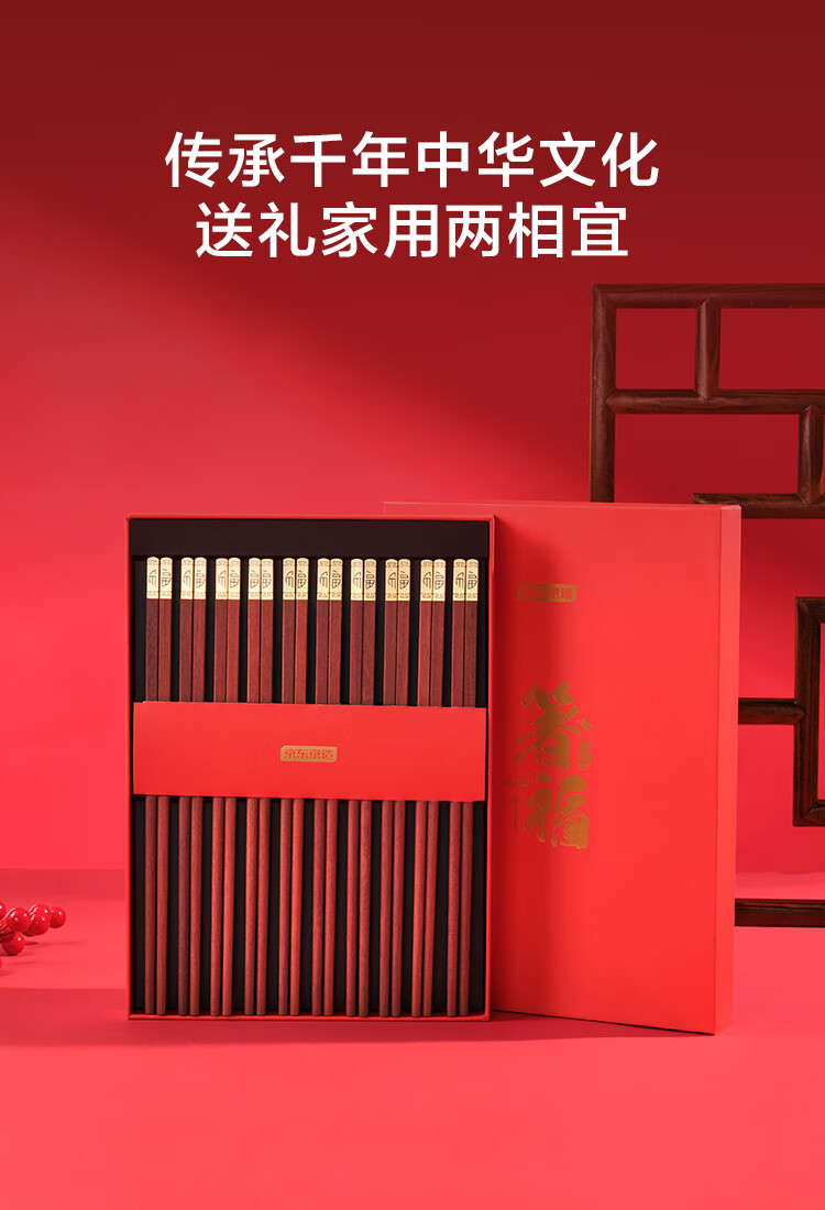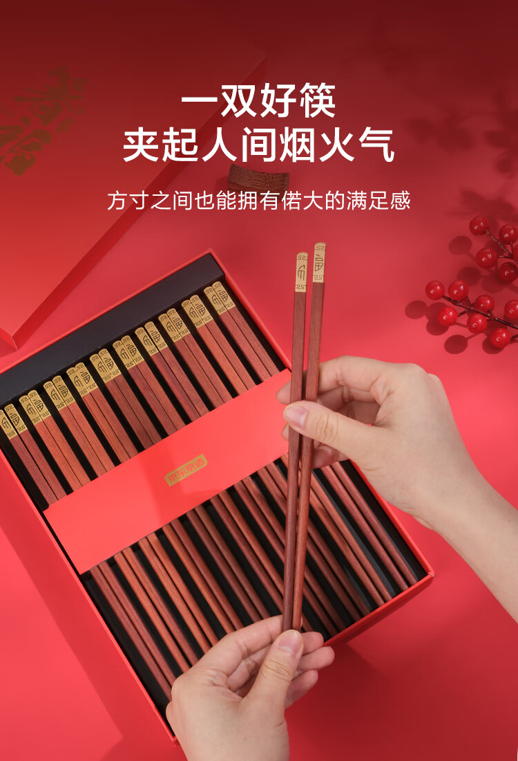 京东京造 筷子 家用餐具无漆无蜡红檀木【金福筷头】10双 礼盒装
