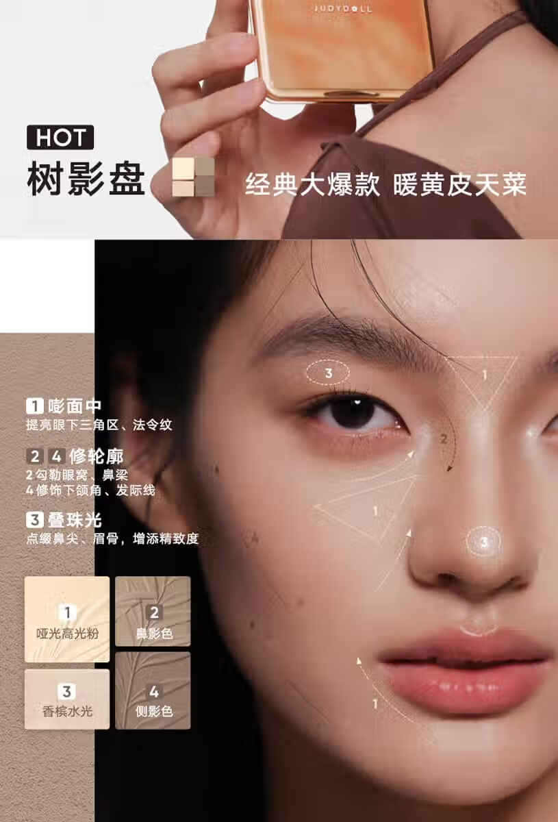 橘朵橘朵高光修容一体盘综合盘哑光提亮阴影鼻影高光02树影盘新年礼物