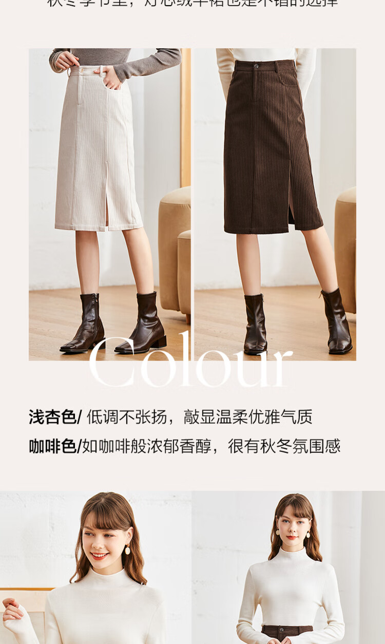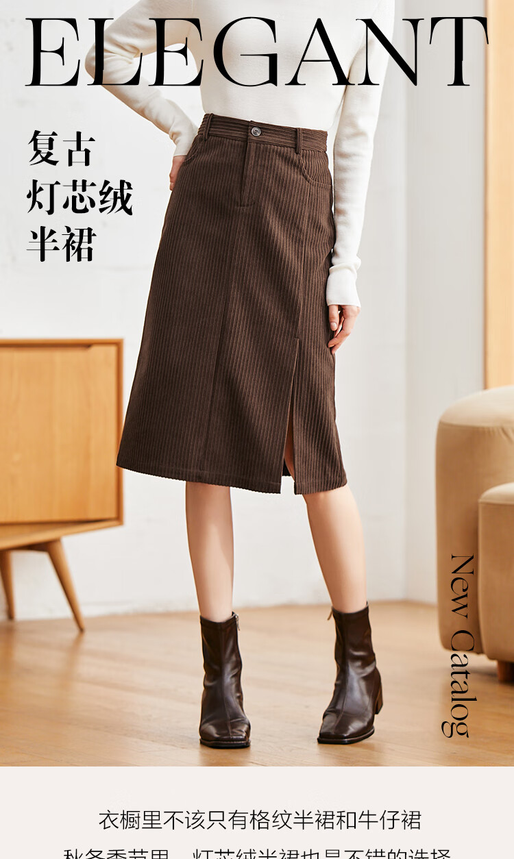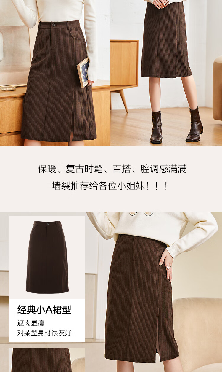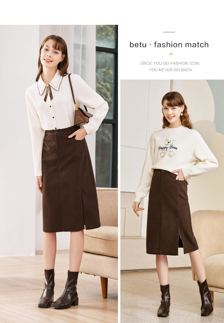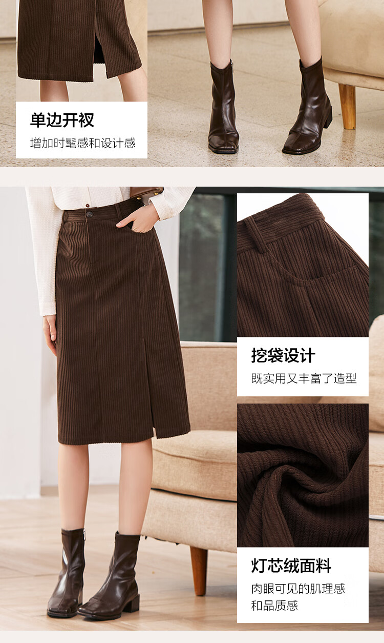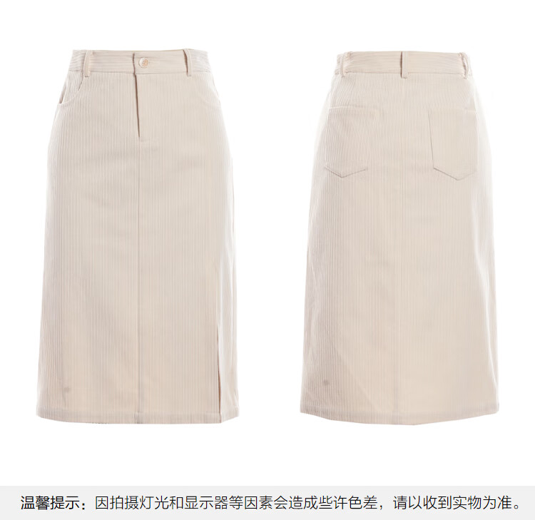 betu百图女装2022秋冬新款半身裙灯芯绒半身裙秋冬女高腰显瘦百搭开叉a字裙半身裙女2210T55 浅杏色 S