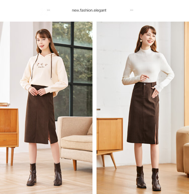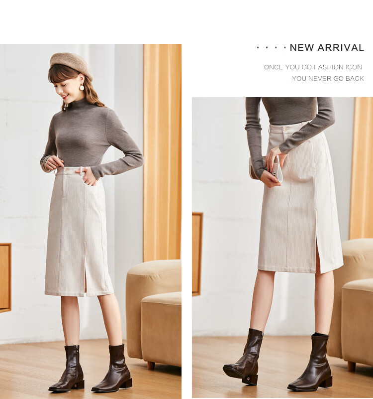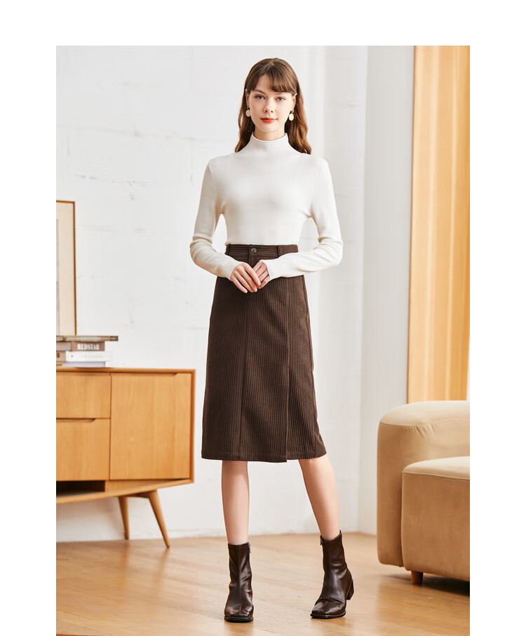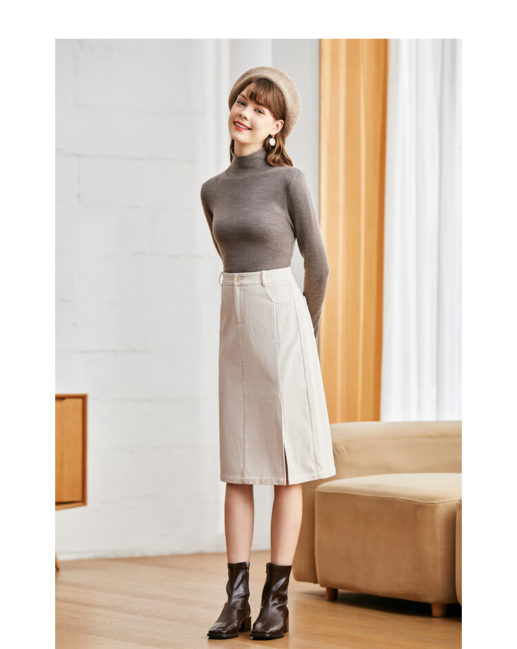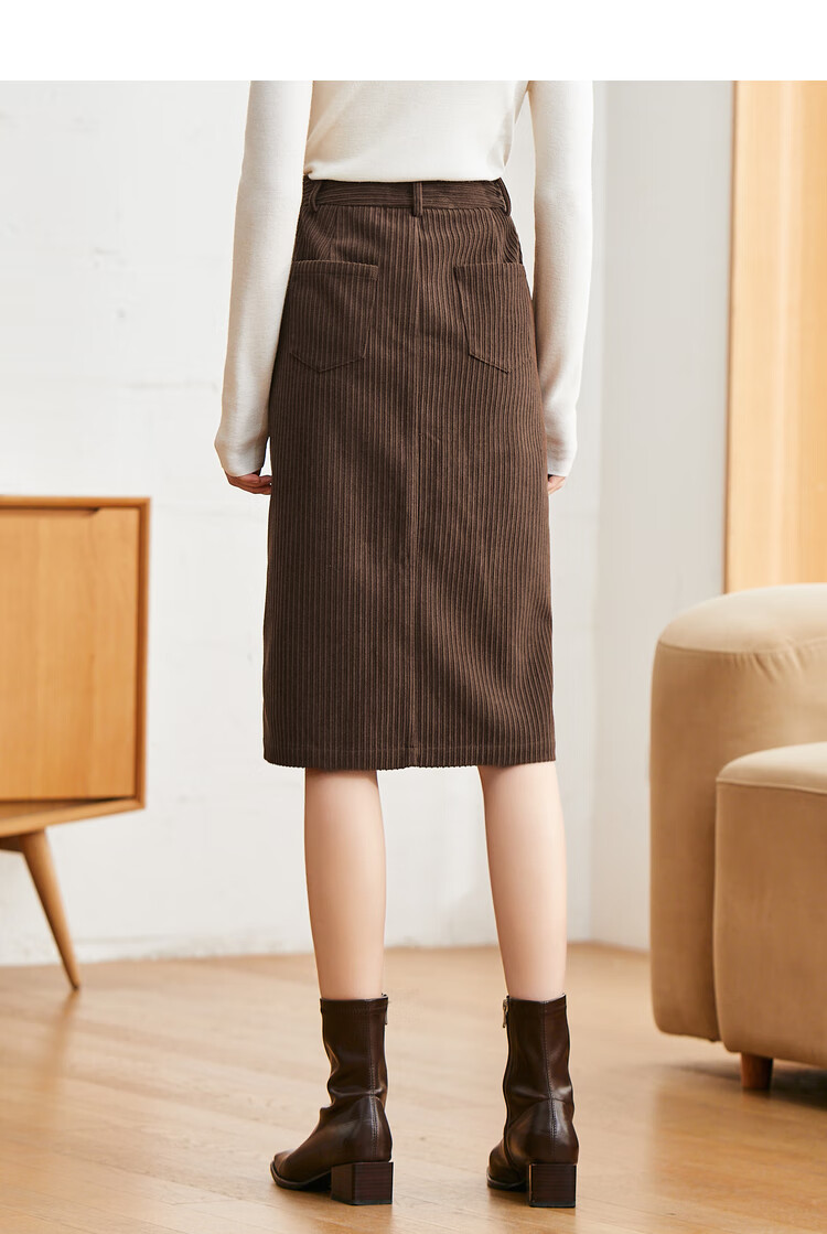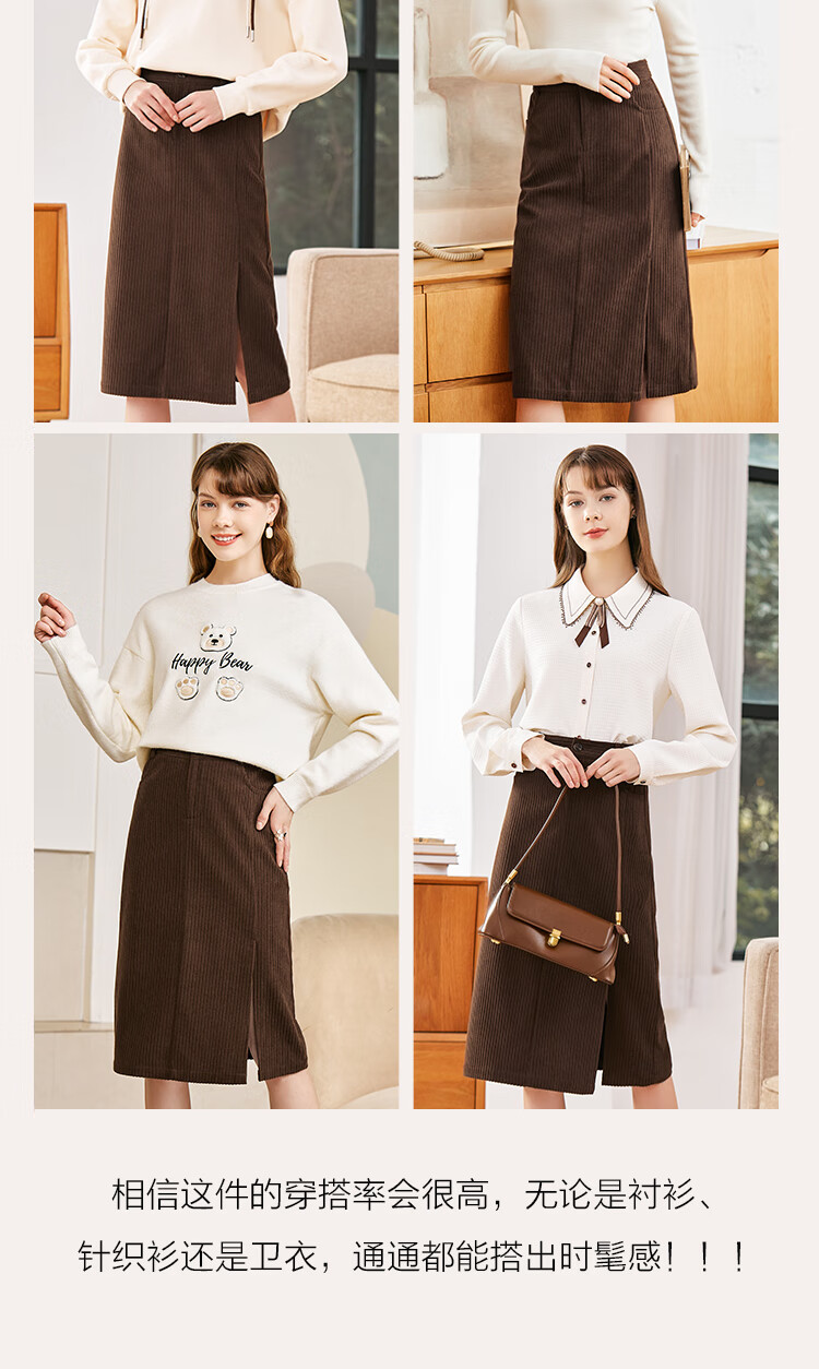 betu百图女装2022秋冬新款半身裙灯芯绒半身裙秋冬女高腰显瘦百搭开叉a字裙半身裙女2210T55 浅杏色 S