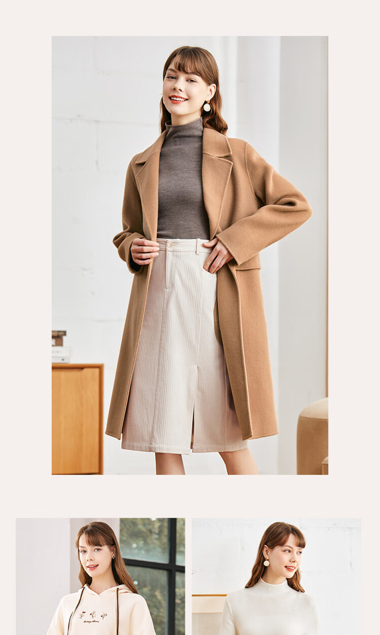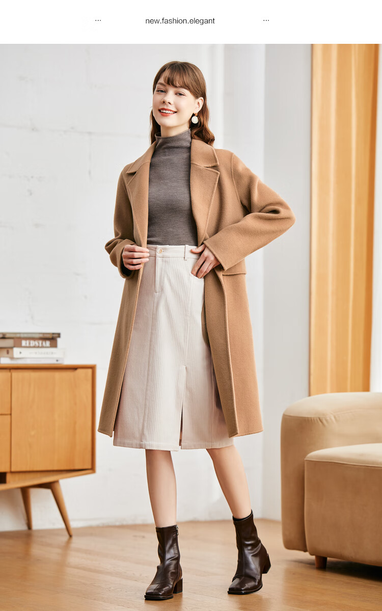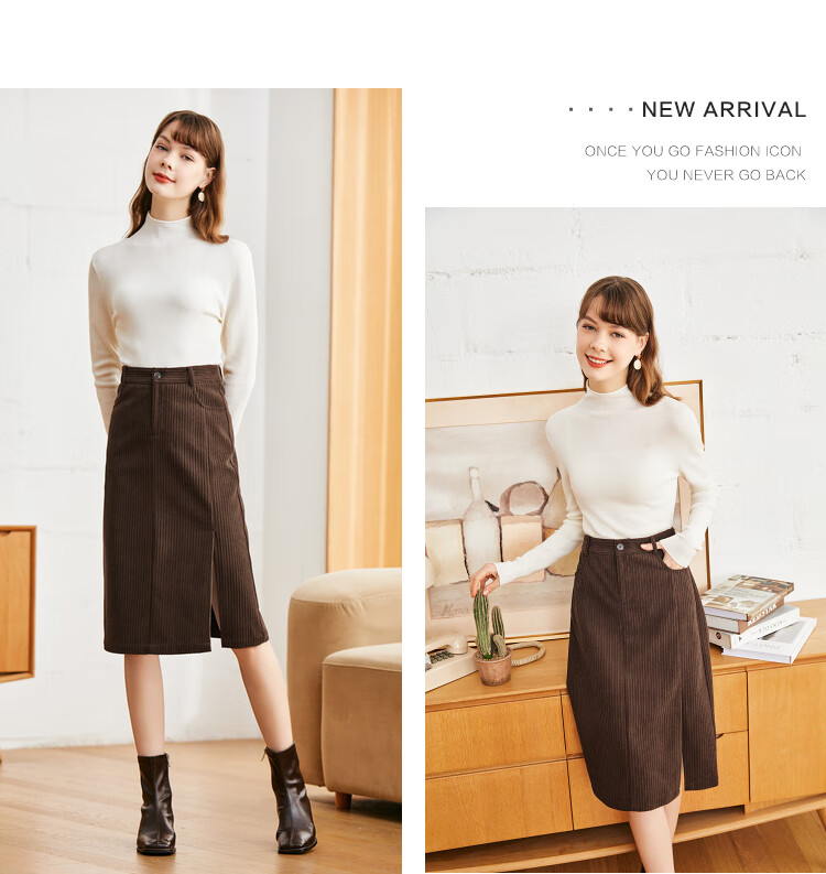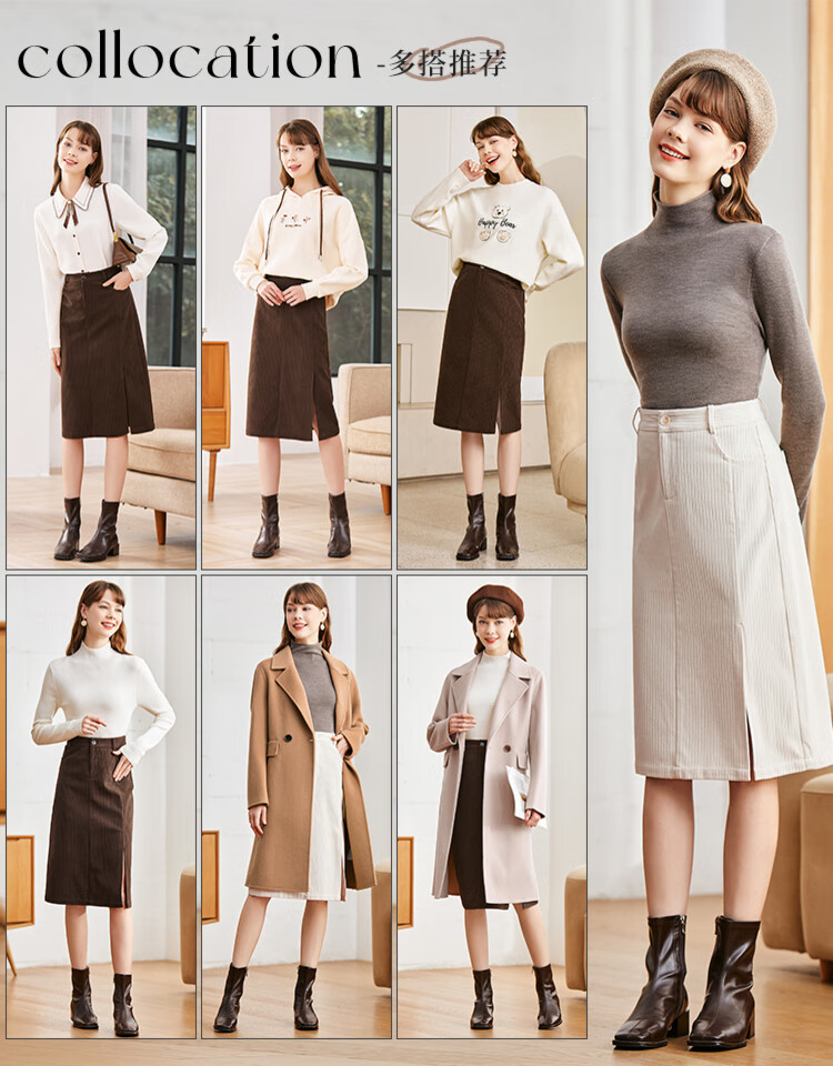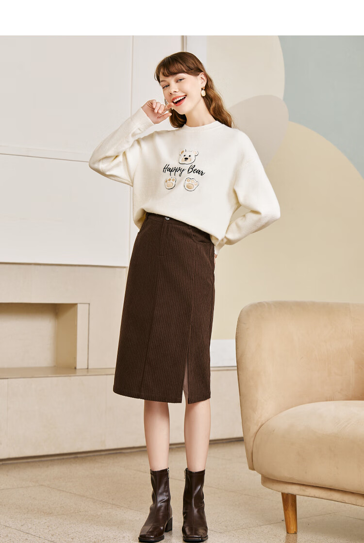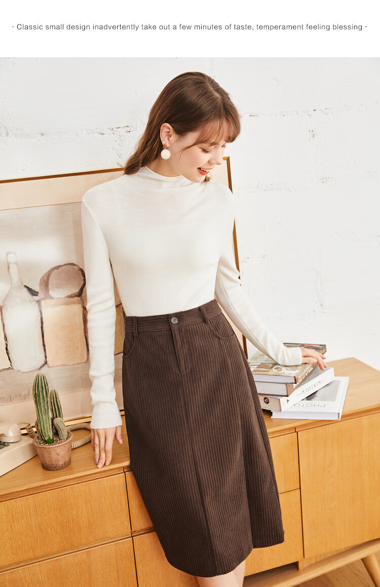 betu百图女装2022秋冬新款半身裙灯芯绒半身裙秋冬女高腰显瘦百搭开叉a字裙半身裙女2210T55 浅杏色 S