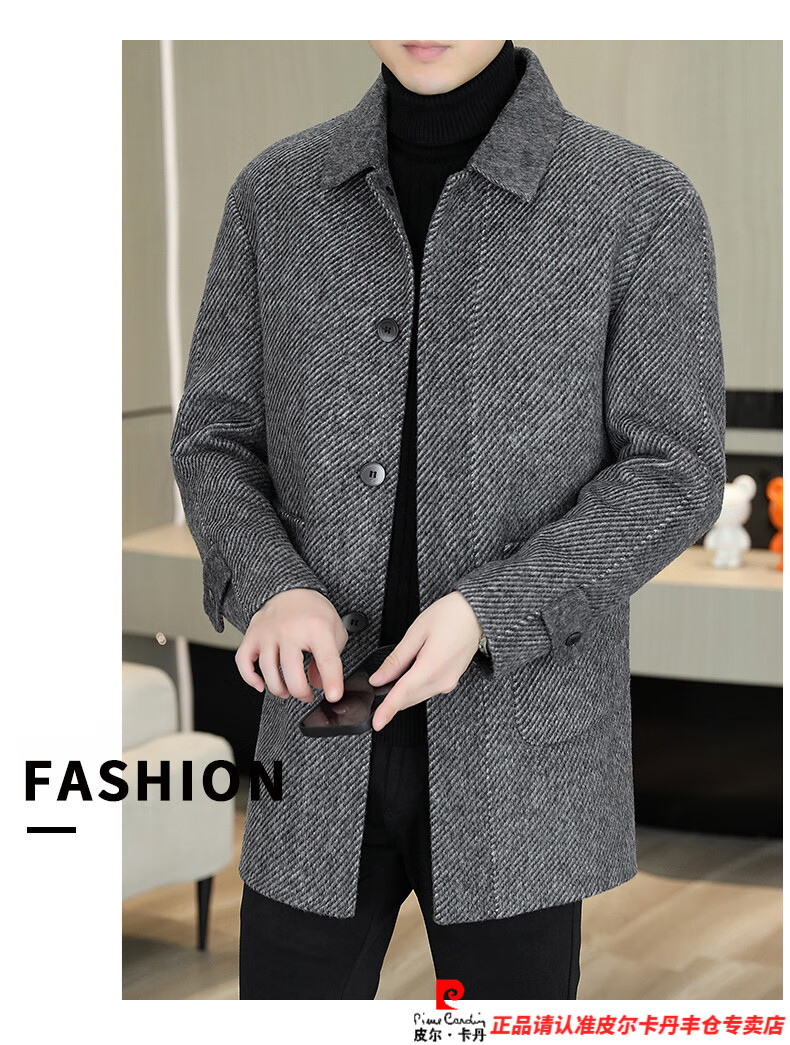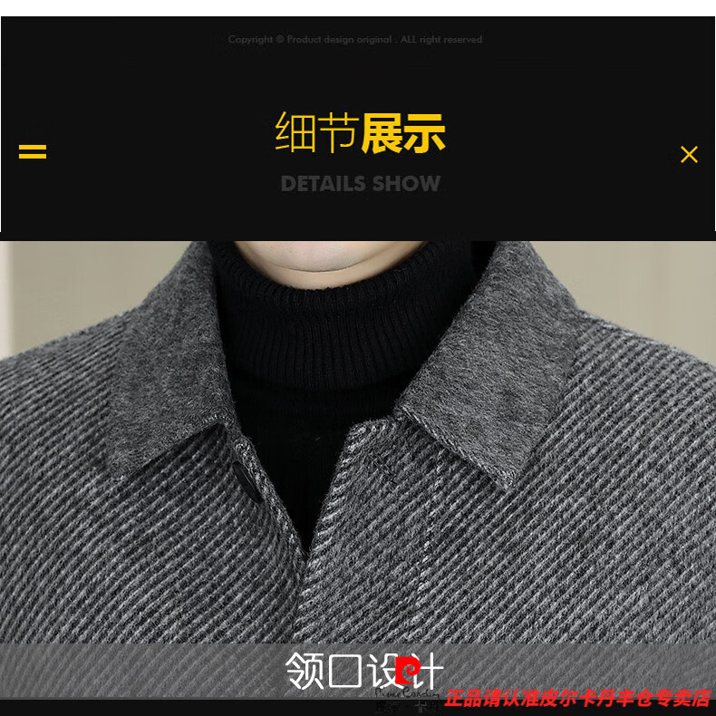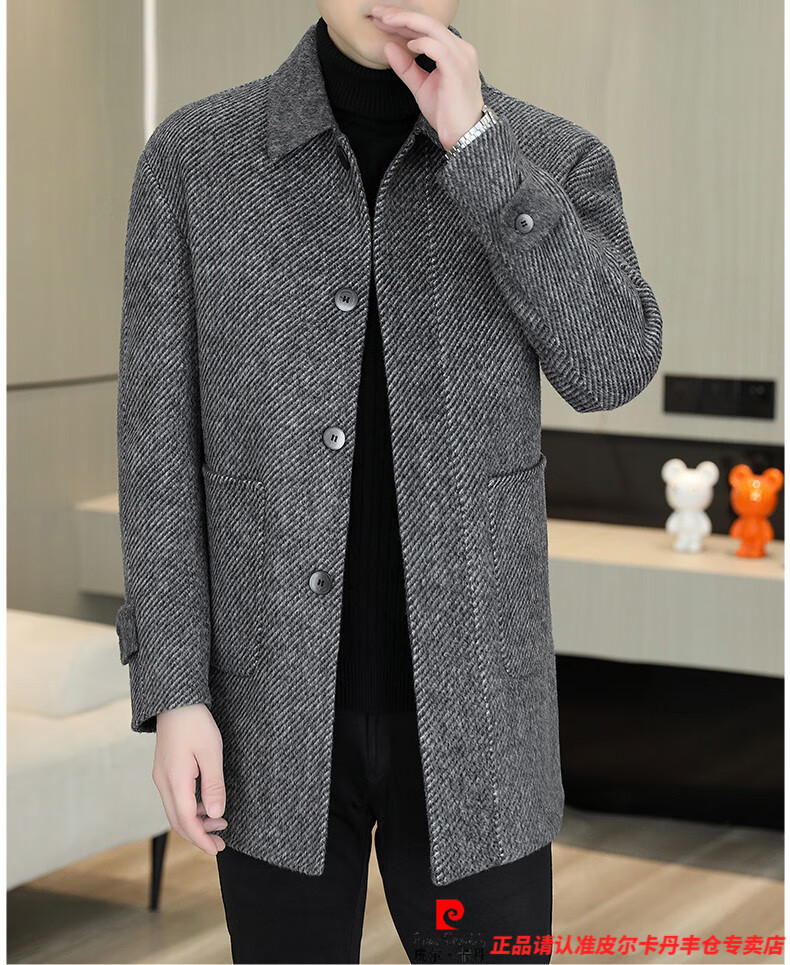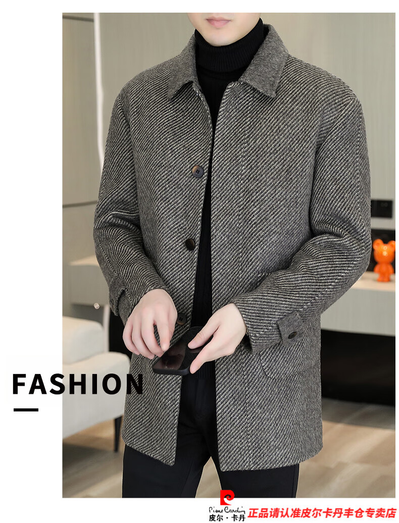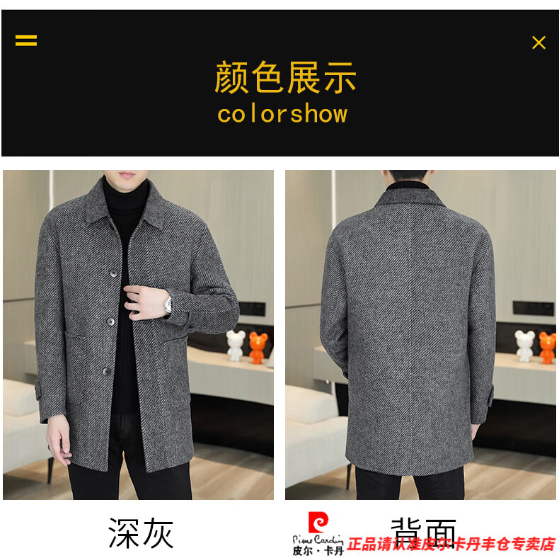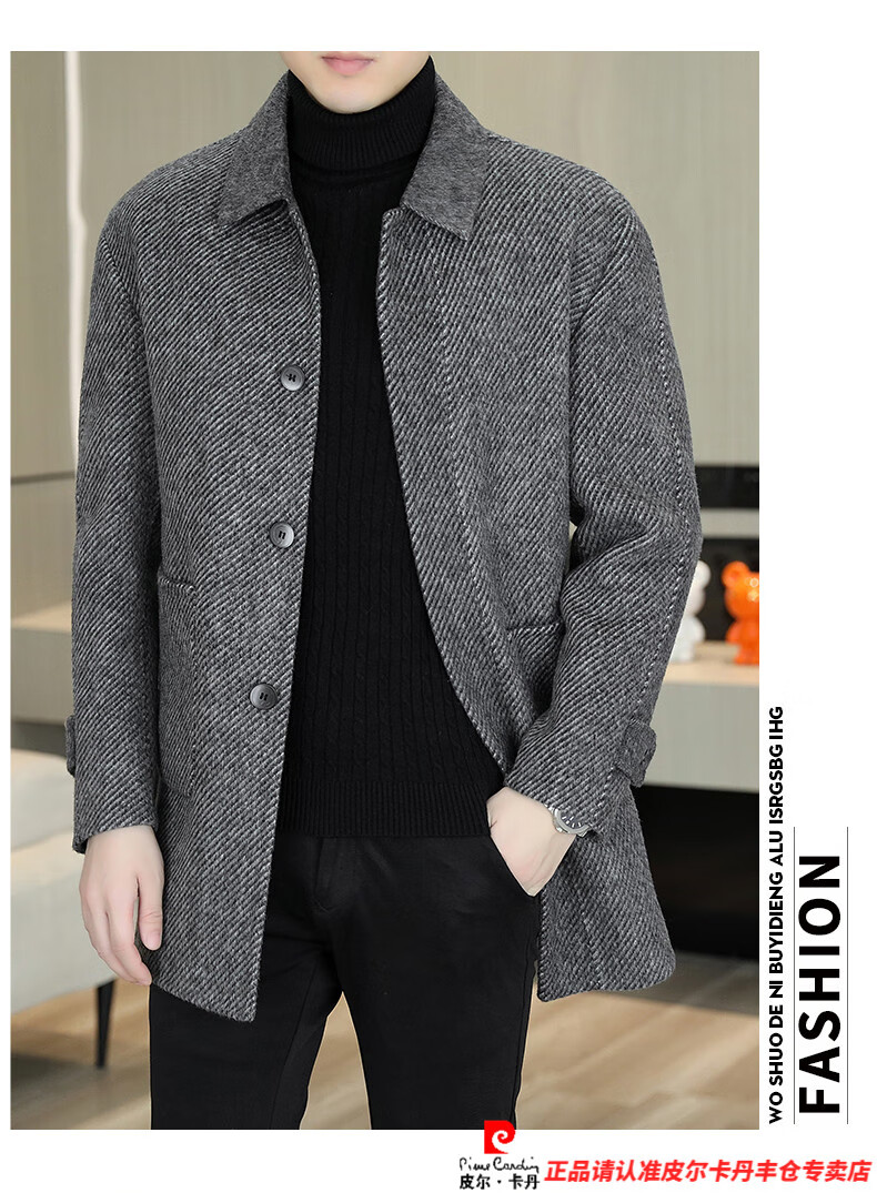 皮尔卡丹(pierre cardin)高端羊毛大衣男翻领脱卸鹅绒内胆复古双面羊绒外套中年爸爸冬装 浅灰色【可脱卸鹅绒内胆】 M 170