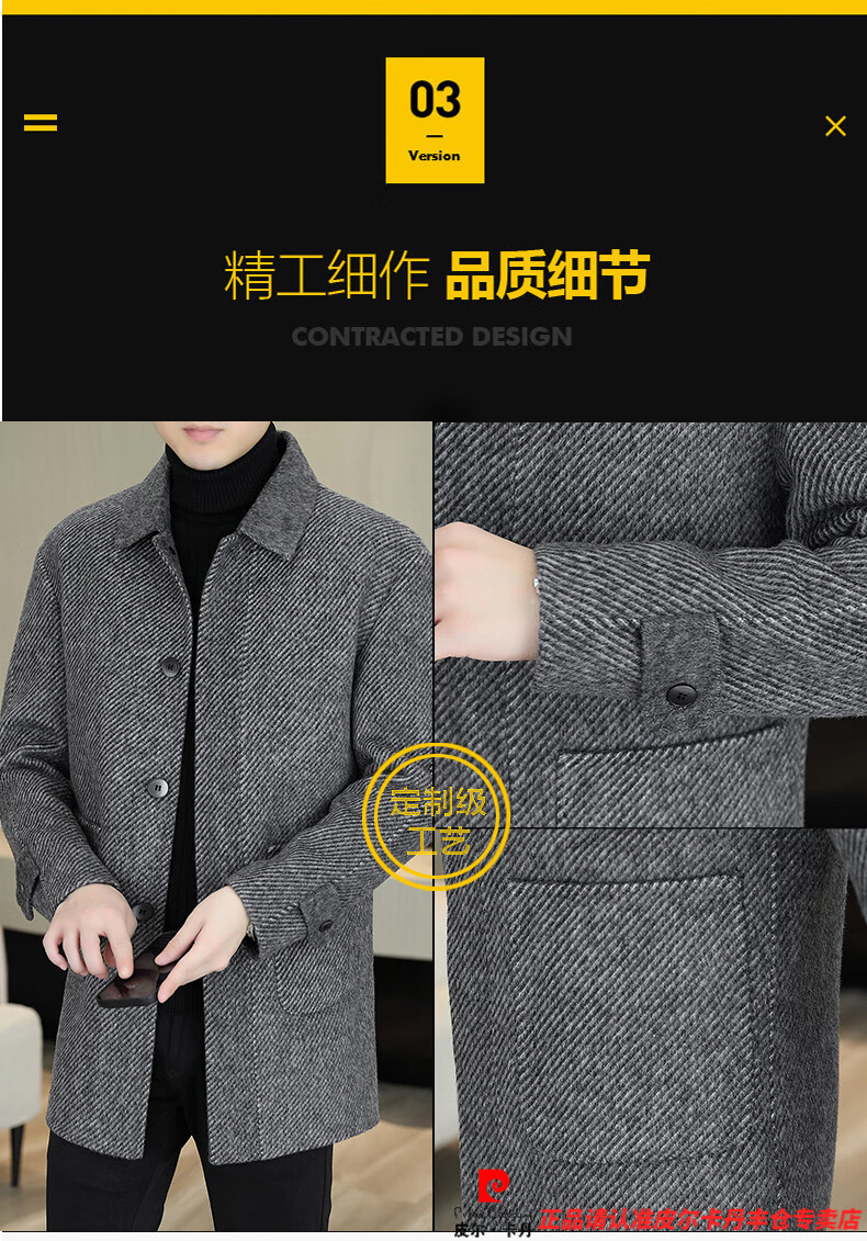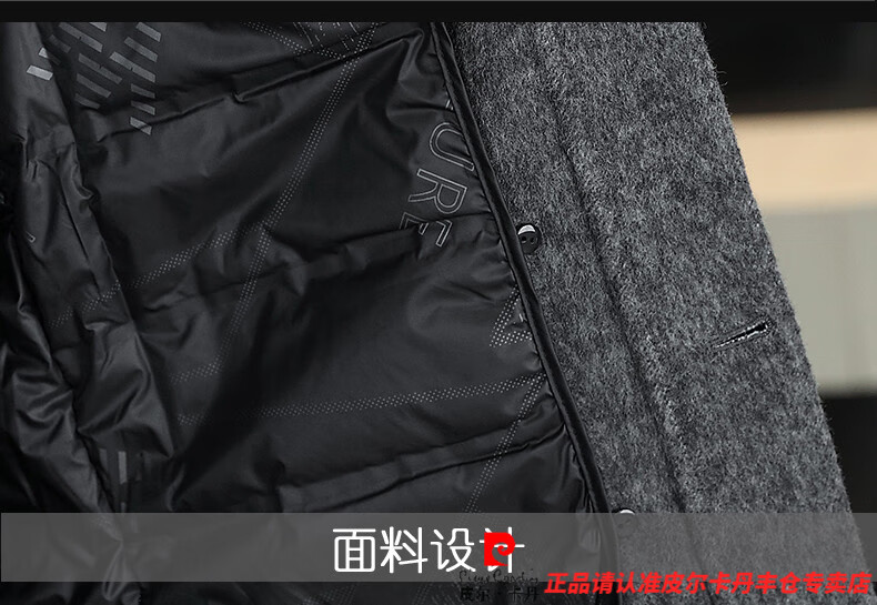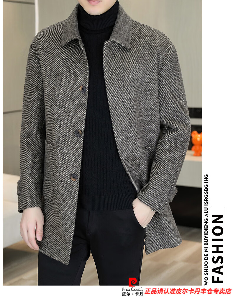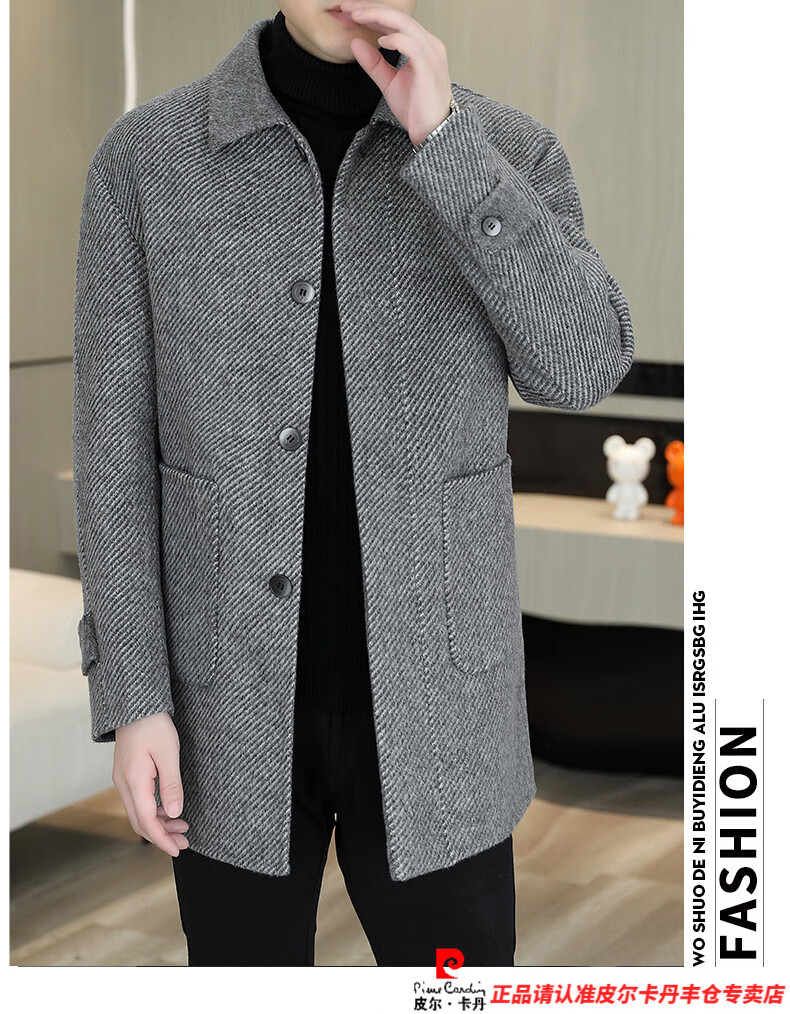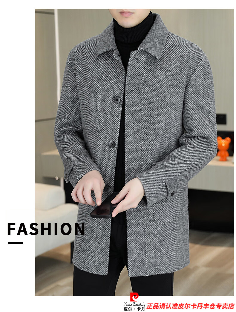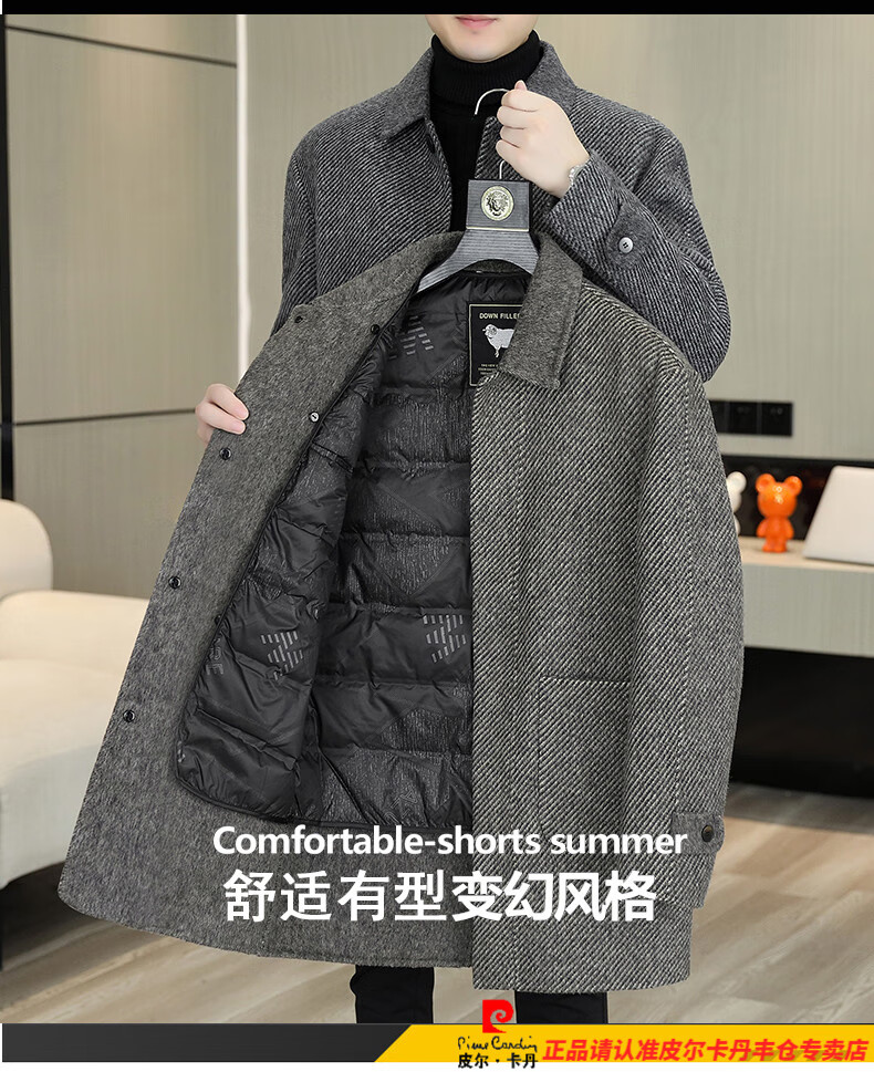 皮尔卡丹(pierre cardin)高端羊毛大衣男翻领脱卸鹅绒内胆复古双面羊绒外套中年爸爸冬装 浅灰色【可脱卸鹅绒内胆】 M 170