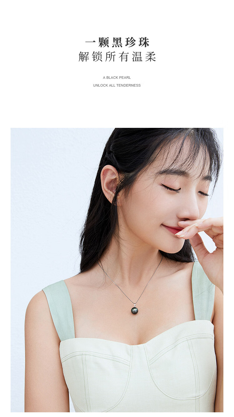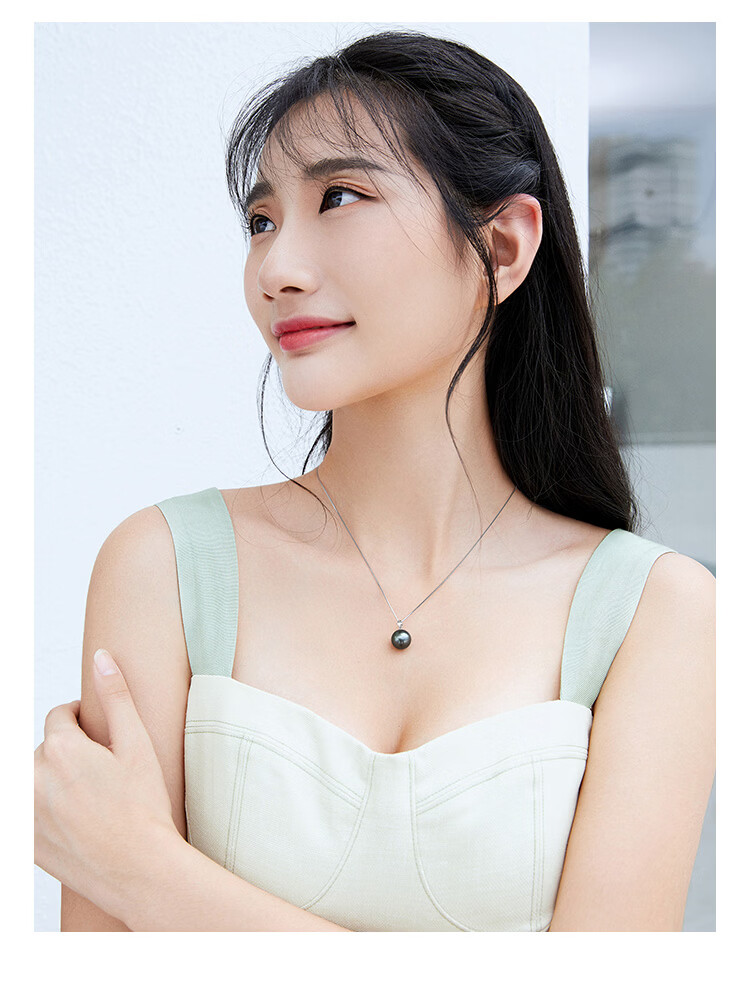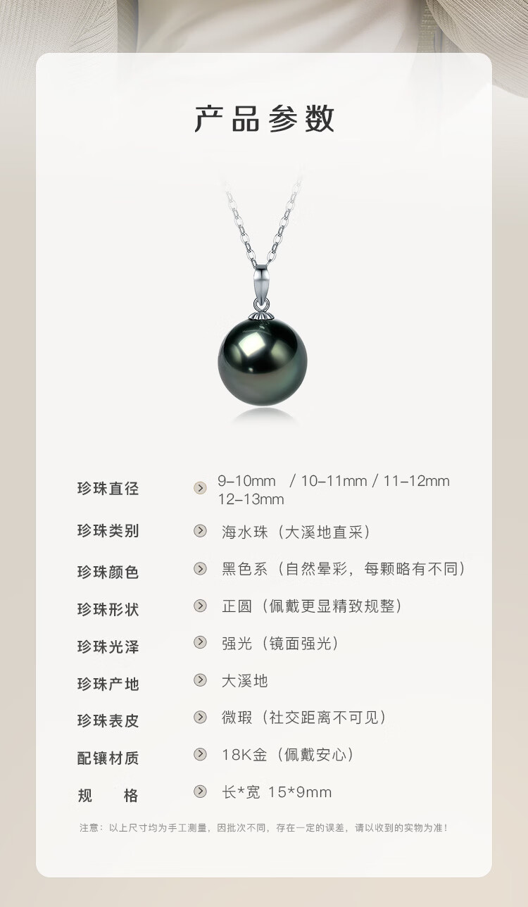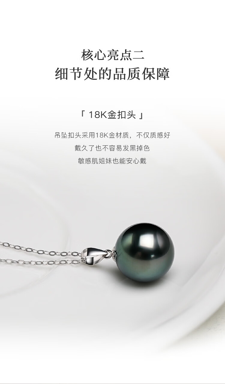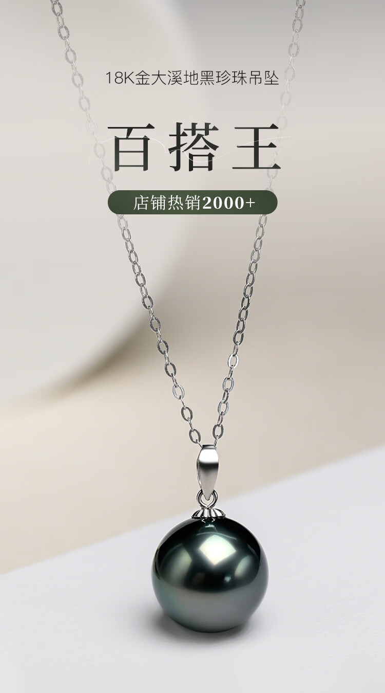 珍珠皇后18K金大溪地黑珍珠吊坠 正圆海水珍珠项链生日礼物送女朋友