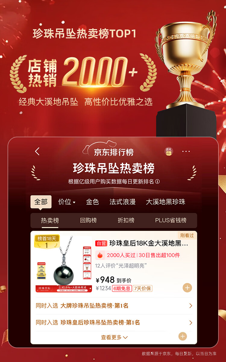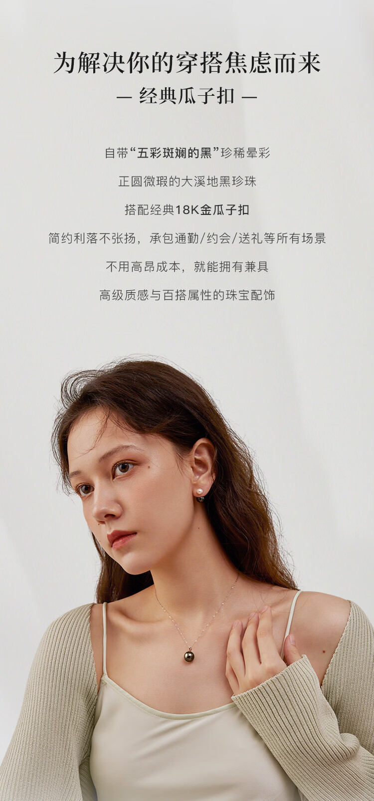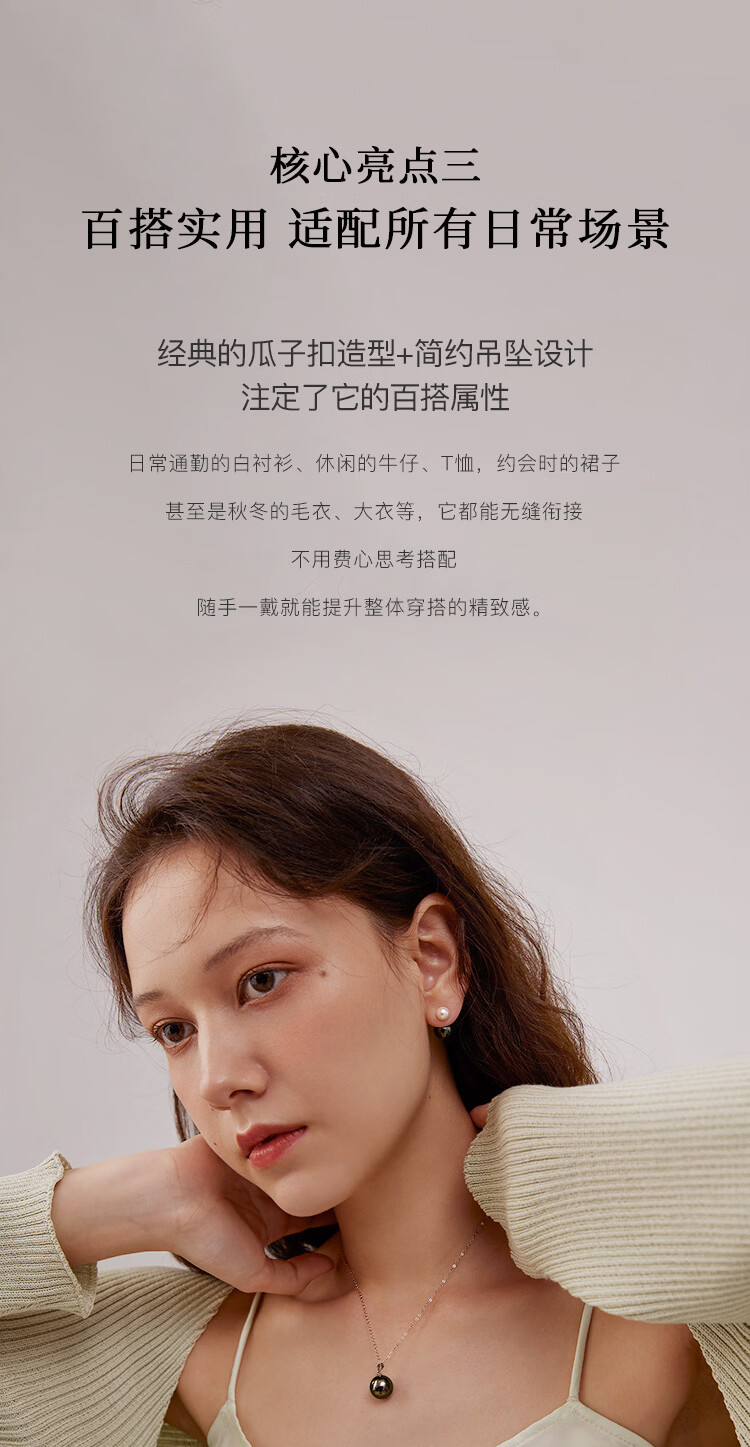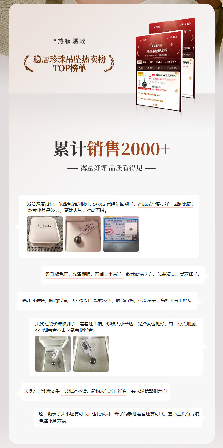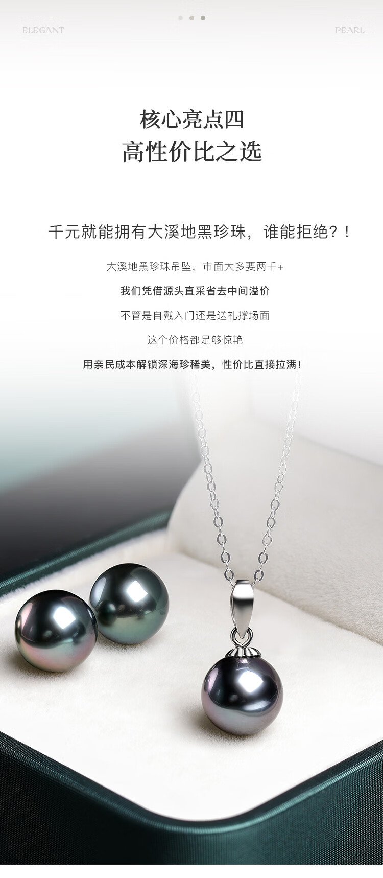 珍珠皇后18K金大溪地黑珍珠吊坠 正圆海水珍珠项链生日礼物送女朋友