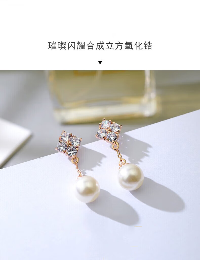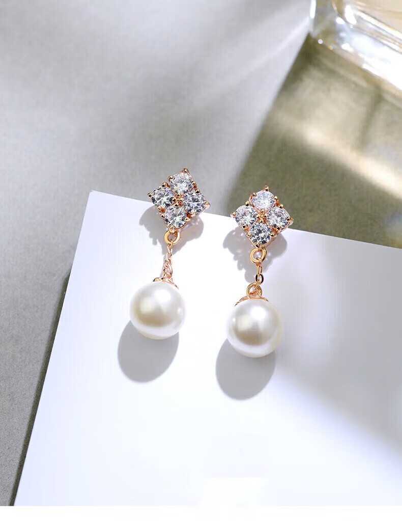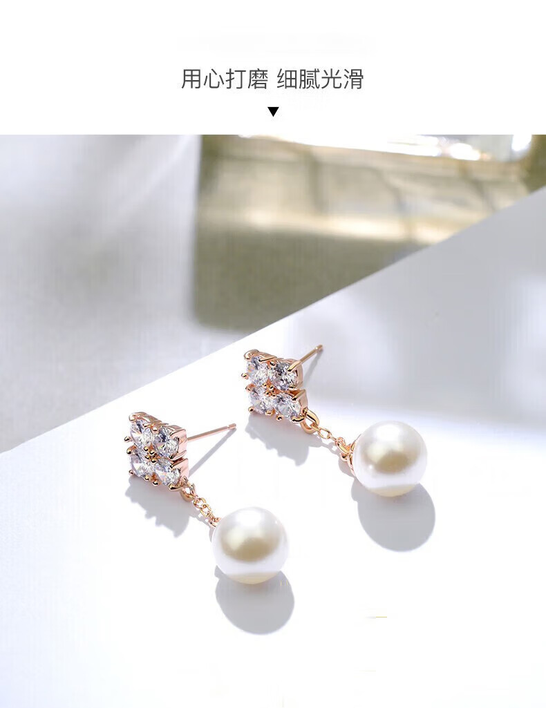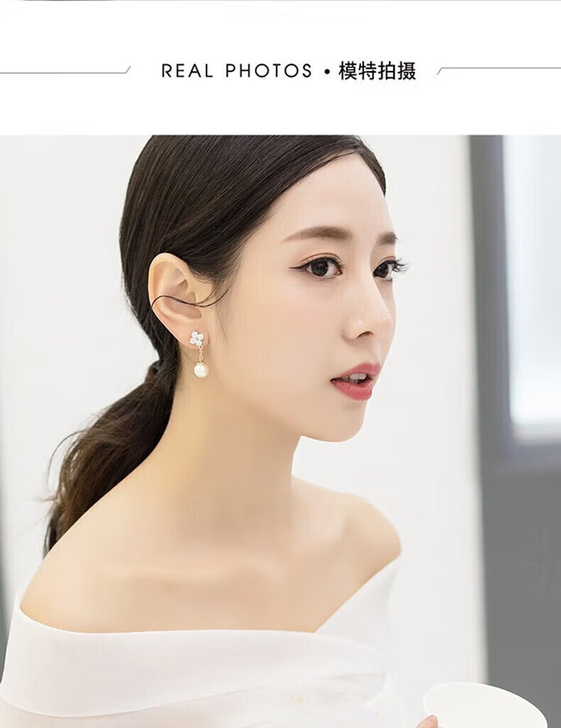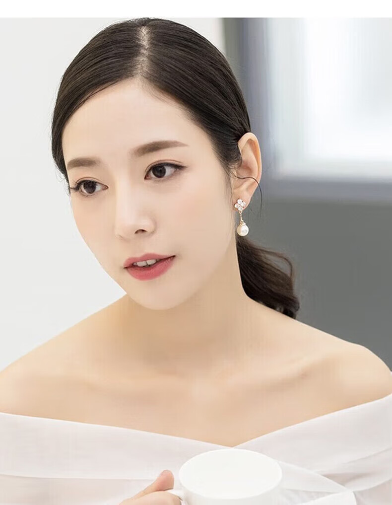 Grace Girl四叶草珍珠耳环女轻奢个性耳坠时尚首饰214情人节新年礼物送女友 四叶草耳环-本地仓