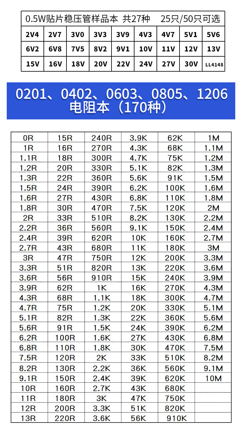 DZQJ 贴片电阻本 电阻包 0402 0603 阻值 电阻器 电阻元件样品册 电子元器件大全 0805电阻本(170种各50个)1%精度