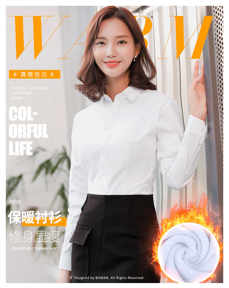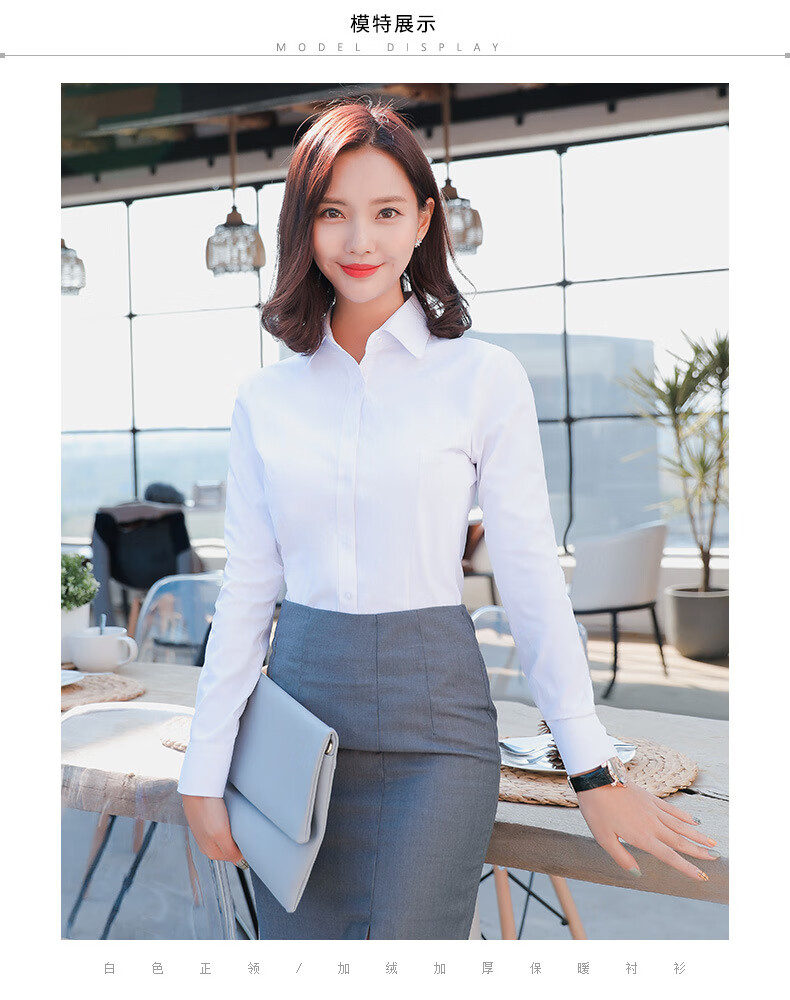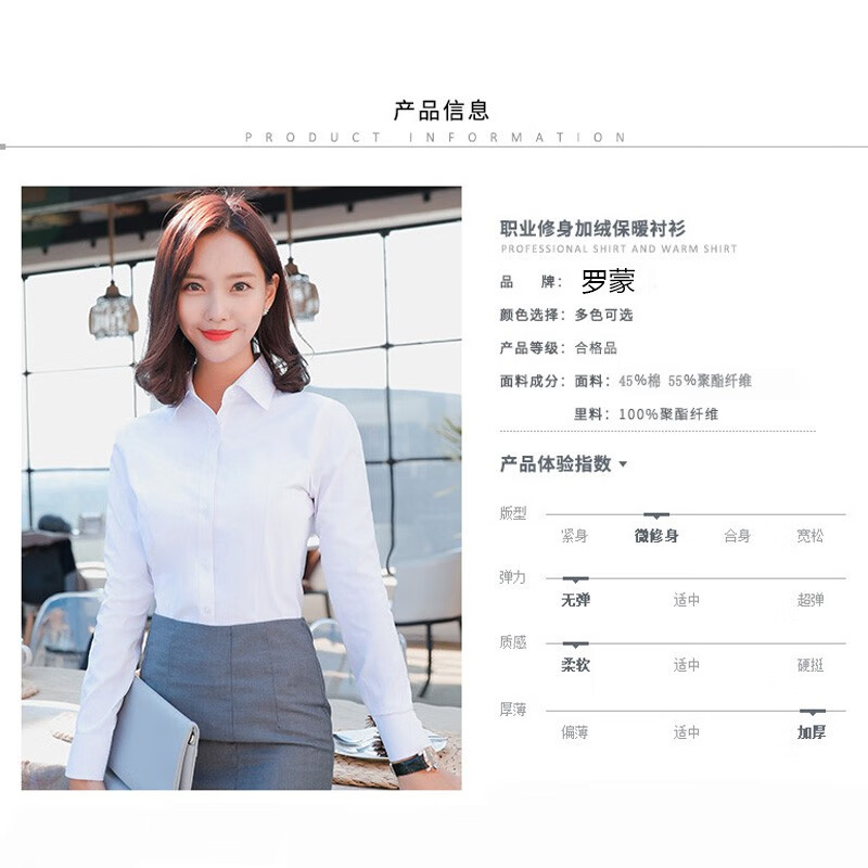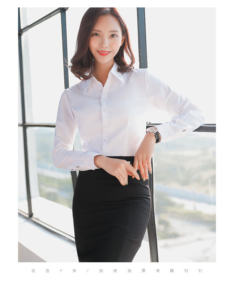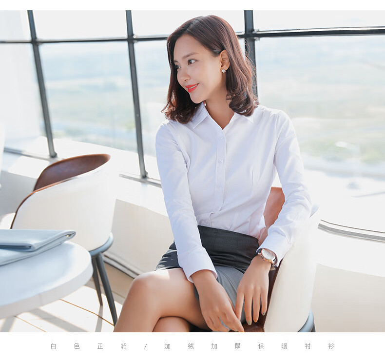 罗蒙加绒衬衫女长袖保暖衣秋冬新款职业装工作服打底修身加厚正装衬衣 白色BN1088-08 36 /M【95-105斤】