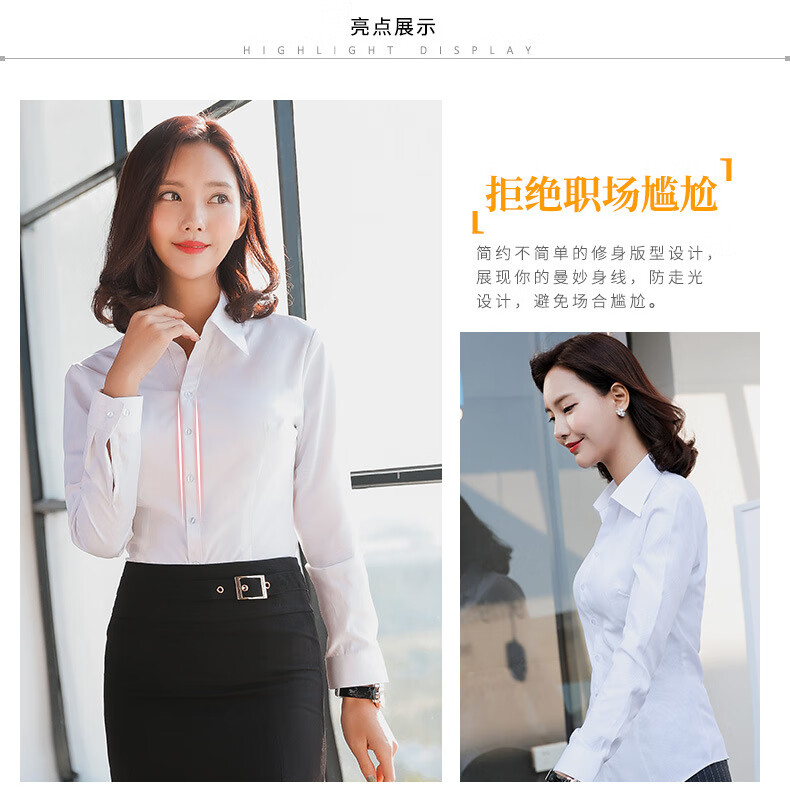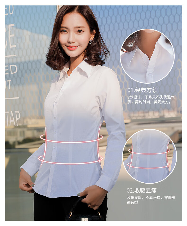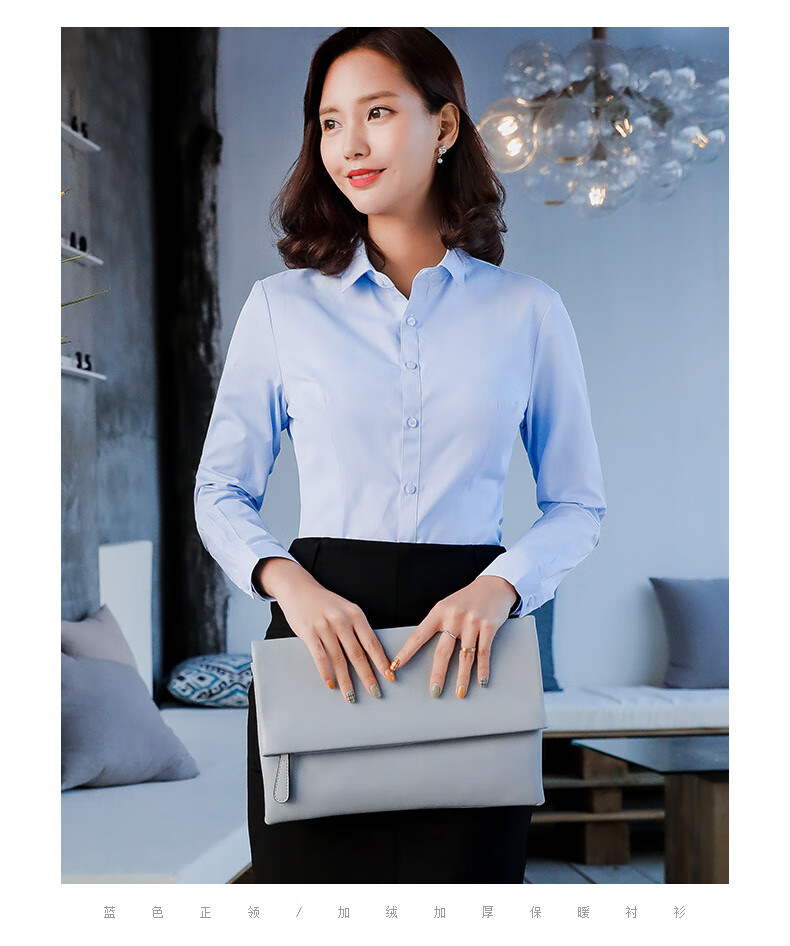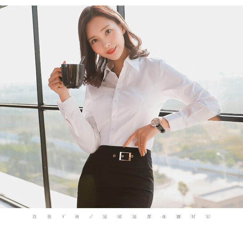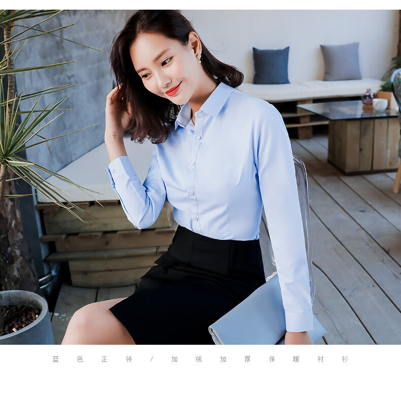 罗蒙加绒衬衫女长袖保暖衣秋冬新款职业装工作服打底修身加厚正装衬衣 白色BN1088-08 36 /M【95-105斤】