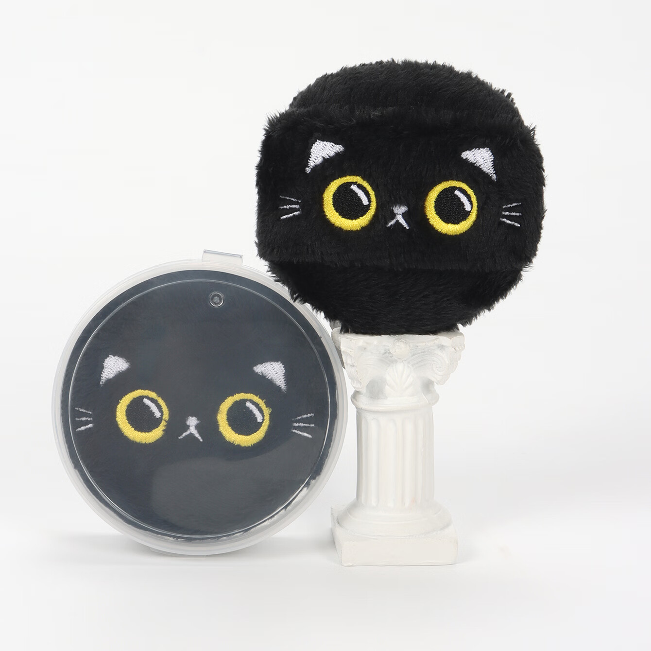 毛绒柔软散粉扑大号干粉扑蜜粉扑植绒化妆面扑卡通定妆粉扑 长绒刺绣黑猫盒装 1个