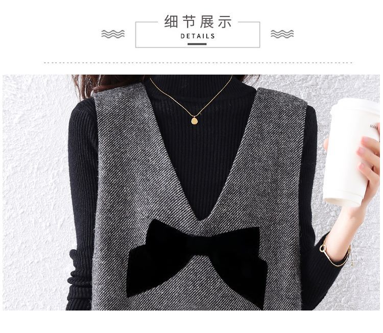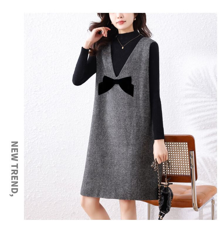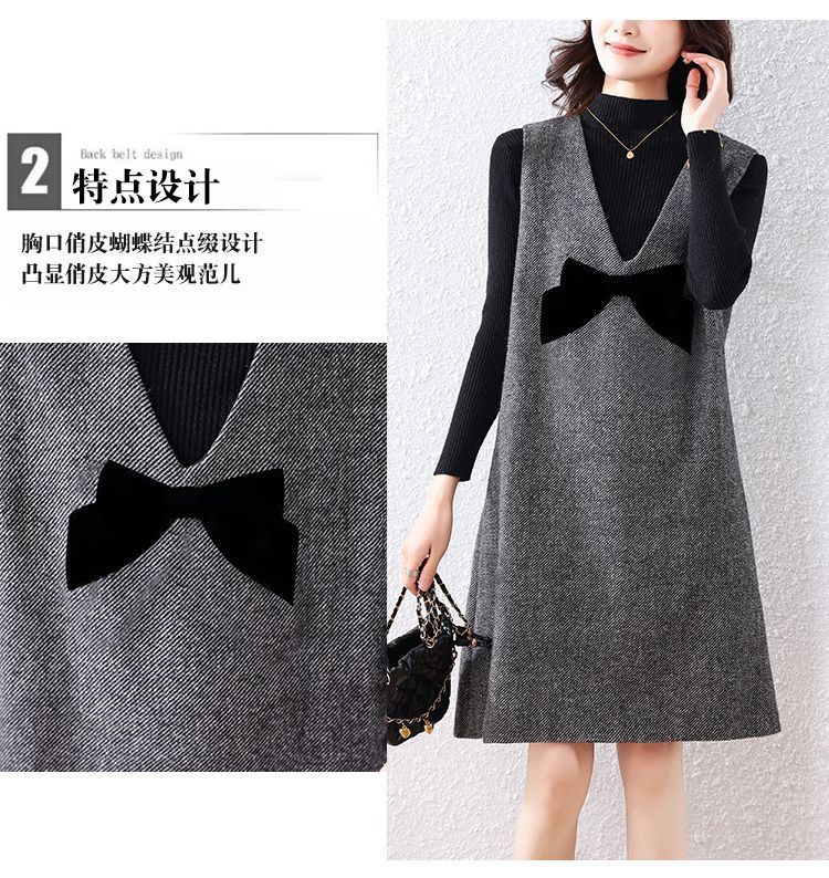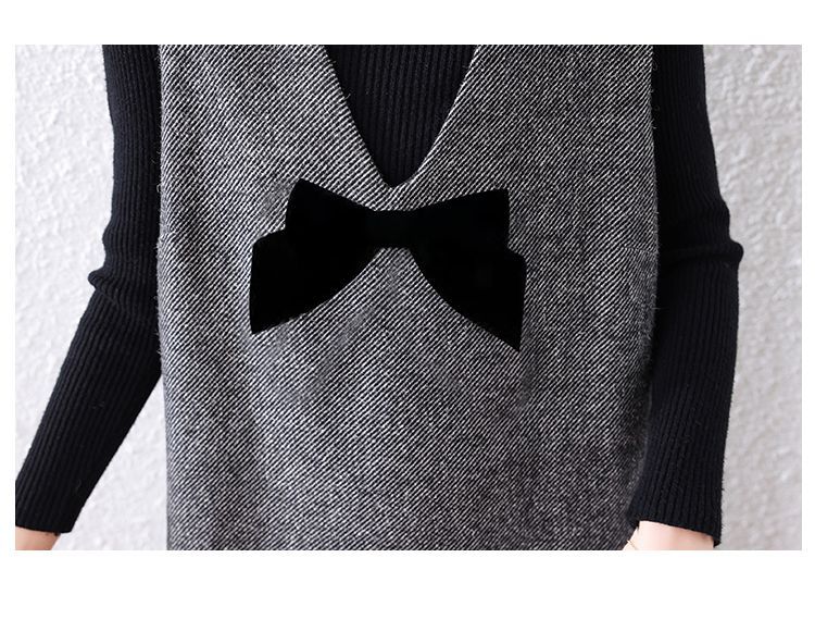 皮尔卡丹秋冬装新款气质大尺码女装两件套遮肚显瘦背心裙毛衣套装潮 图片色 (毛衣+背心裙) L 建议100-115斤