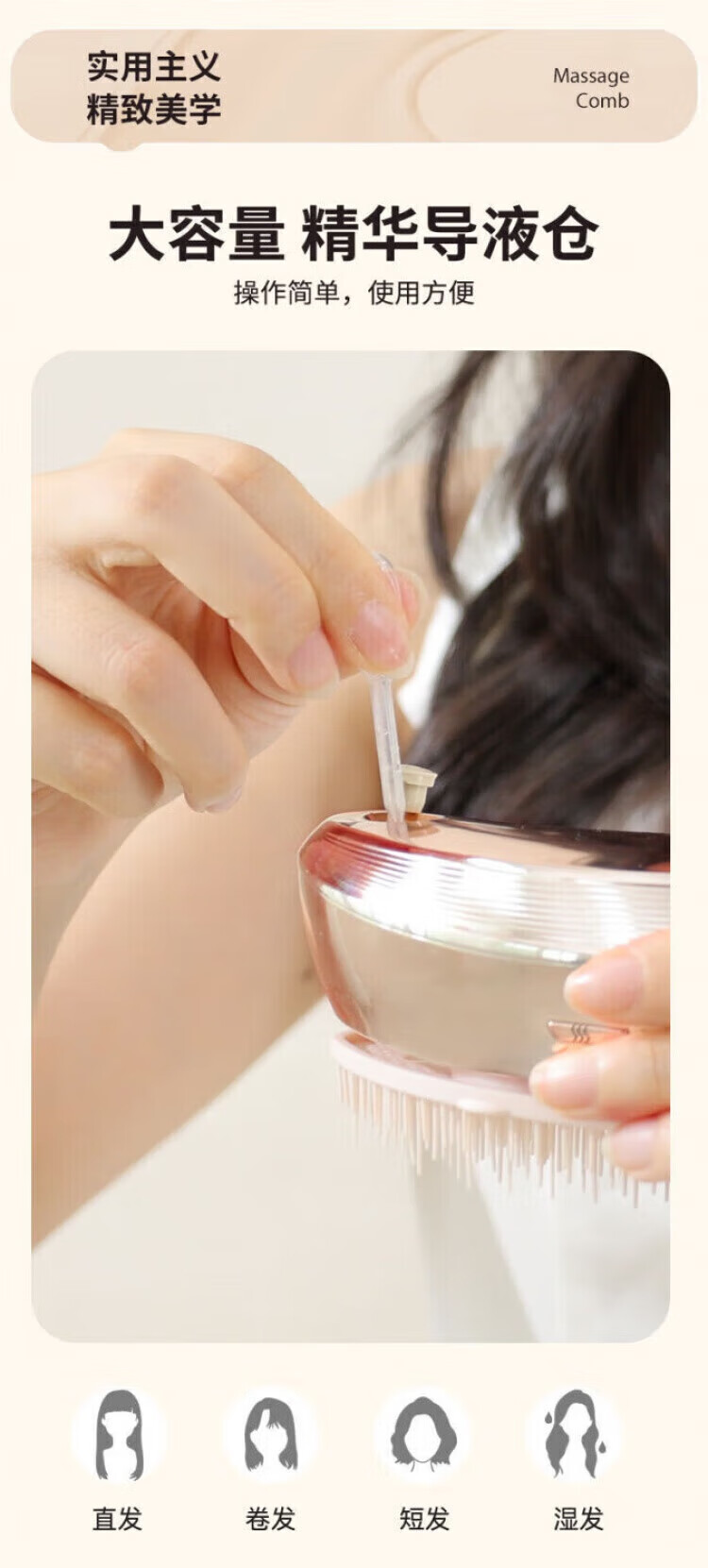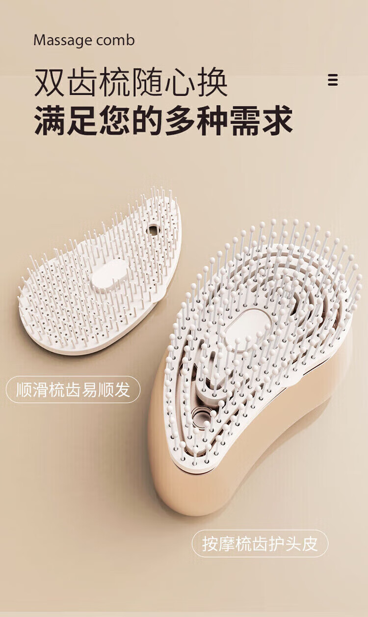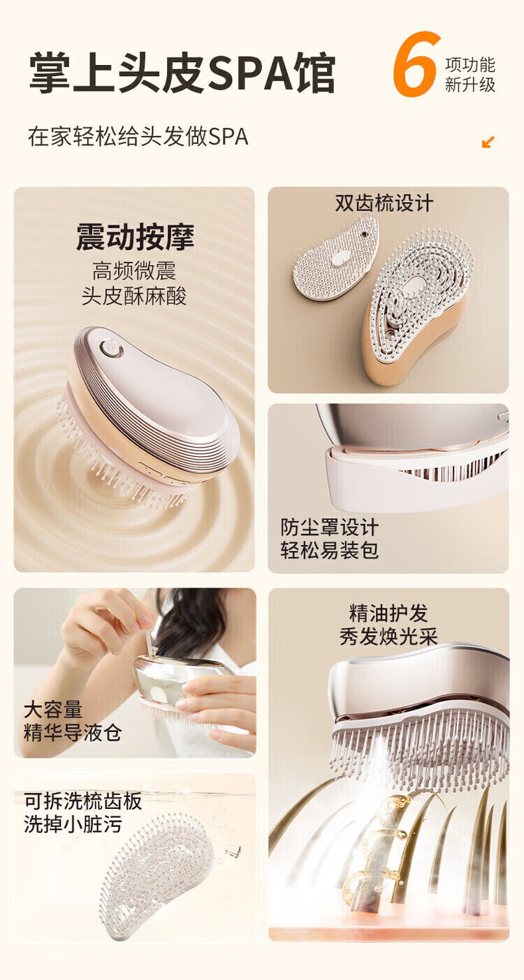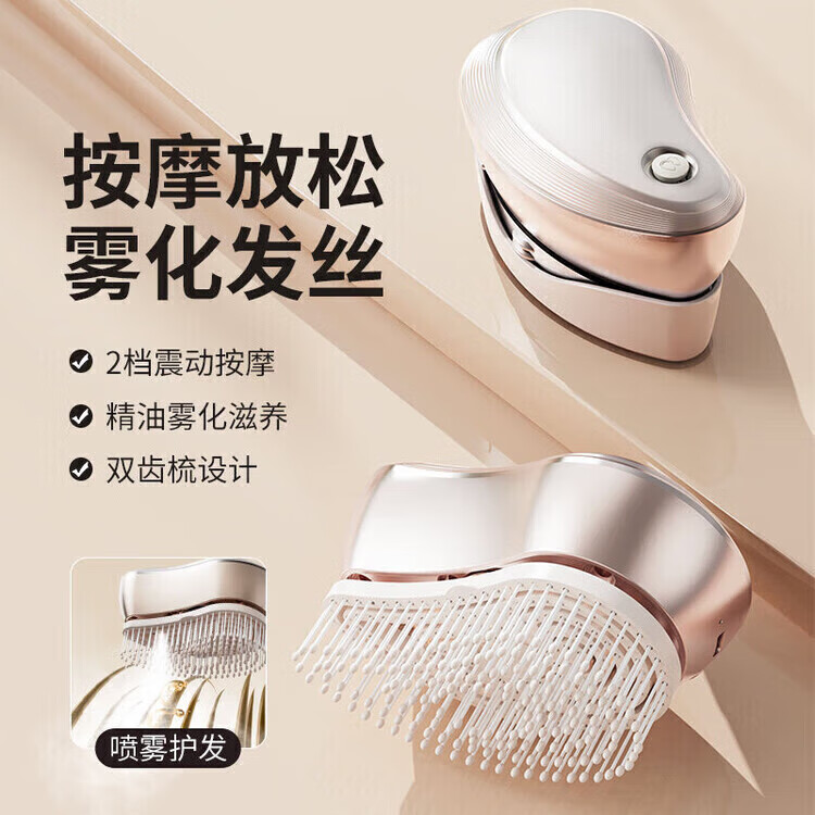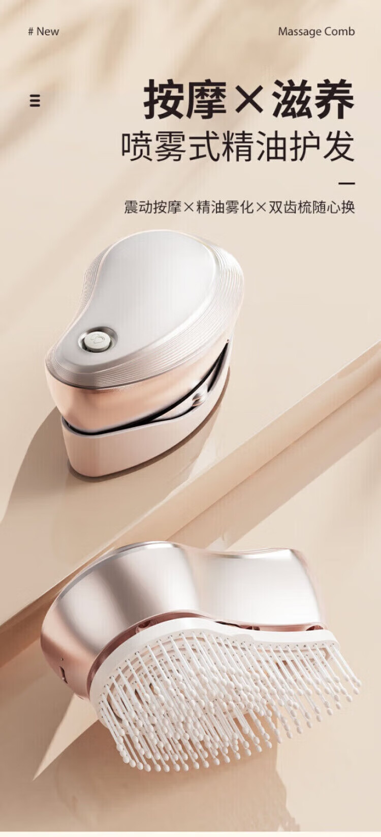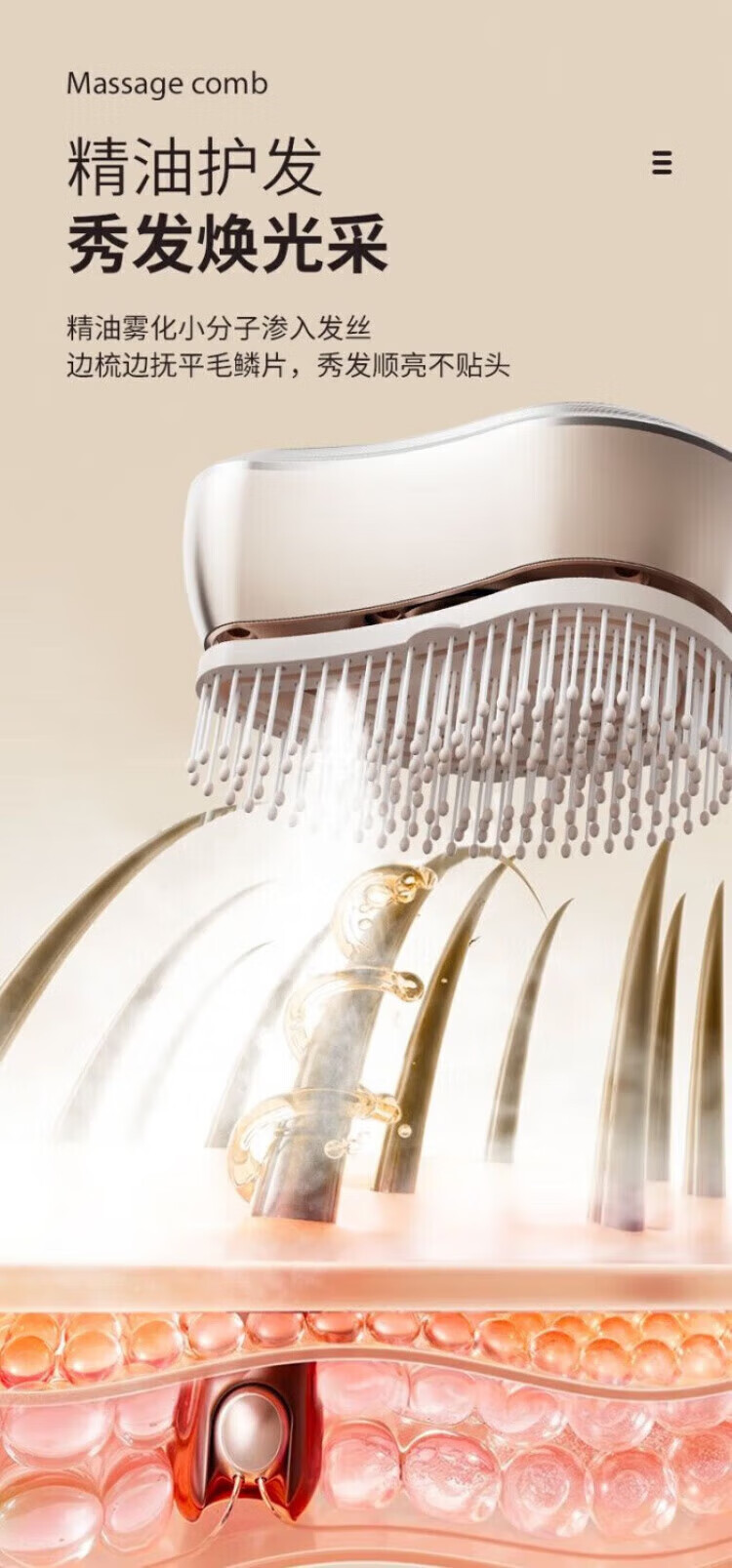 飒望德国电动按摩梳头部经络梳精油导液家用雾化健发梳震动头皮导入仪护发养电动上药器导入精华液梳仪 【旗舰款600mah】震动按摩+精华雾化+双齿替换 直发专用 | 无线便携