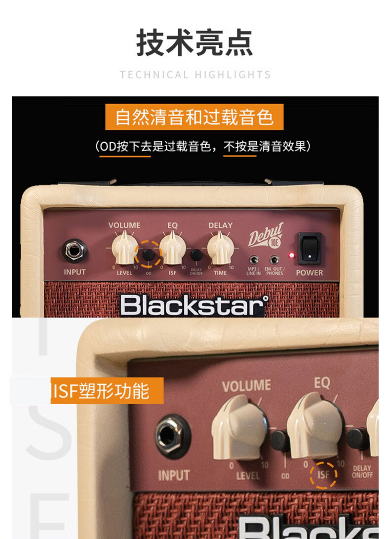 黑星 黑星Debut系列晶体管电吉他音箱清音过载双通道音响入门练习吉他 Debut10E 红色