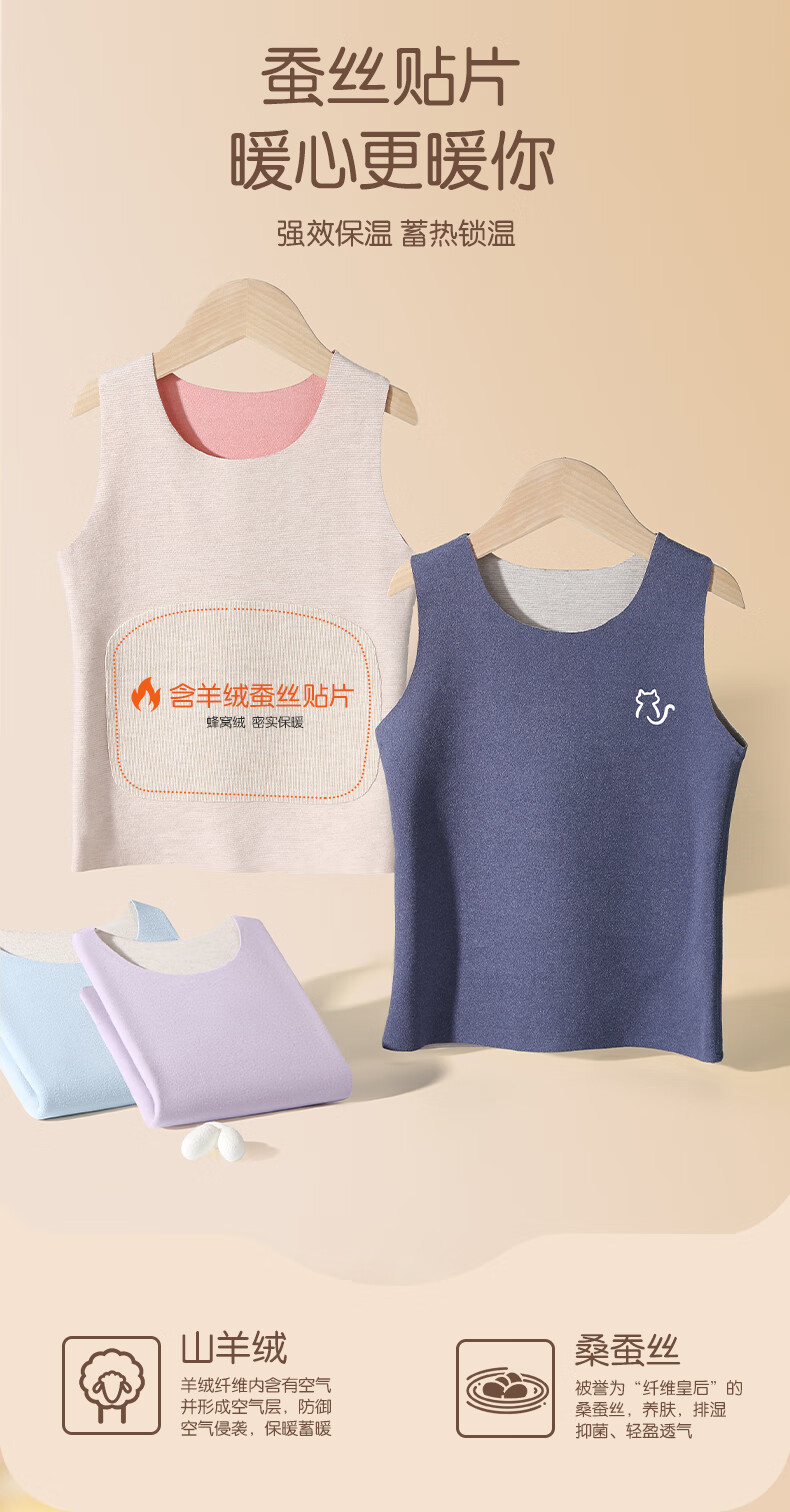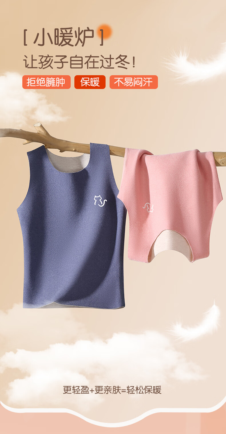 猫人儿童保暖背心秋冬加绒男童绒德内穿宝宝无痕女童打底男孩内衣马甲 蓝色 【男童羊绒背心】 160 【建议体重75-86斤丨150-160】