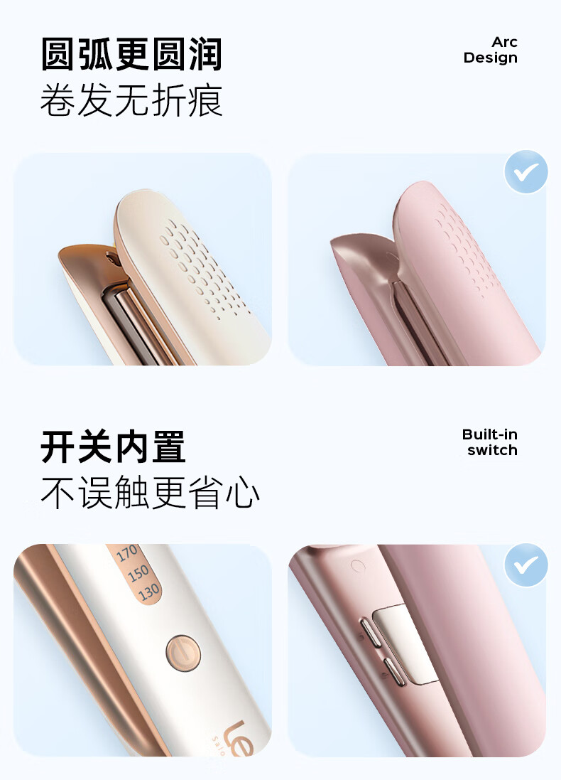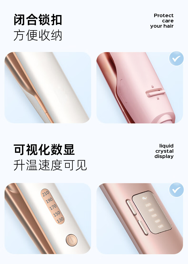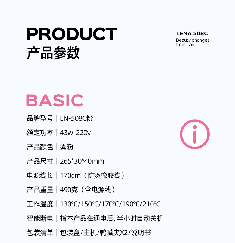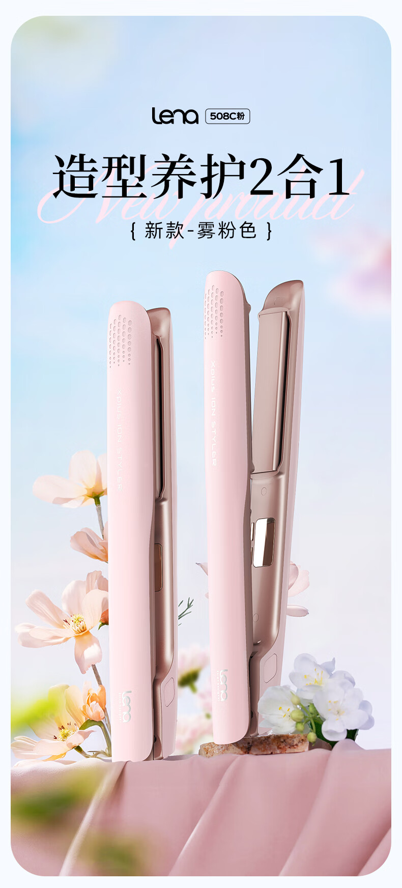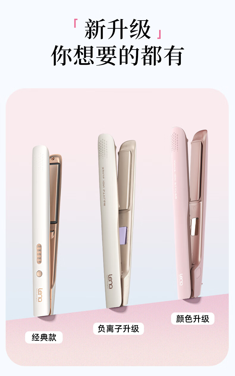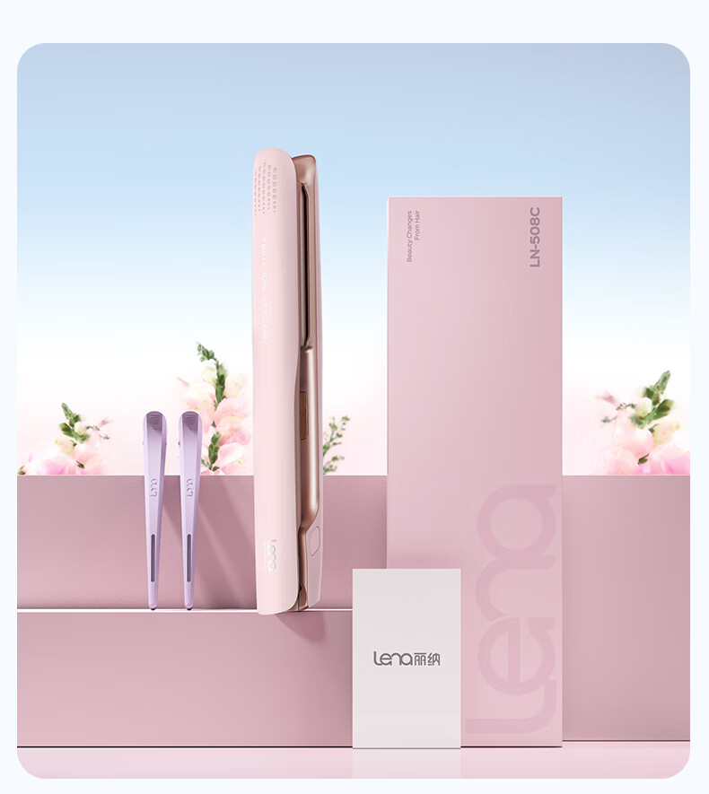 lena夹板直板夹卷发棒卷直两用 负离子直发神器女 电拉直板烫发夹板 年会礼品新年礼物 LN-508C 粉
