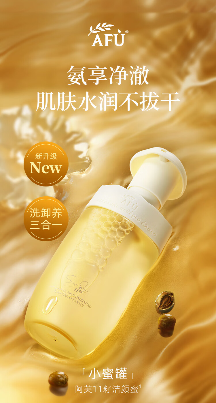 阿芙(AFU)11籽洁颜蜜氨基酸表活温和洗卸养保湿水润洗面奶 60ml