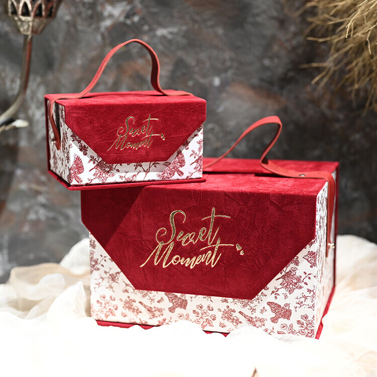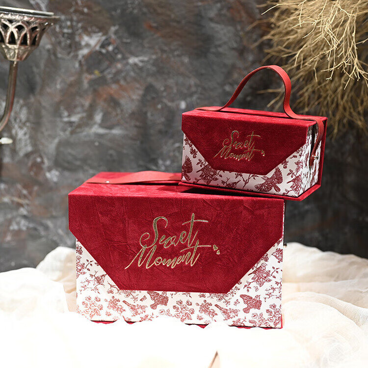 筏芯伴手礼盒子空盒大号仪式感围巾礼品包装盒高级喜糖盒礼盒精美礼物 酒红色大号23*18.5*15cm 空盒+碎纸