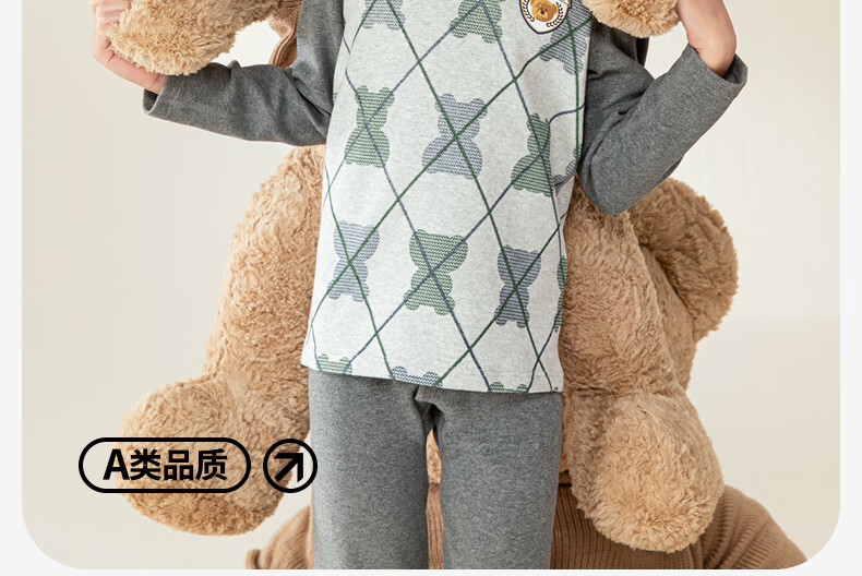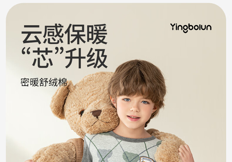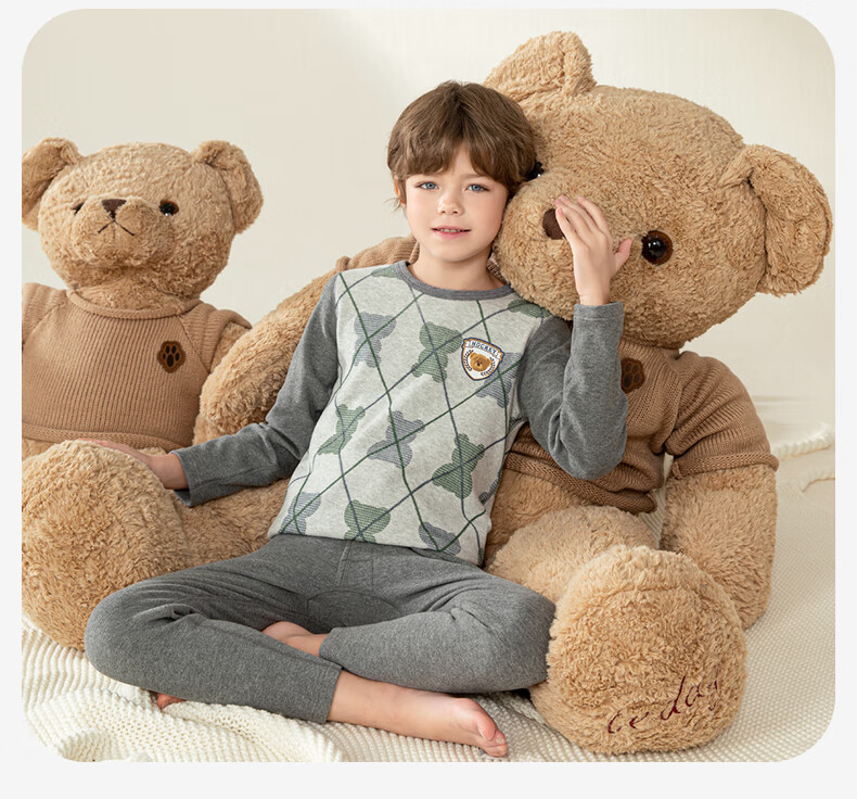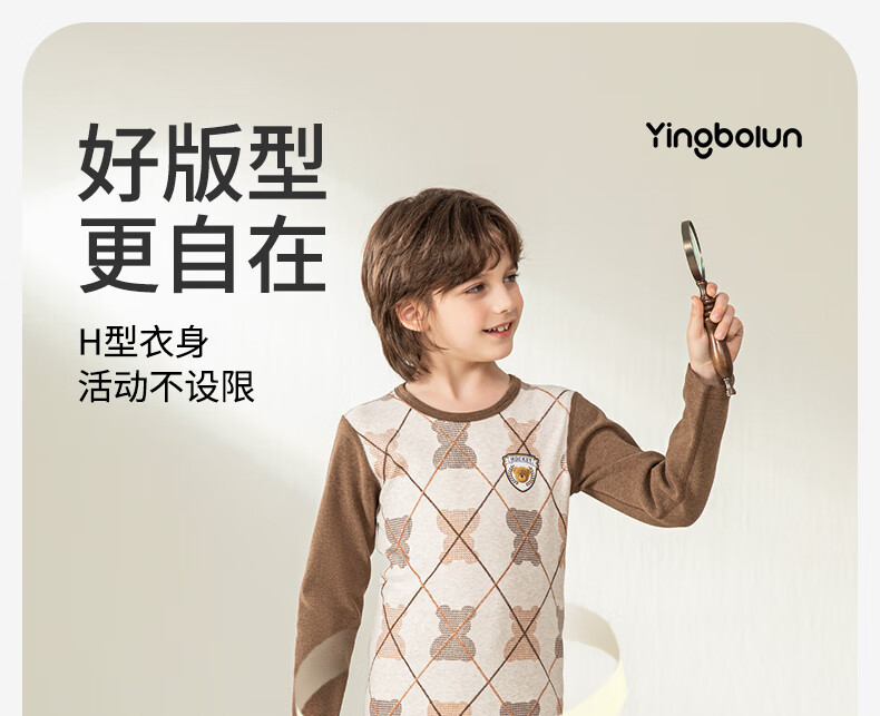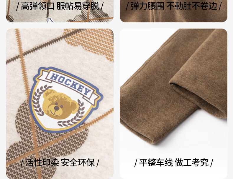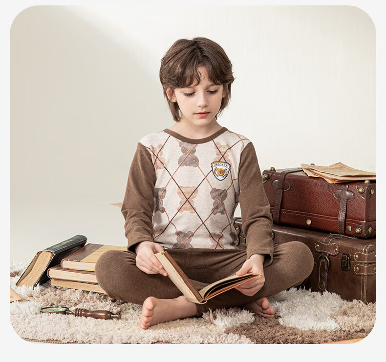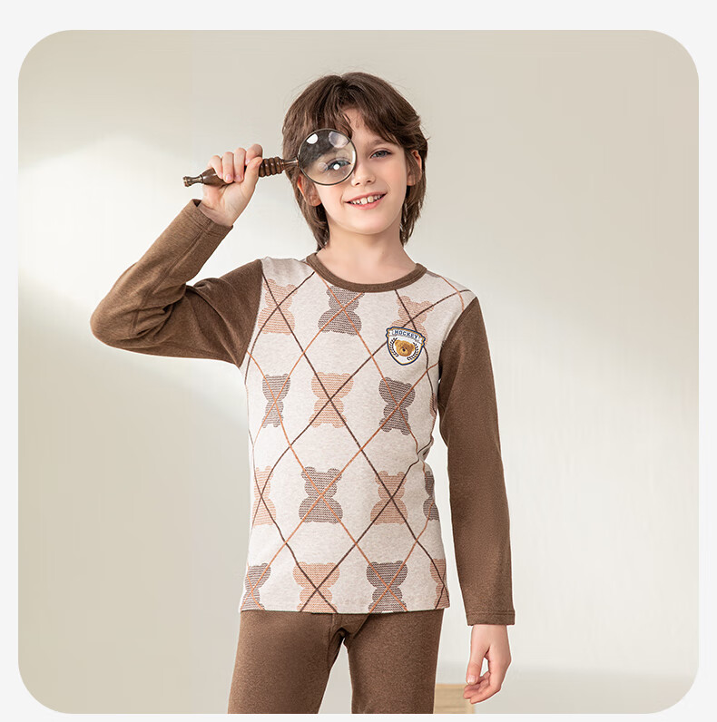 英博伦冬季男童加厚秋衣秋裤纯棉保暖中大童内衣套装儿童圆领睡衣 81134 咖啡 130cm