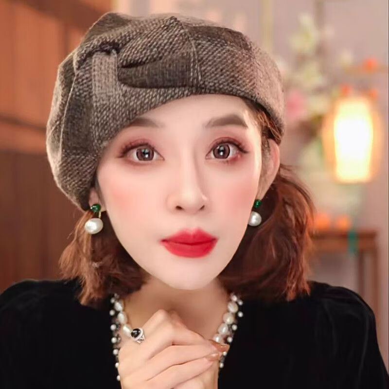 2025新款欧美风百搭时尚高级秋冬保暖加厚洋气休闲复古贝雷帽女士 金沙色【高定设计】 均码